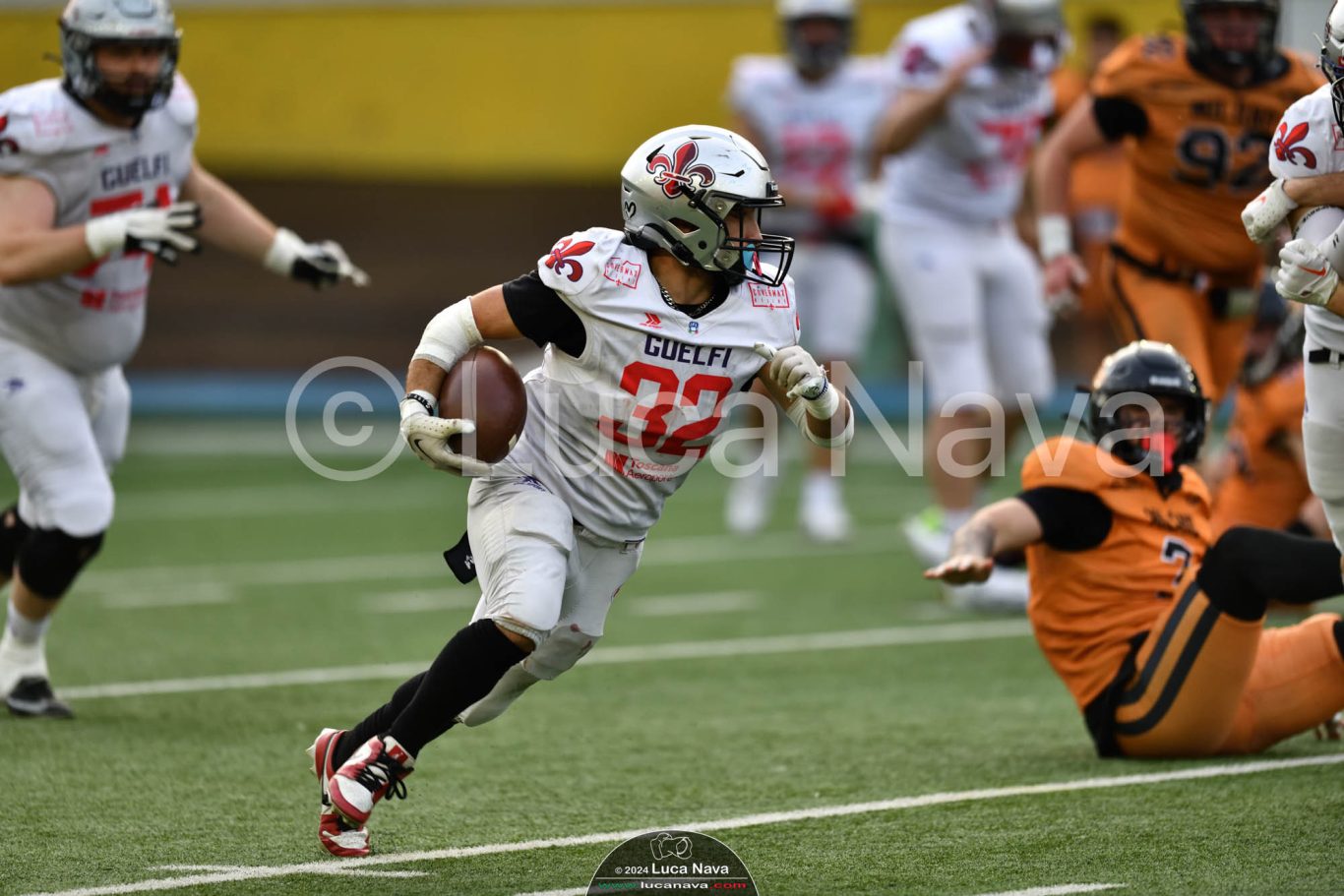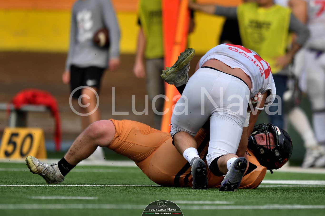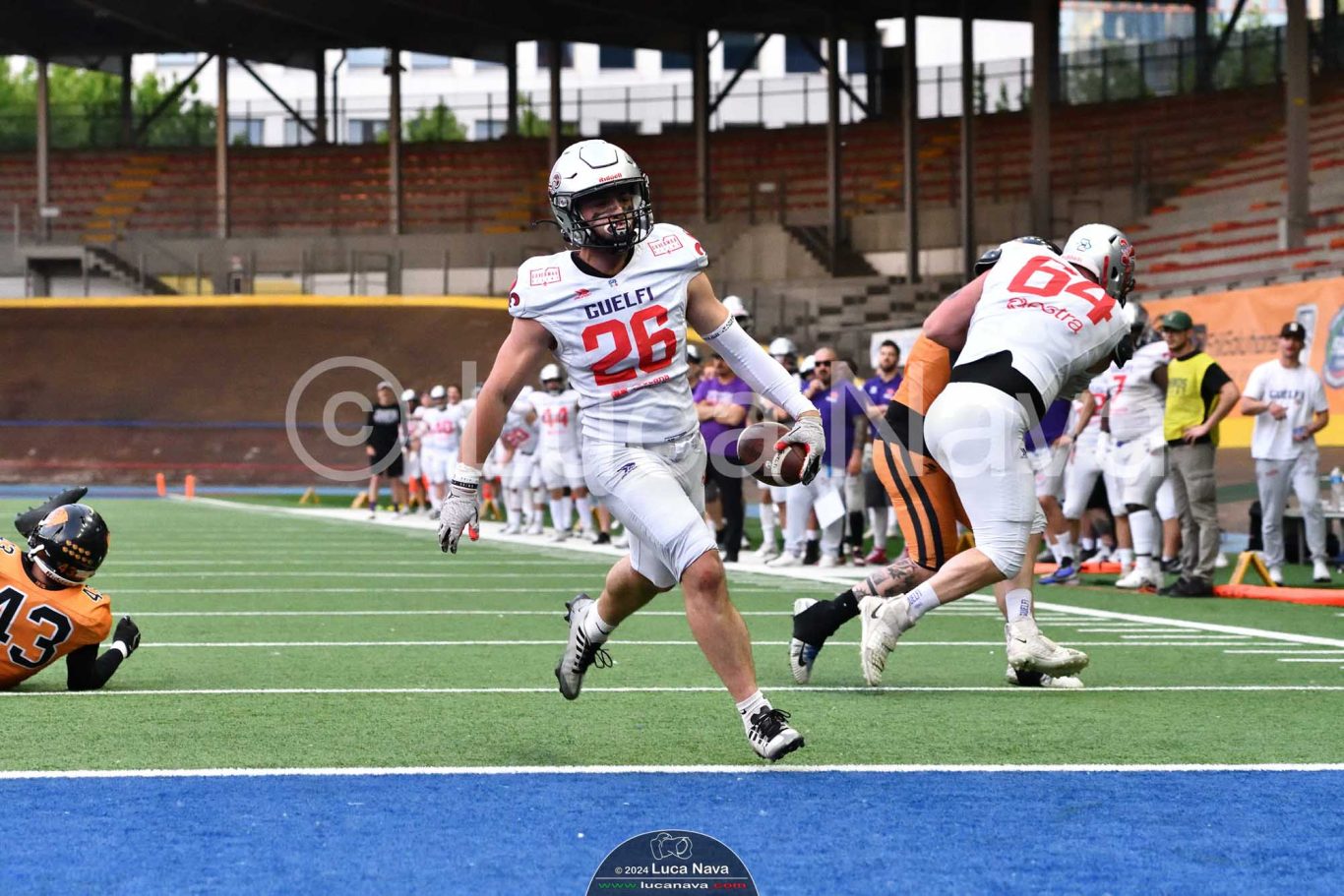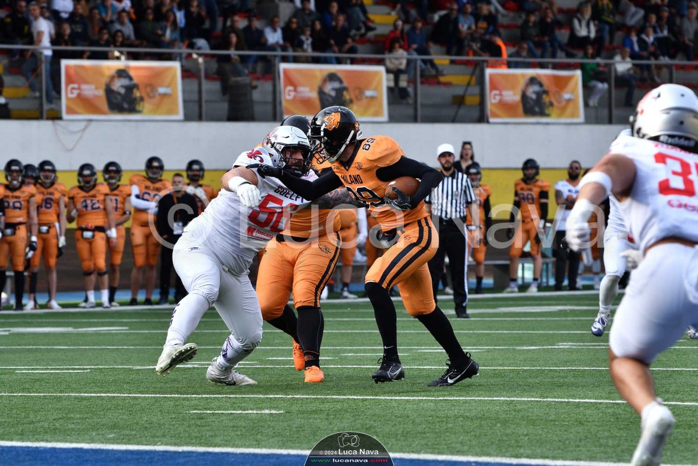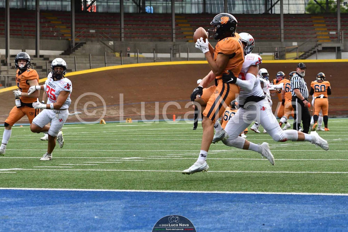 Le immagini raffigurate sono relative alla partita di Campionato Italiano di Football Americano FIDAF/IFL 1° Divisione 2024 "Rhinos Milano Vs. Guelfi Firenze" - realizzate in data 04 maggio 2024 c/o Velodromo Vigorelli - Via Arona, 19 - 20149 Milano (MI) Italy.