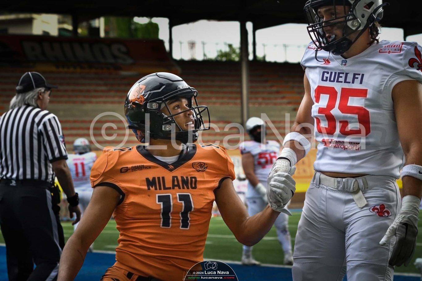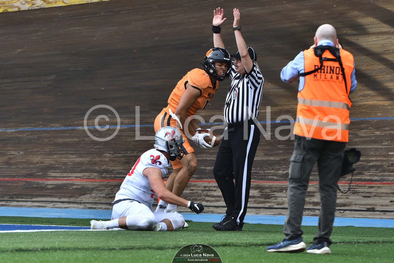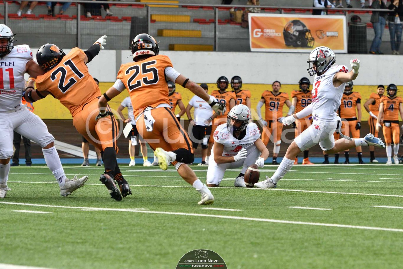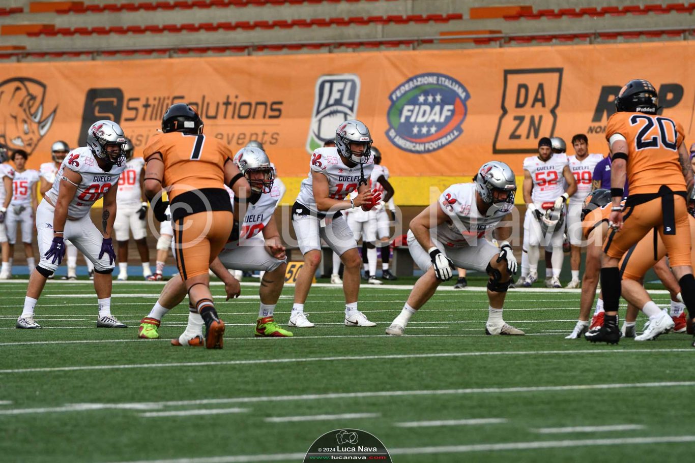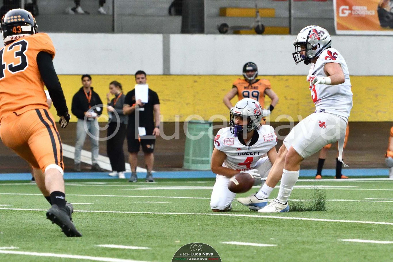 Le immagini raffigurate sono relative alla partita di Campionato Italiano di Football Americano FIDAF/IFL 1° Divisione 2024 "Rhinos Milano Vs. Guelfi Firenze" - realizzate in data 04 maggio 2024 c/o Velodromo Vigorelli - Via Arona, 19 - 20149 Milano (MI) Italy.