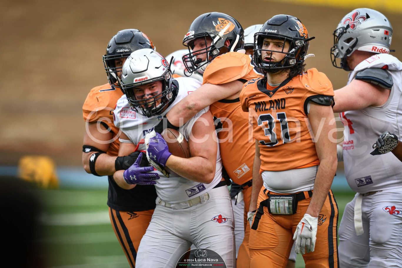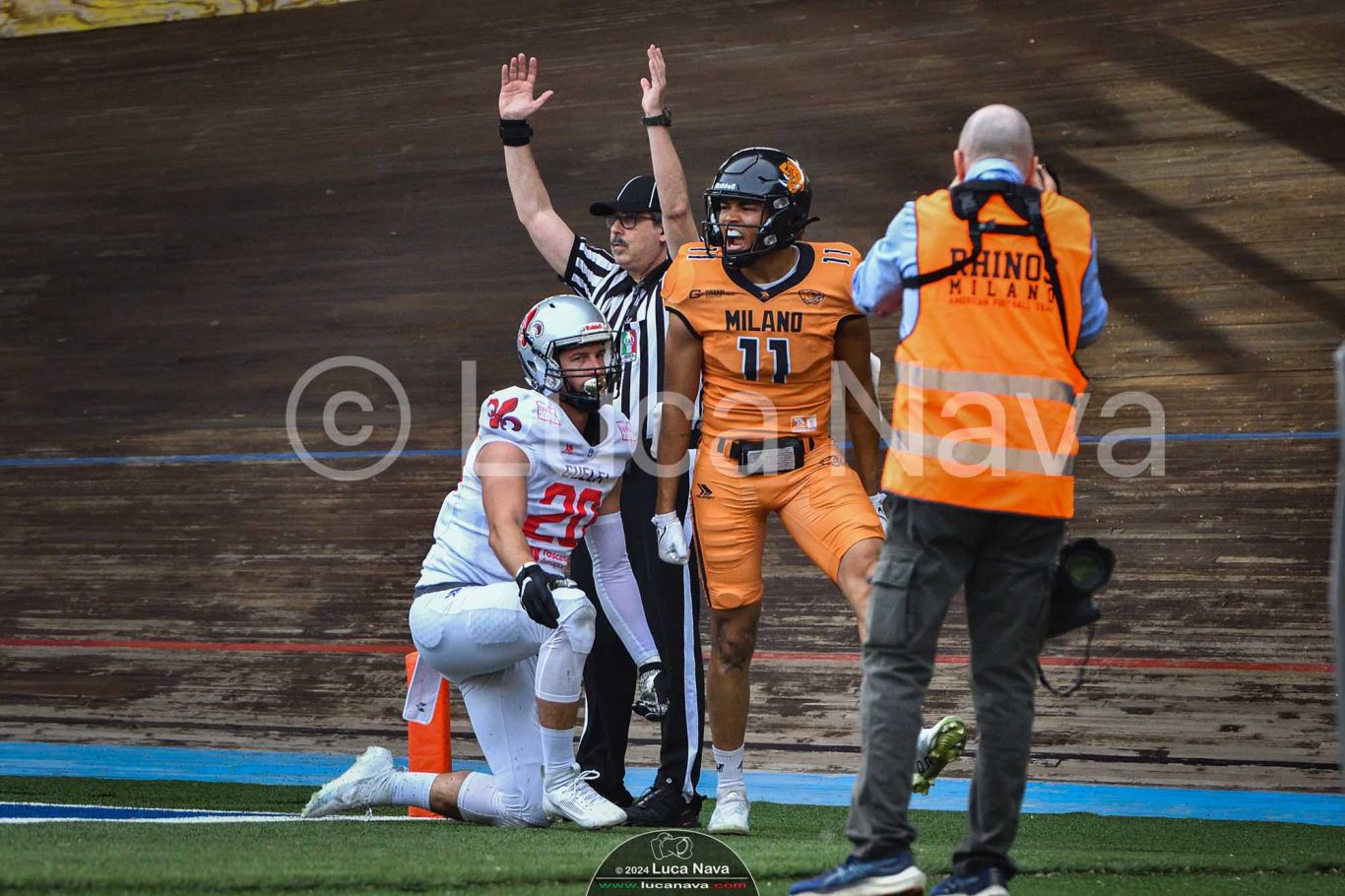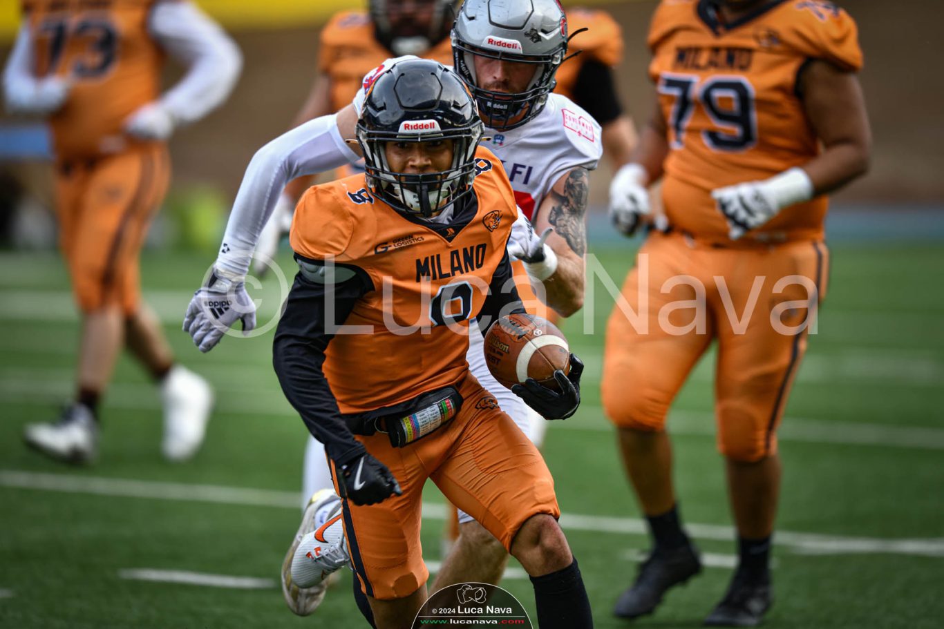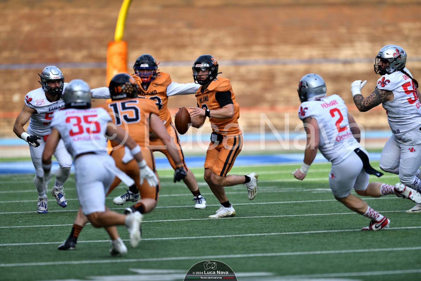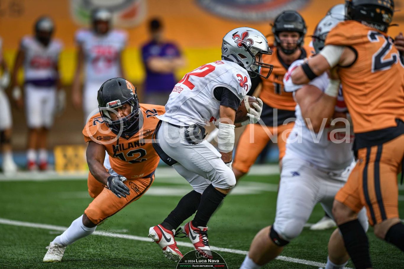 Le immagini raffigurate sono relative alla partita di Campionato Italiano di Football Americano FIDAF/IFL 1° Divisione 2024 "Rhinos Milano Vs. Guelfi Firenze" - realizzate in data 04 maggio 2024 c/o Velodromo Vigorelli - Via Arona, 19 - 20149 Milano (MI) Italy.