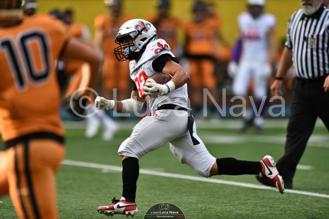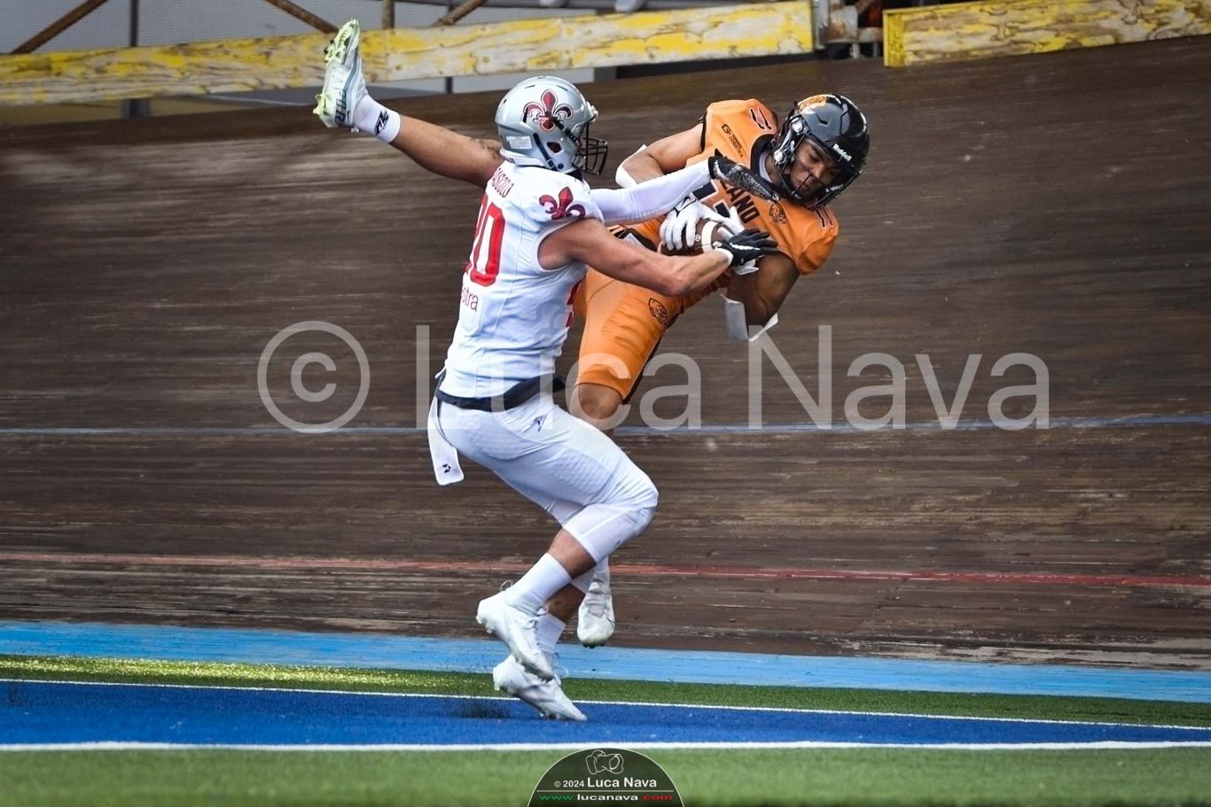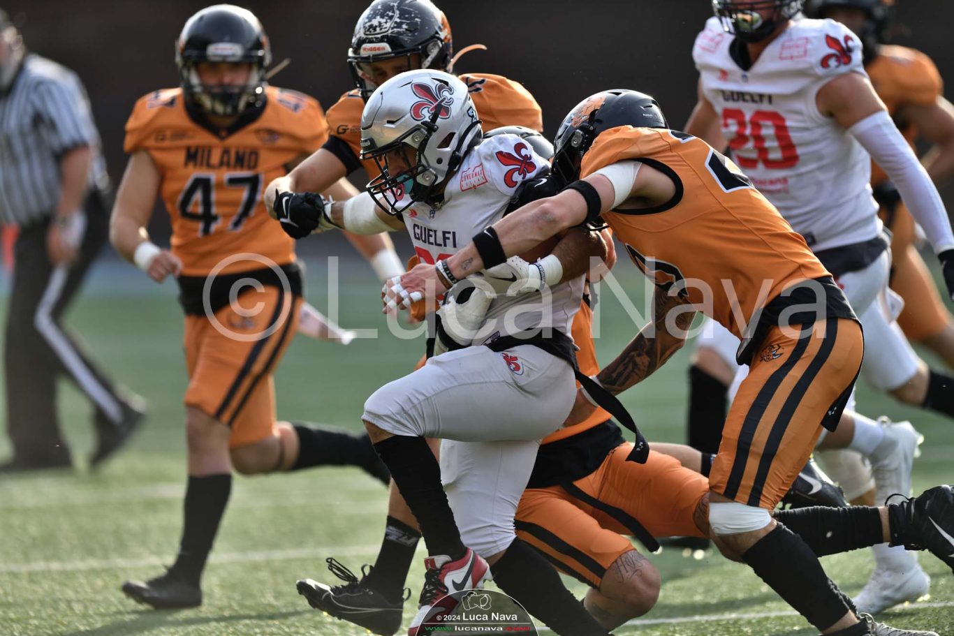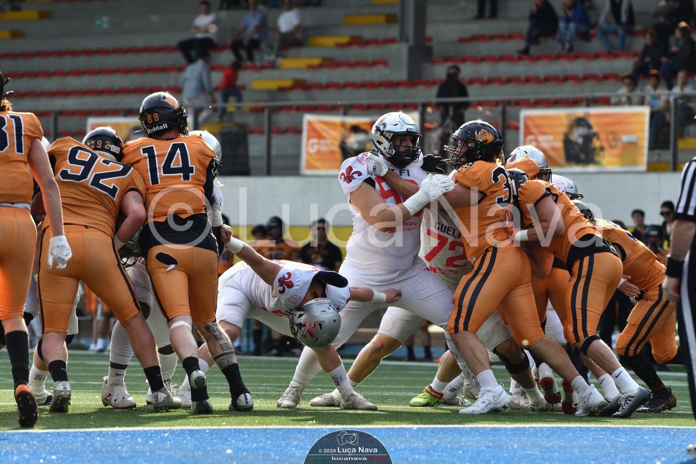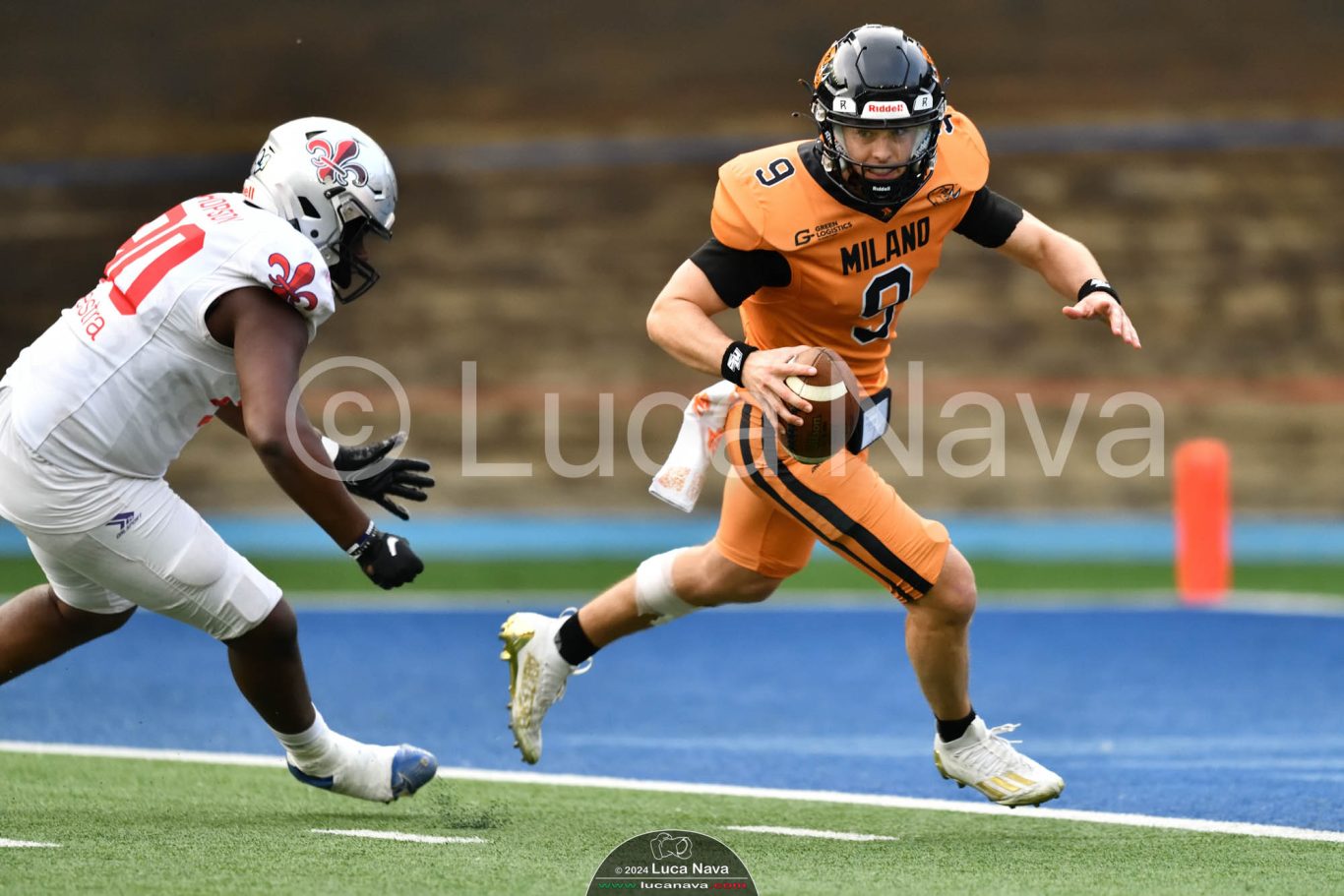 Le immagini raffigurate sono relative alla partita di Campionato Italiano di Football Americano FIDAF/IFL 1° Divisione 2024 "Rhinos Milano Vs. Guelfi Firenze" - realizzate in data 04 maggio 2024 c/o Velodromo Vigorelli - Via Arona, 19 - 20149 Milano (MI) Italy.