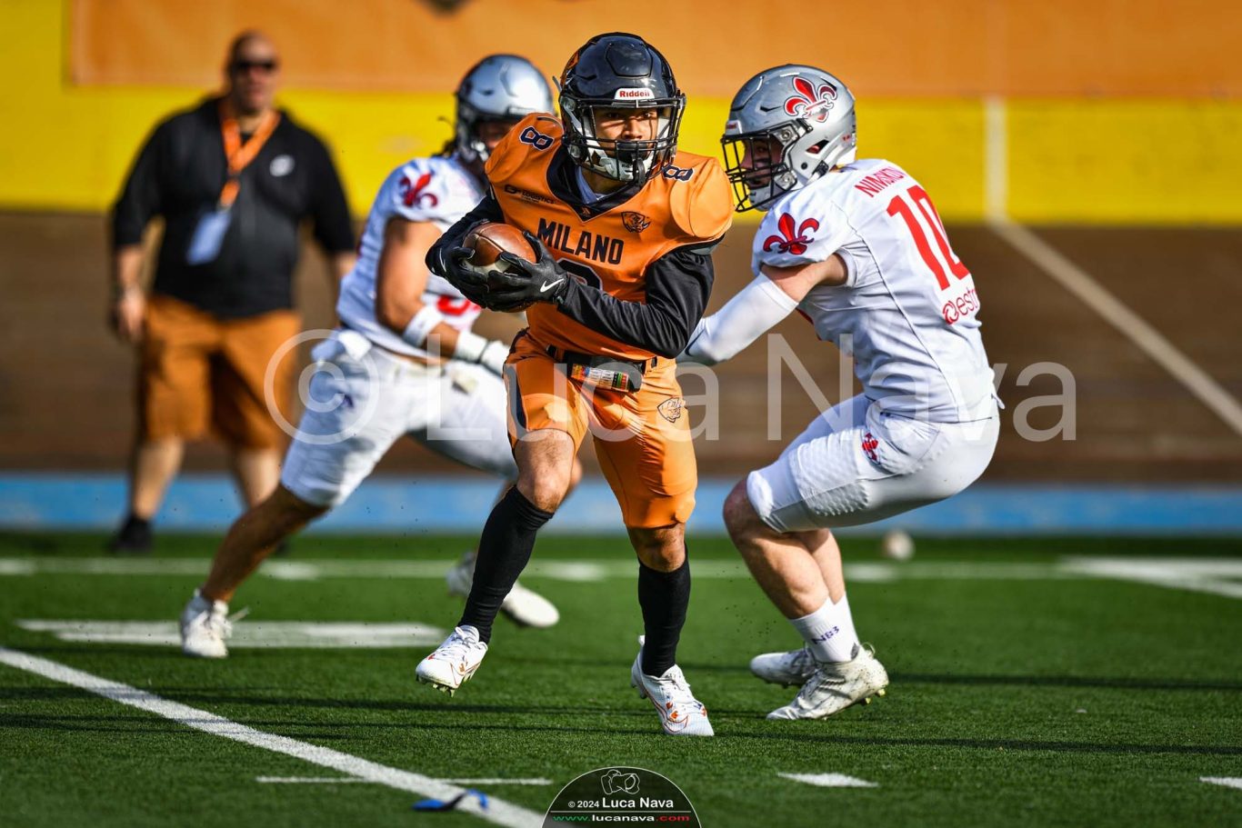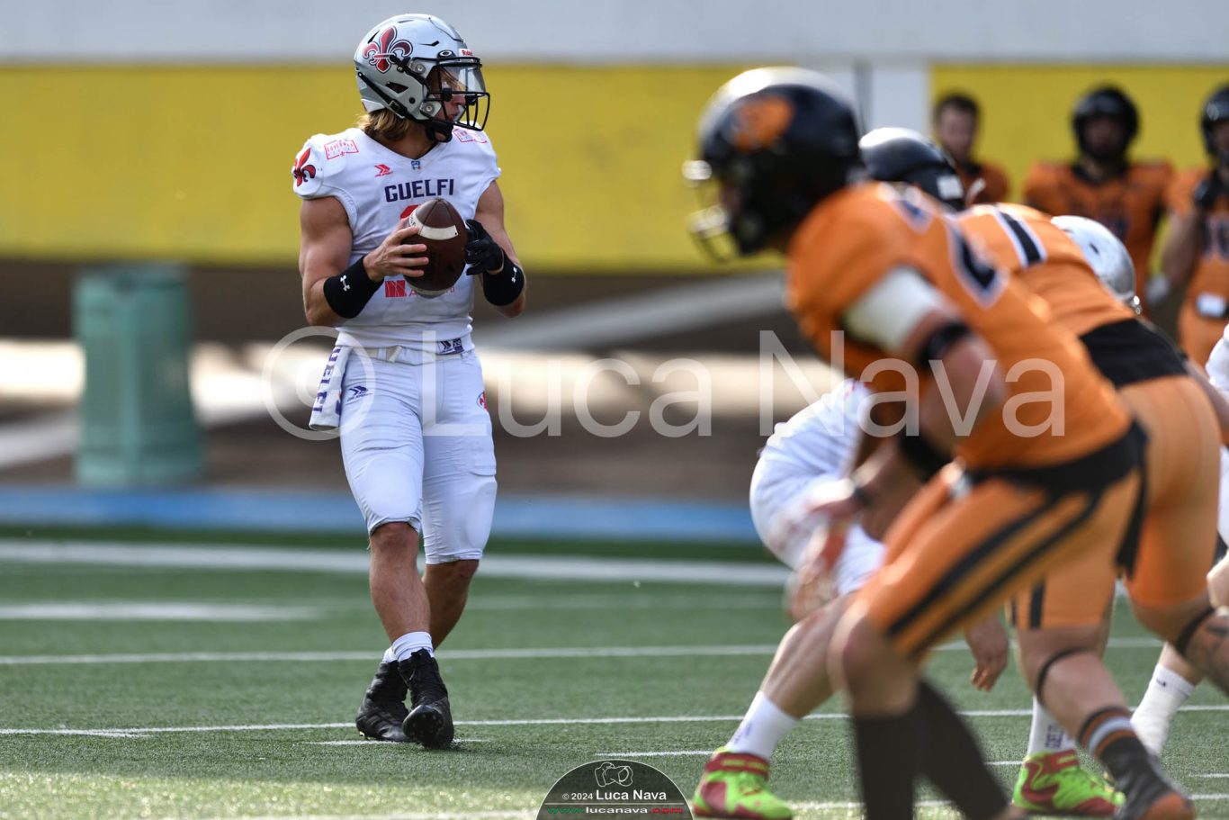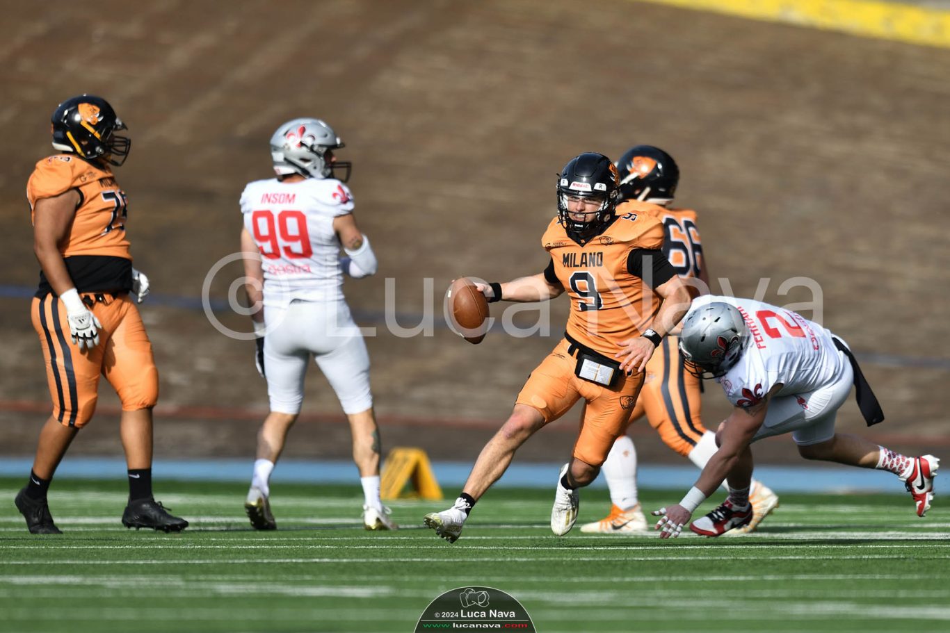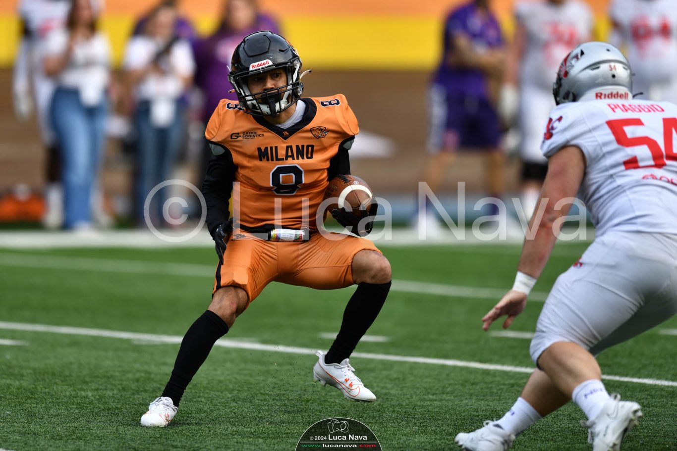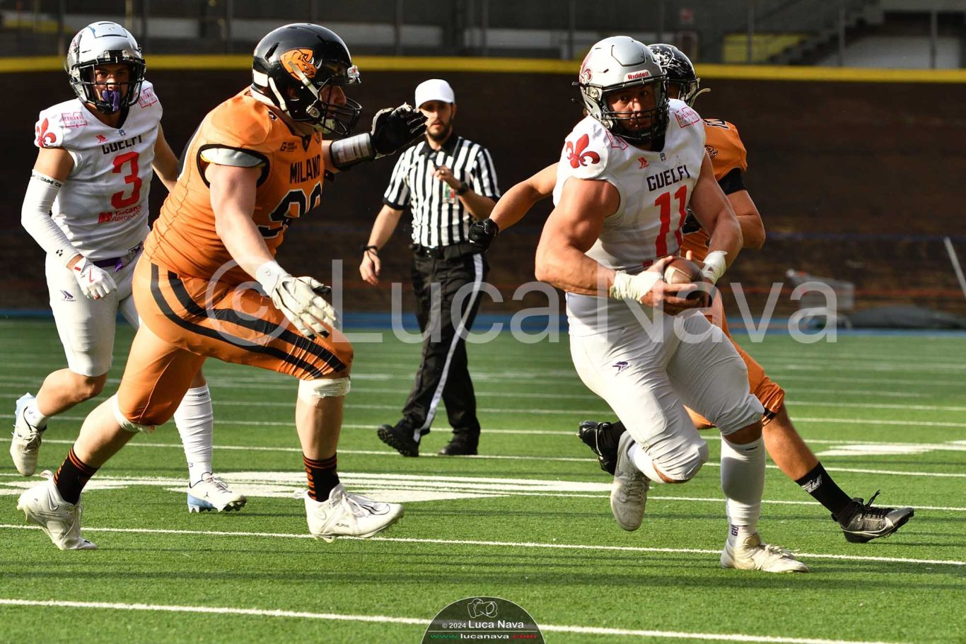 Le immagini raffigurate sono relative alla partita di Campionato Italiano di Football Americano FIDAF/IFL 1° Divisione 2024 "Rhinos Milano Vs. Guelfi Firenze" - realizzate in data 04 maggio 2024 c/o Velodromo Vigorelli - Via Arona, 19 - 20149 Milano (MI) Italy.