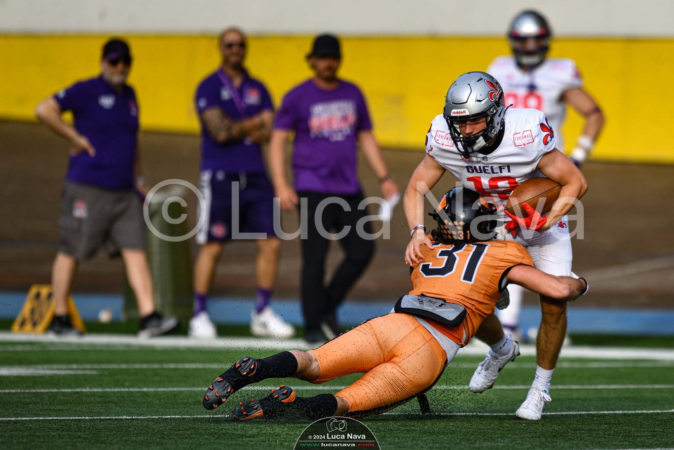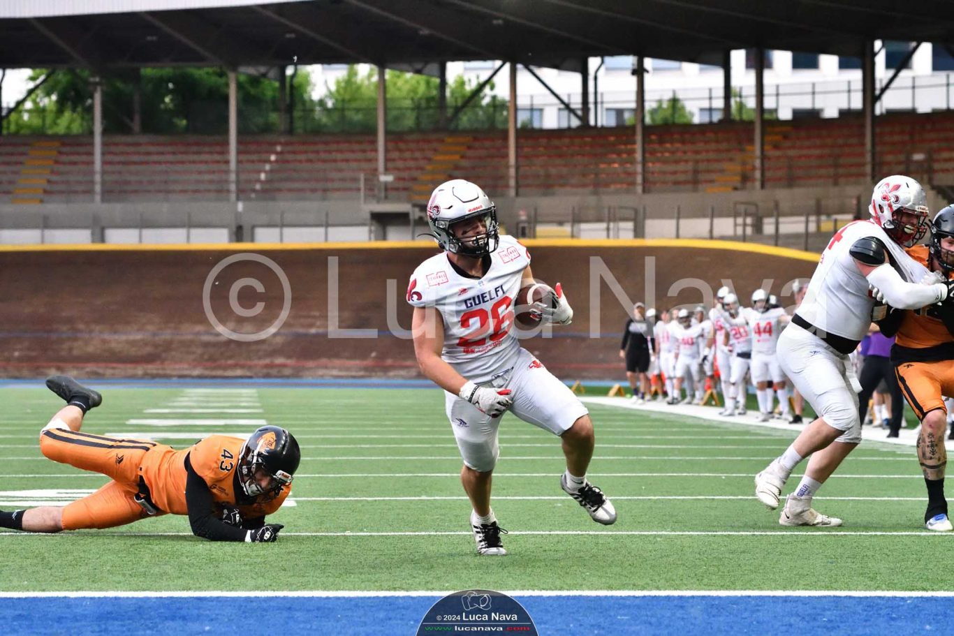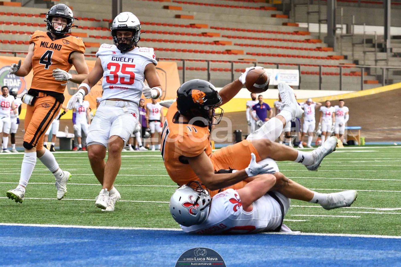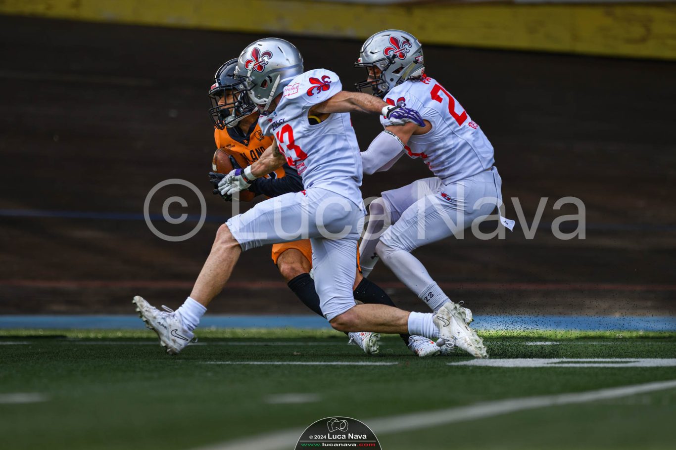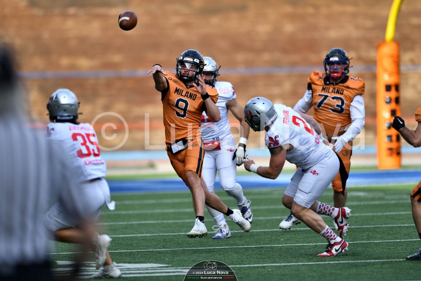 Le immagini raffigurate sono relative alla partita di Campionato Italiano di Football Americano FIDAF/IFL 1° Divisione 2024 "Rhinos Milano Vs. Guelfi Firenze" - realizzate in data 04 maggio 2024 c/o Velodromo Vigorelli - Via Arona, 19 - 20149 Milano (MI) Italy.
