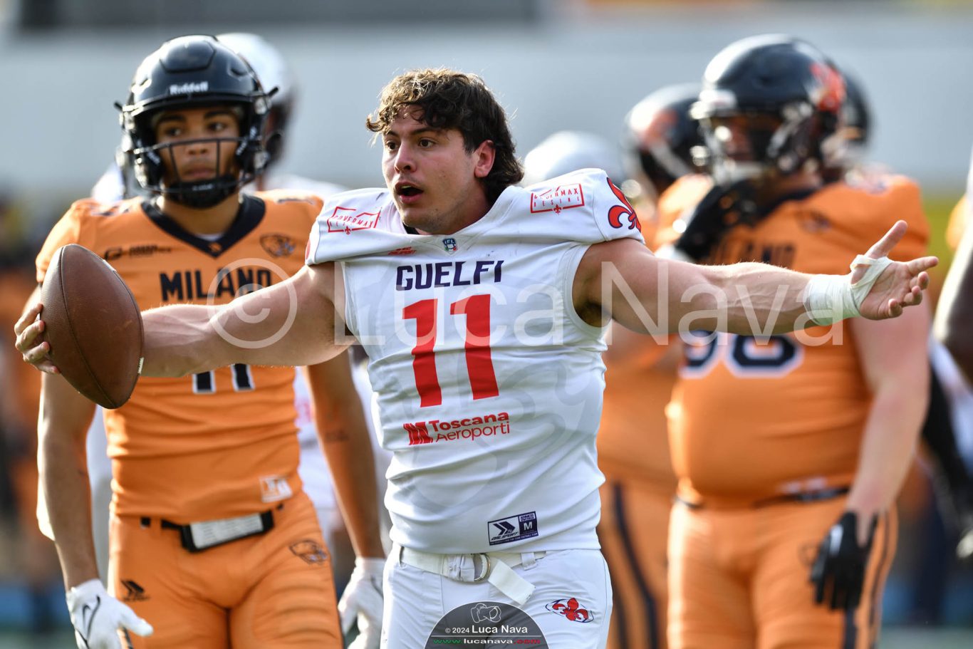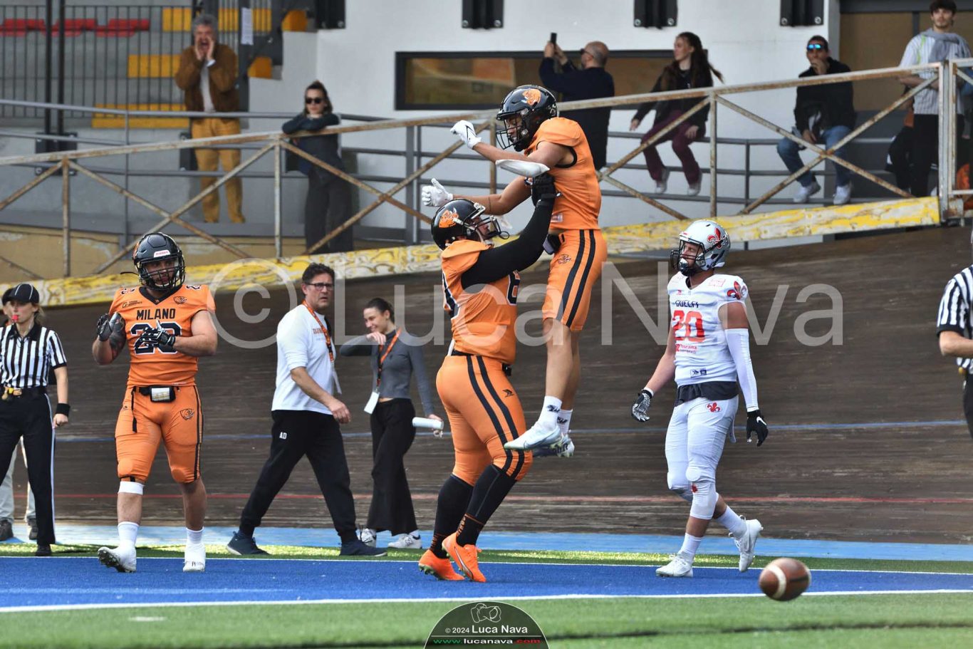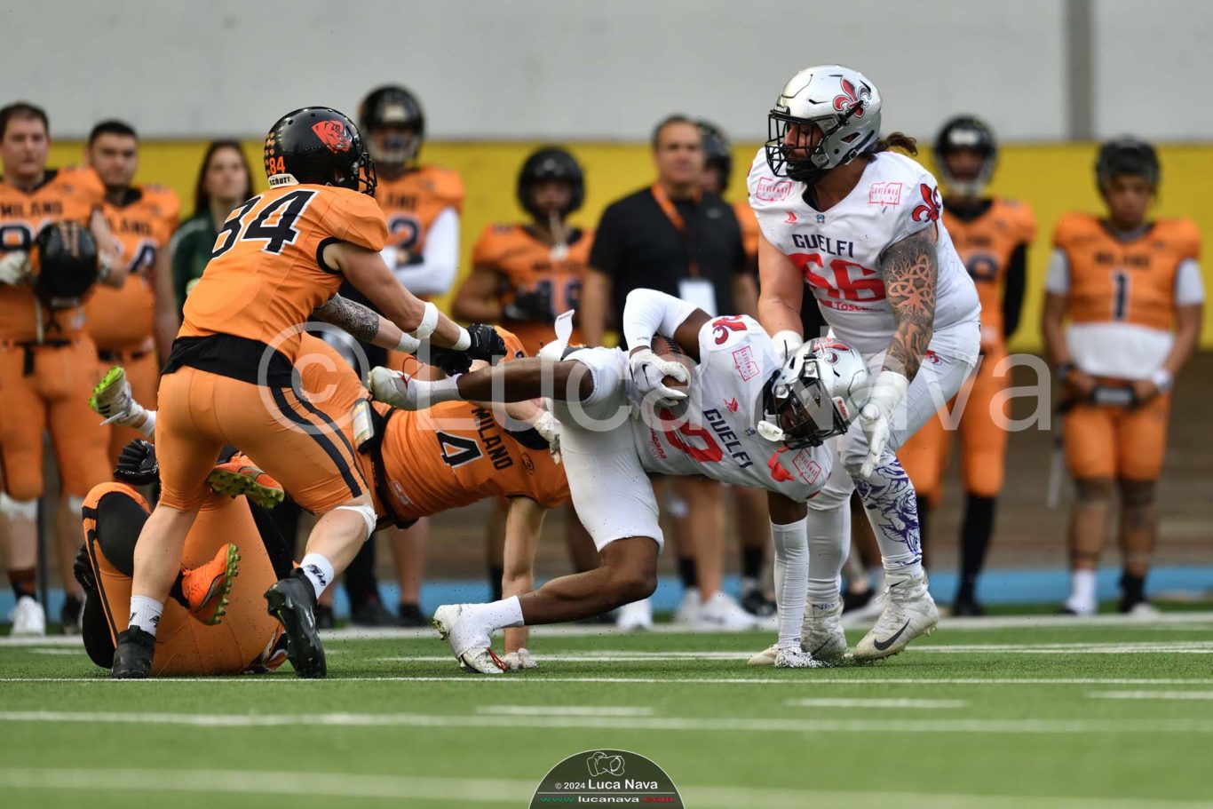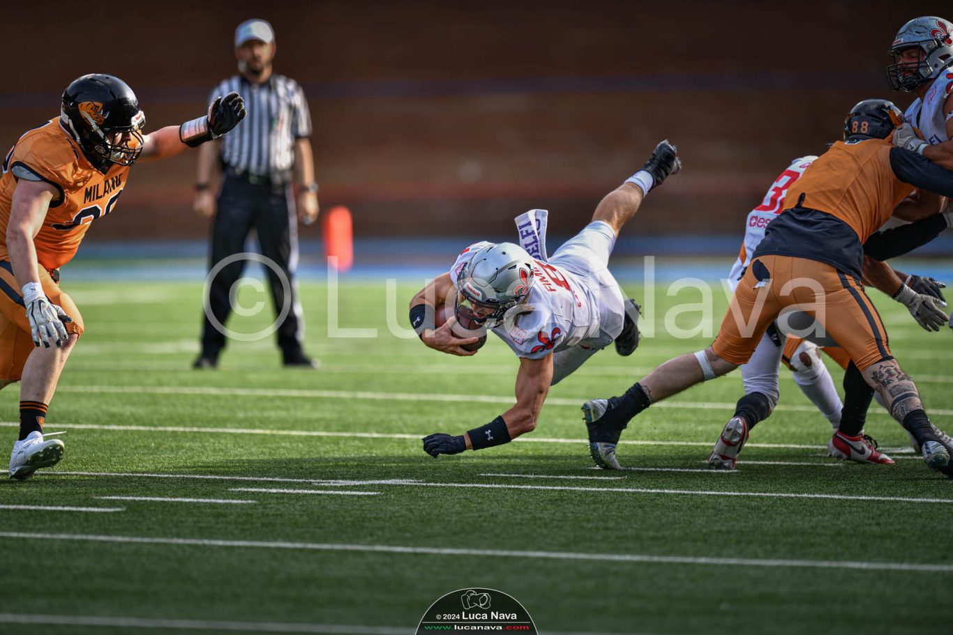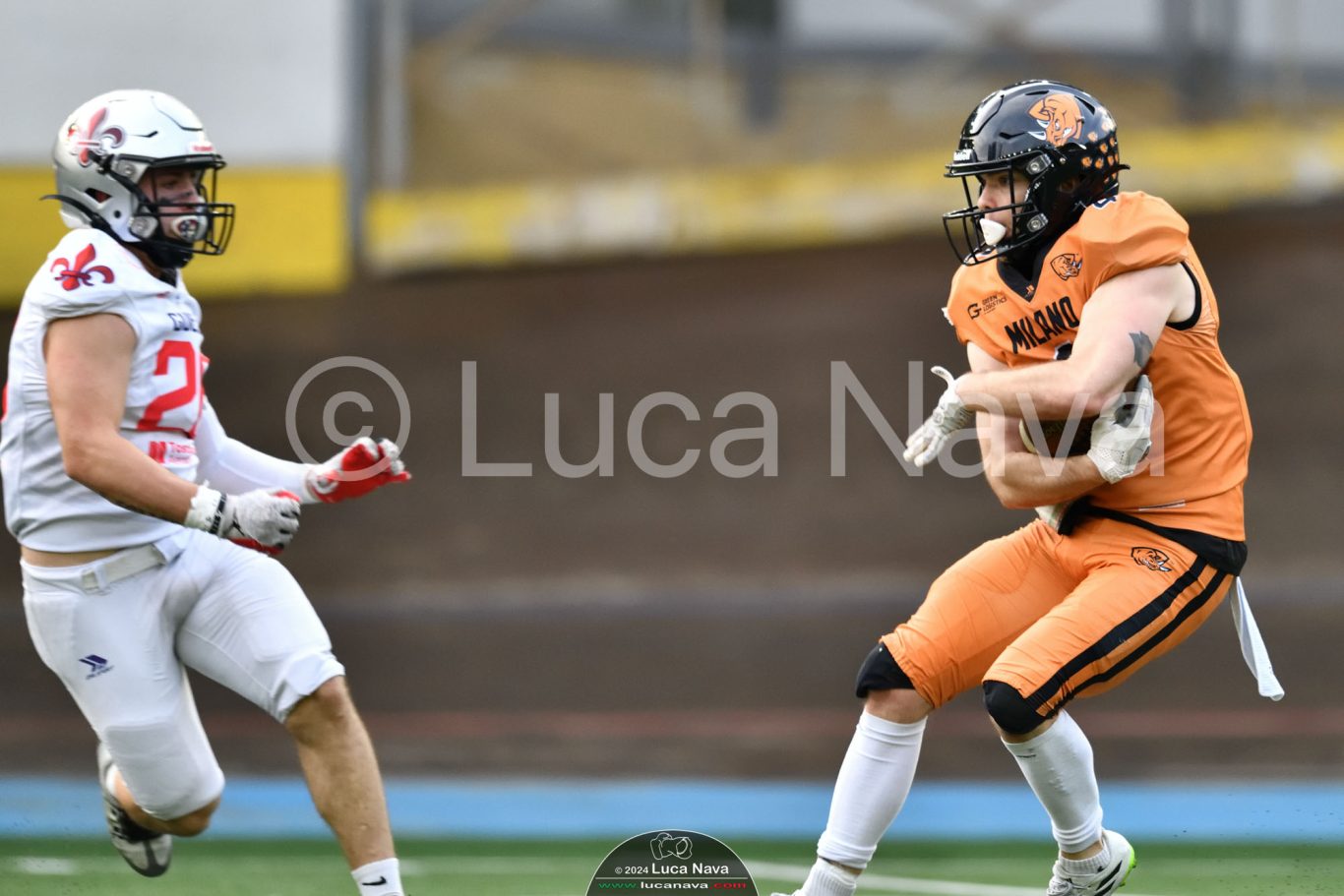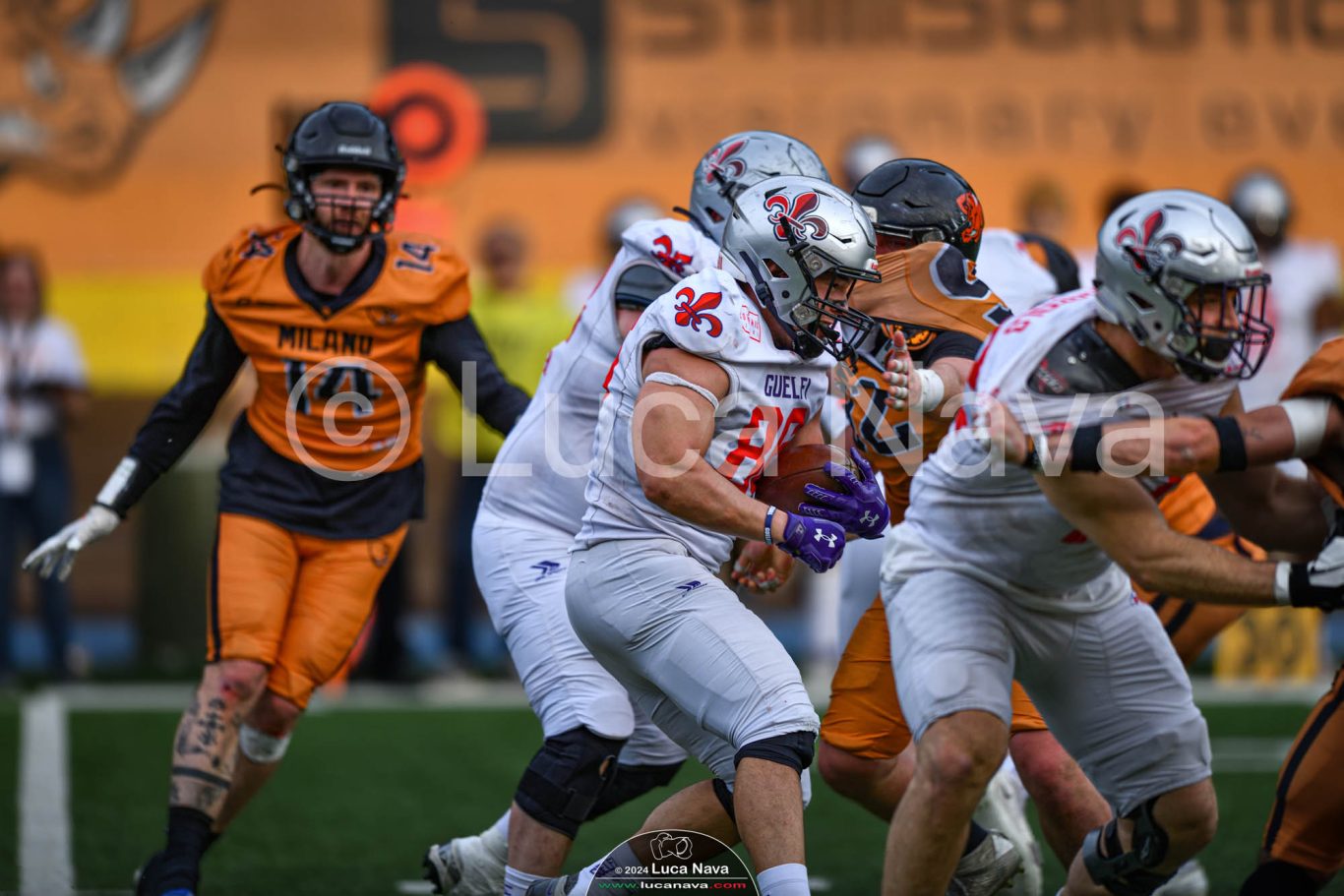 Le immagini raffigurate sono relative alla partita di Campionato Italiano di Football Americano FIDAF/IFL 1° Divisione 2024 "Rhinos Milano Vs. Guelfi Firenze" - realizzate in data 04 maggio 2024 c/o Velodromo Vigorelli - Via Arona, 19 - 20149 Milano (MI) Italy.