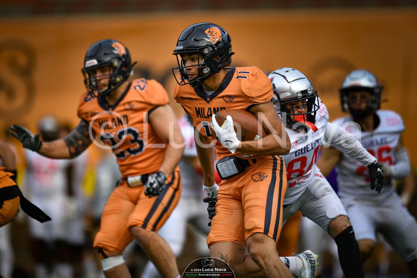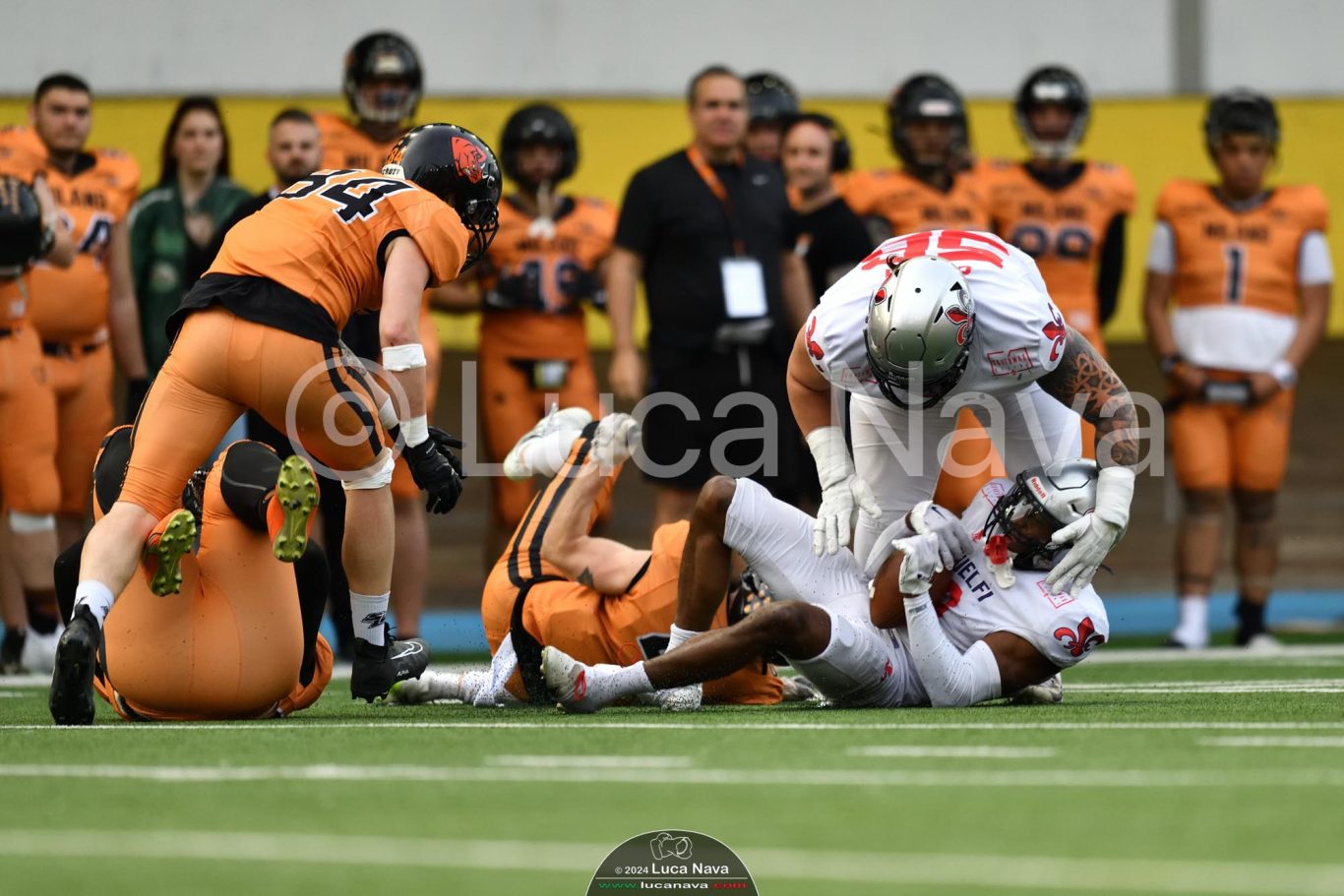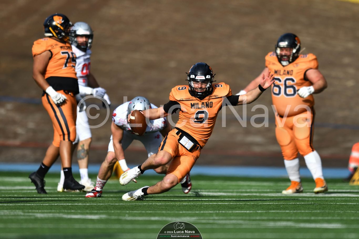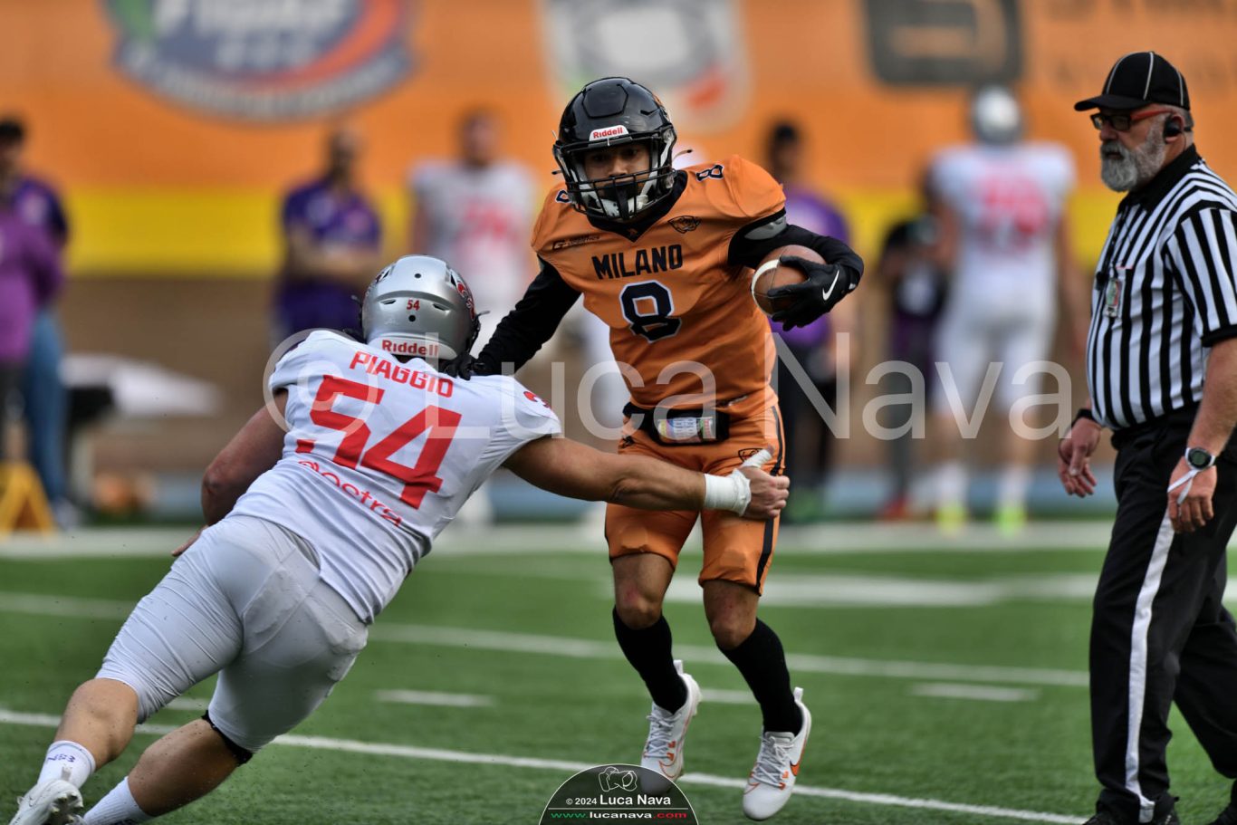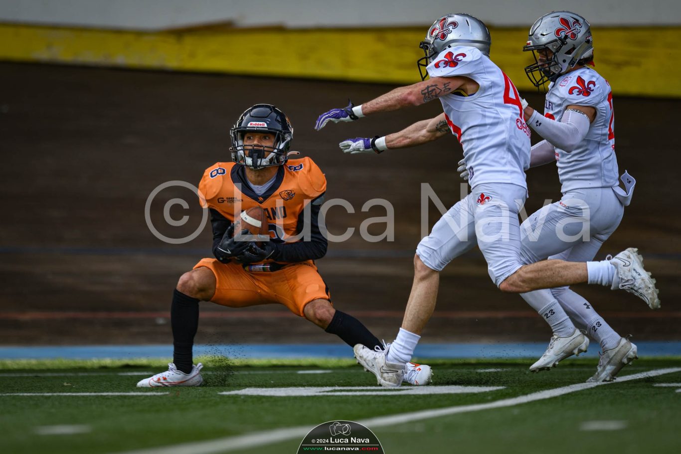 Le immagini raffigurate sono relative alla partita di Campionato Italiano di Football Americano FIDAF/IFL 1° Divisione 2024 "Rhinos Milano Vs. Guelfi Firenze" - realizzate in data 04 maggio 2024 c/o Velodromo Vigorelli - Via Arona, 19 - 20149 Milano (MI) Italy.