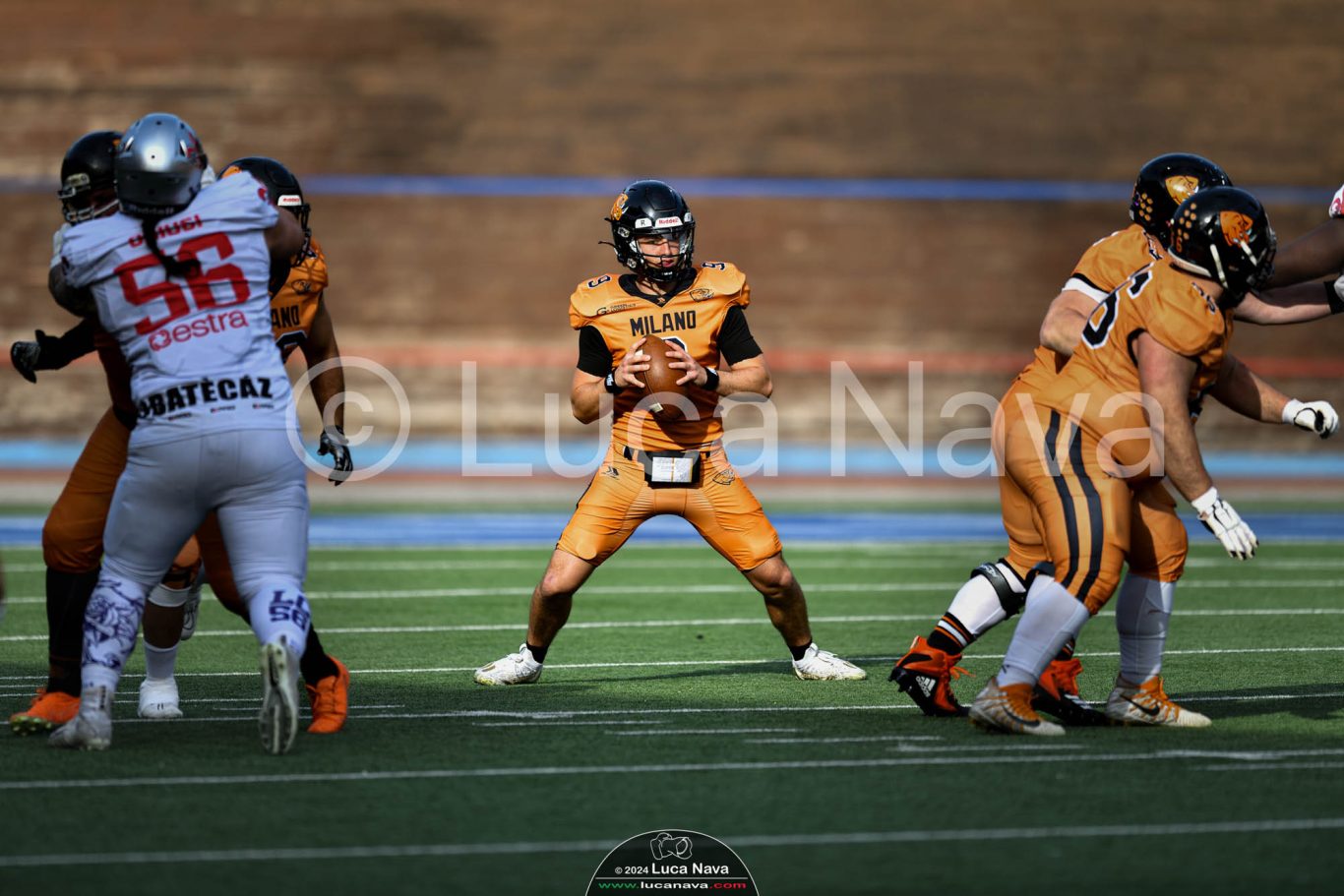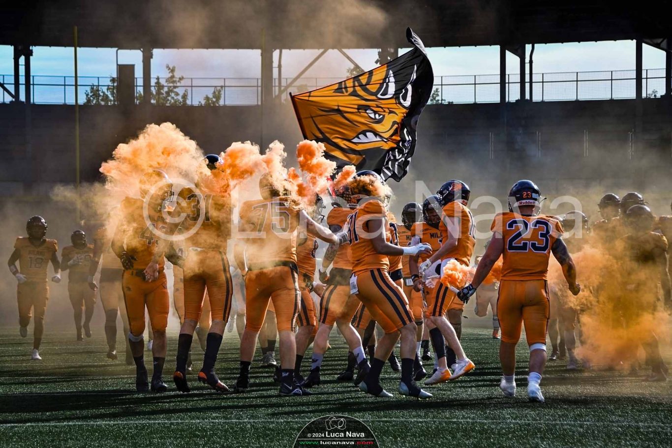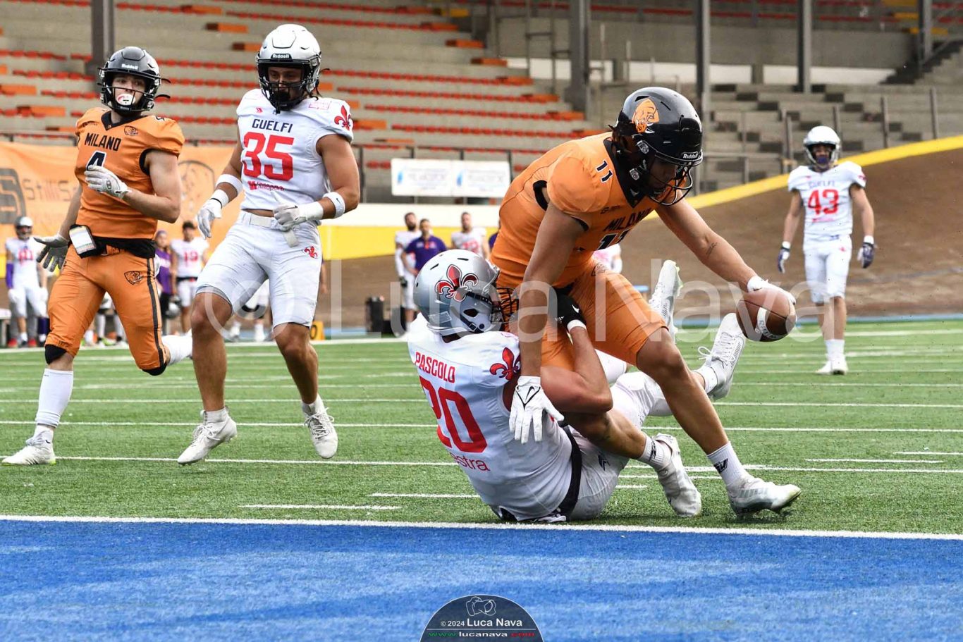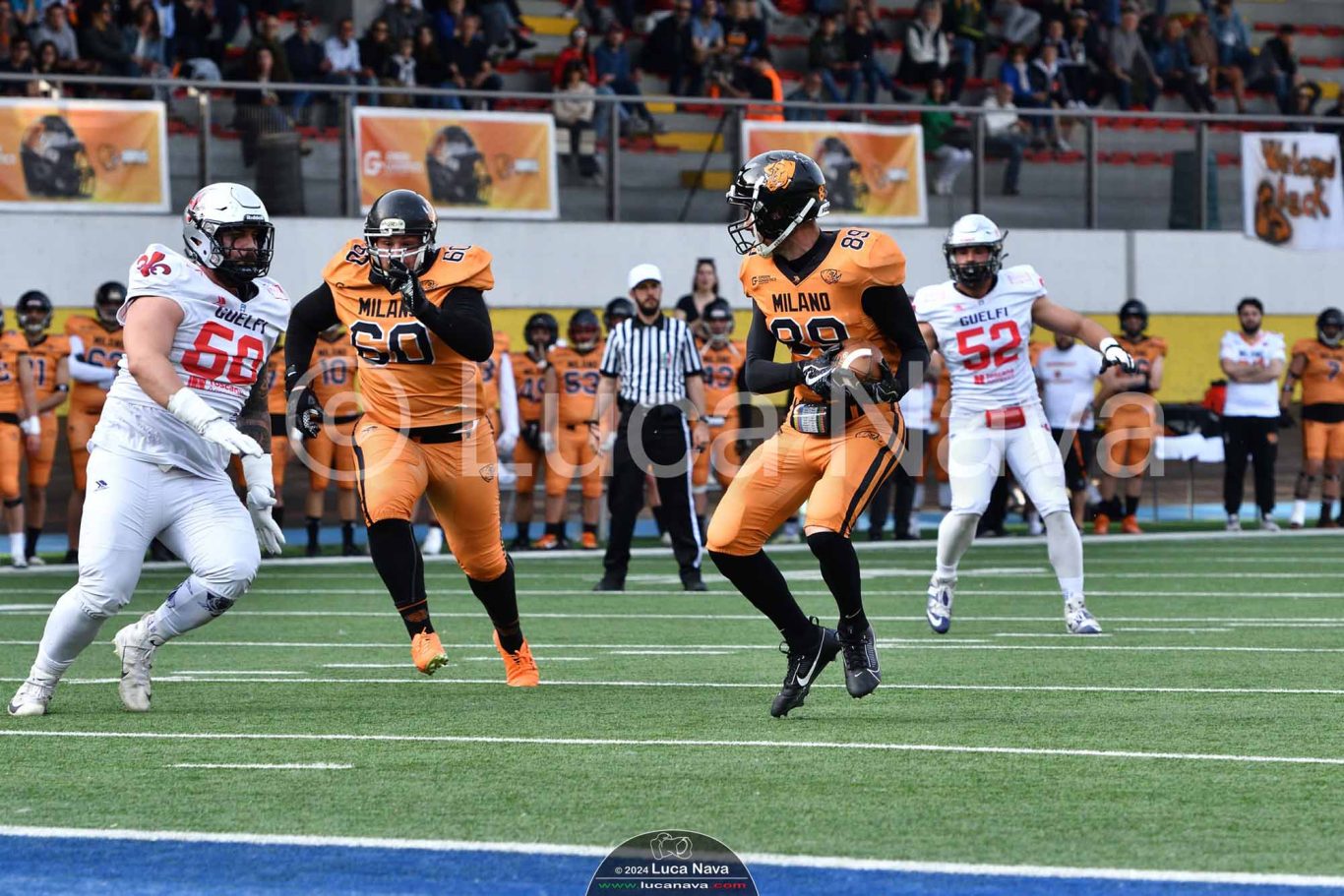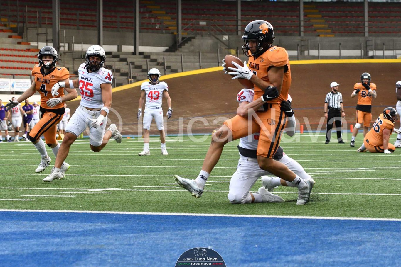 Le immagini raffigurate sono relative alla partita di Campionato Italiano di Football Americano FIDAF/IFL 1° Divisione 2024 "Rhinos Milano Vs. Guelfi Firenze" - realizzate in data 04 maggio 2024 c/o Velodromo Vigorelli - Via Arona, 19 - 20149 Milano (MI) Italy.