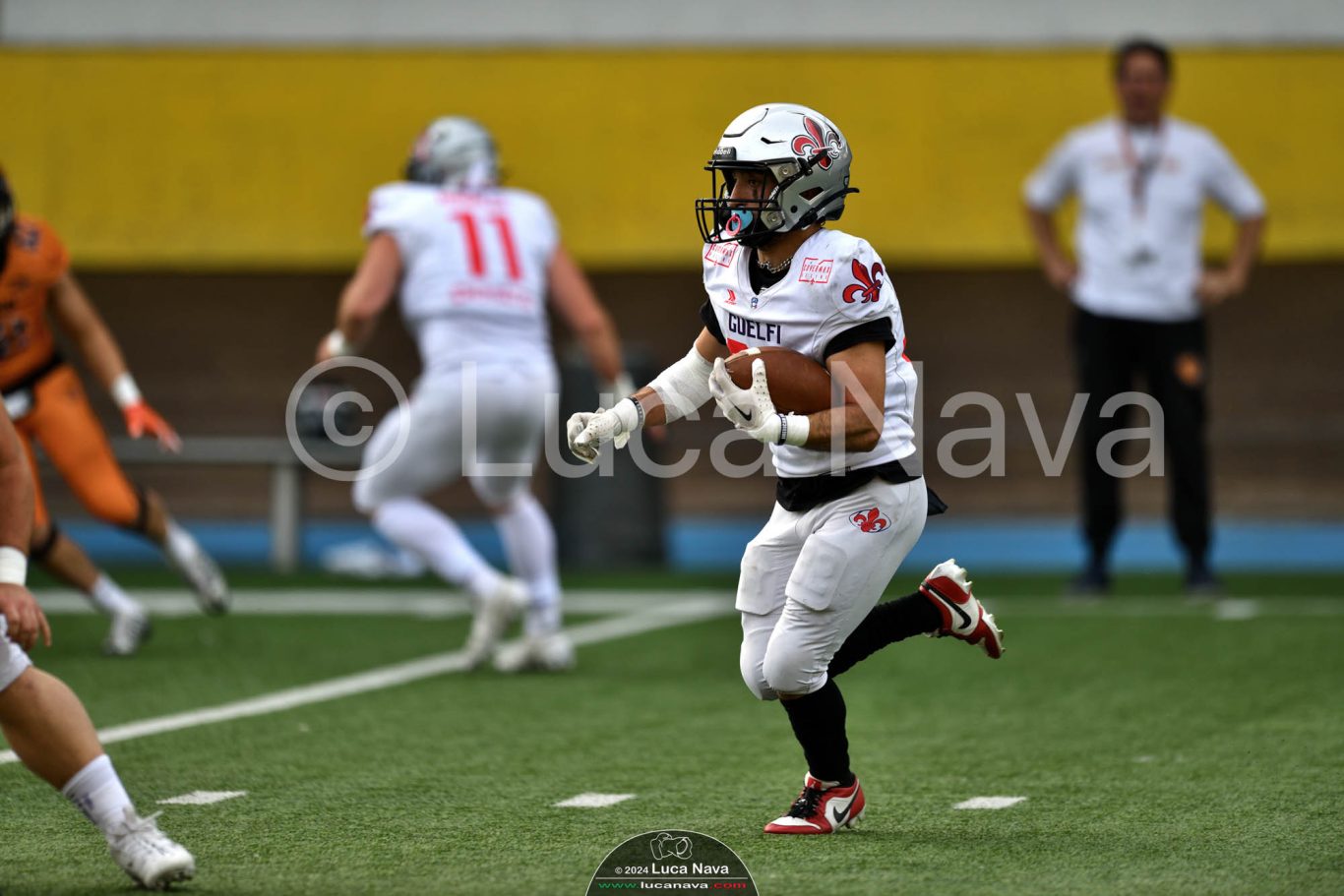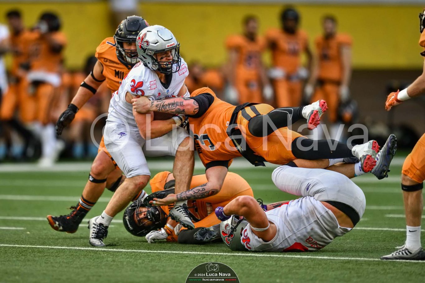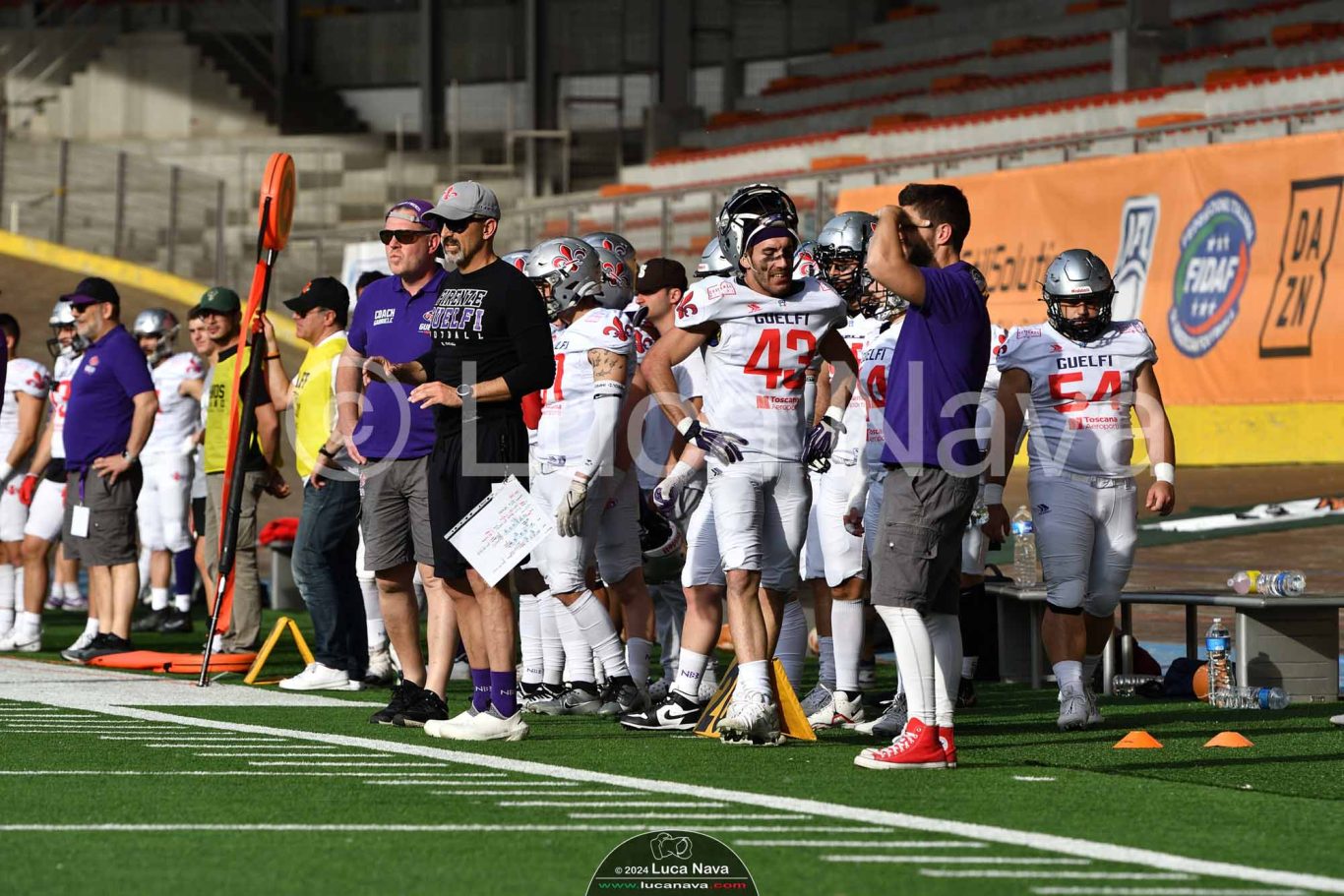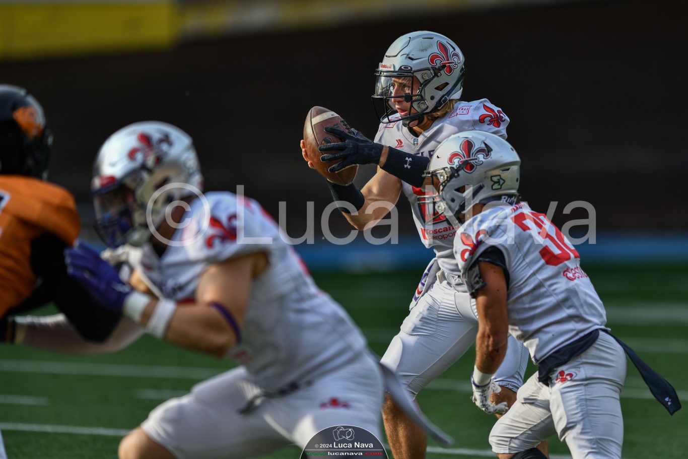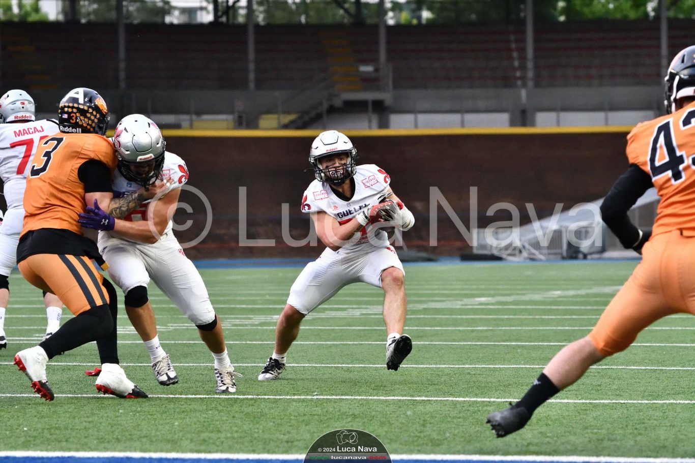 Le immagini raffigurate sono relative alla partita di Campionato Italiano di Football Americano FIDAF/IFL 1° Divisione 2024 "Rhinos Milano Vs. Guelfi Firenze" - realizzate in data 04 maggio 2024 c/o Velodromo Vigorelli - Via Arona, 19 - 20149 Milano (MI) Italy.