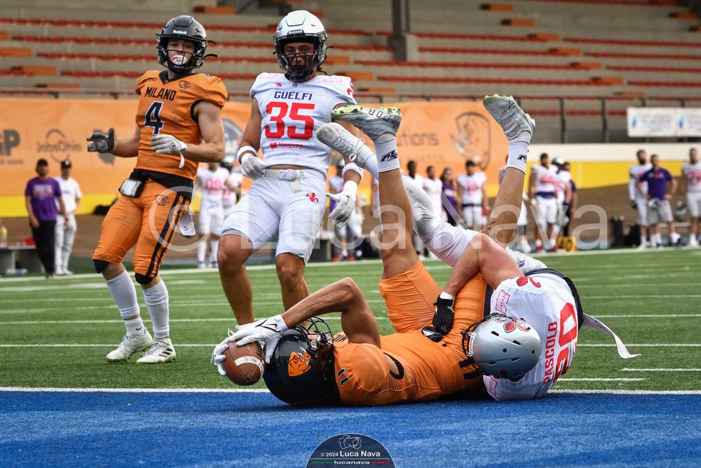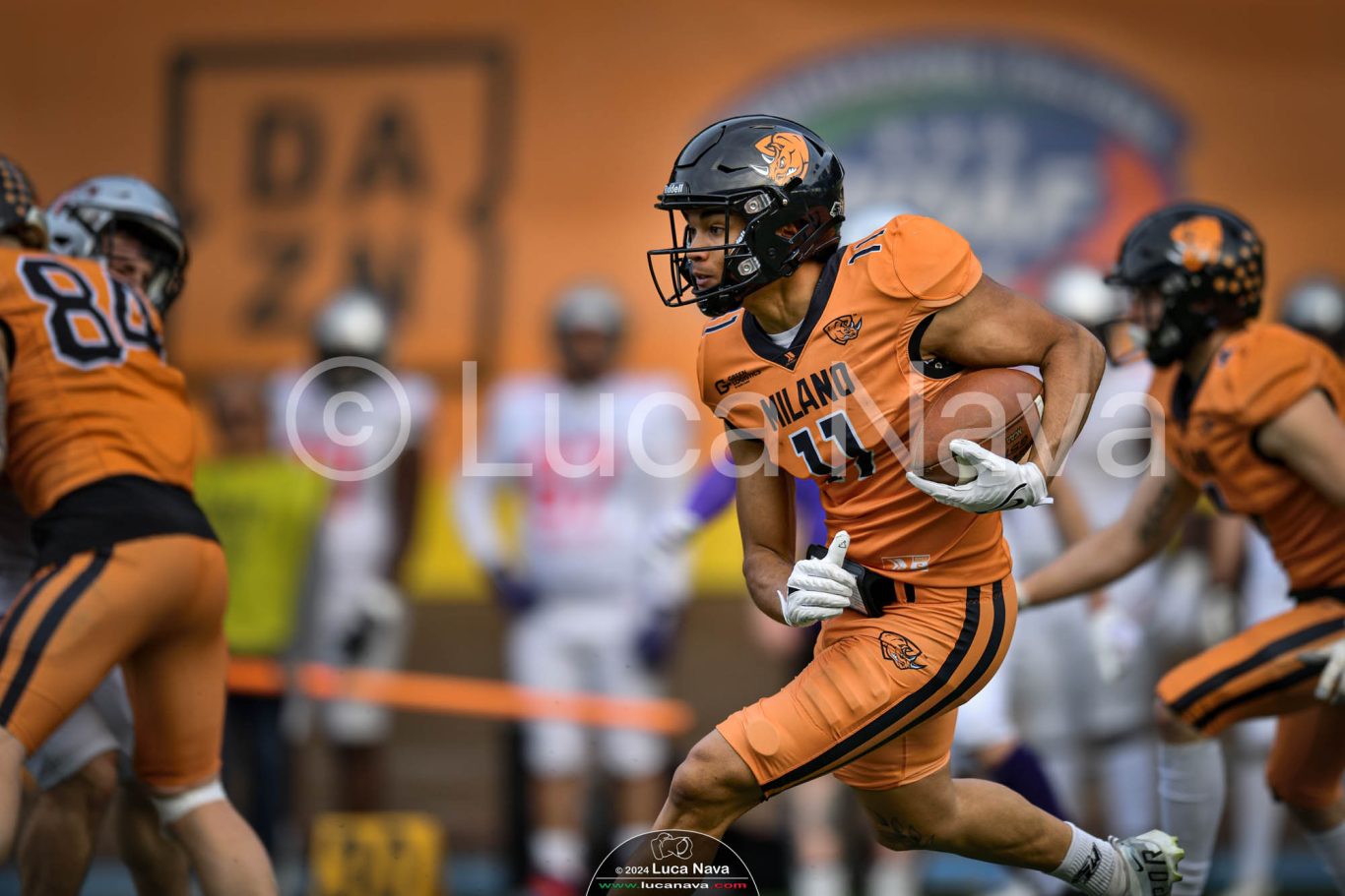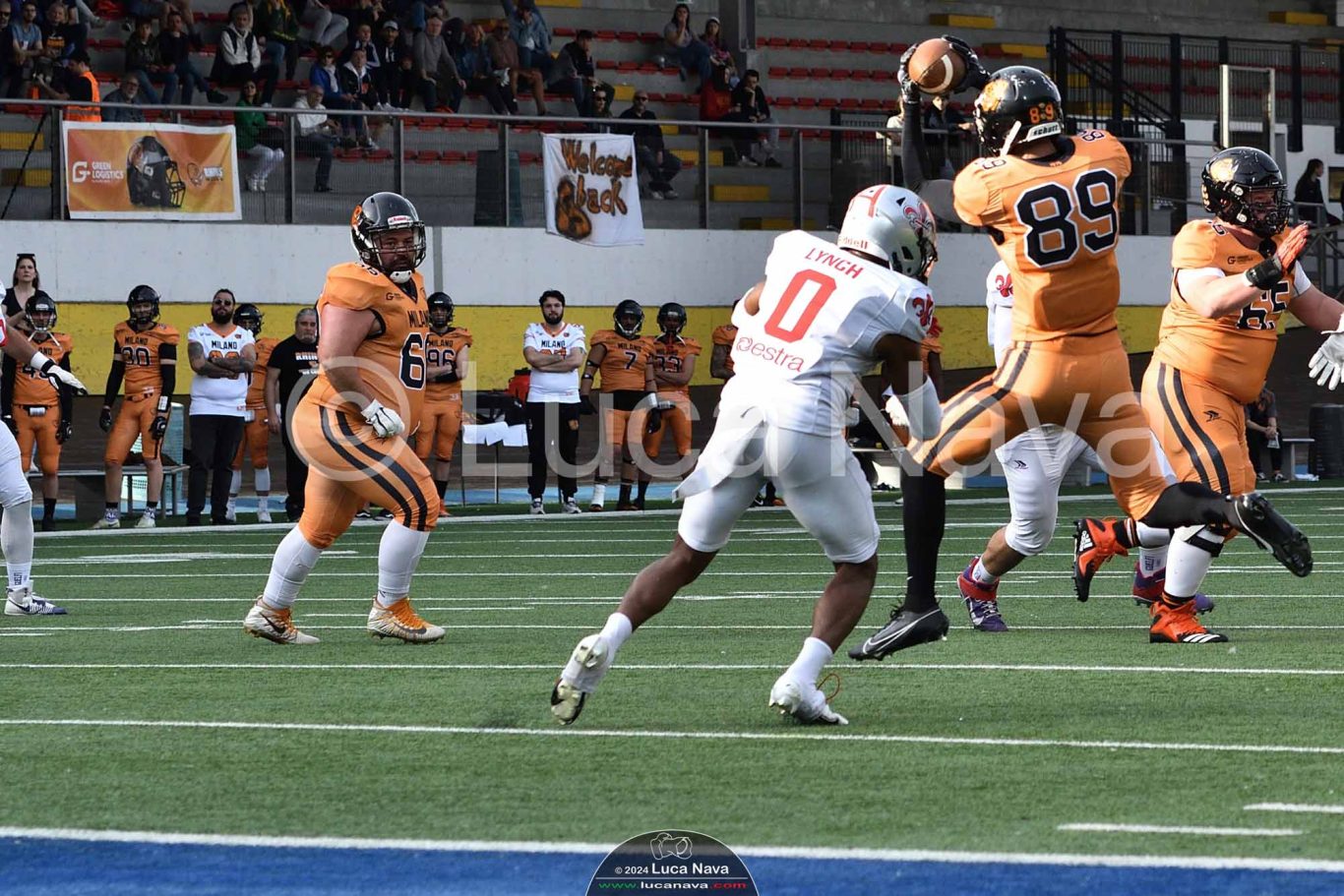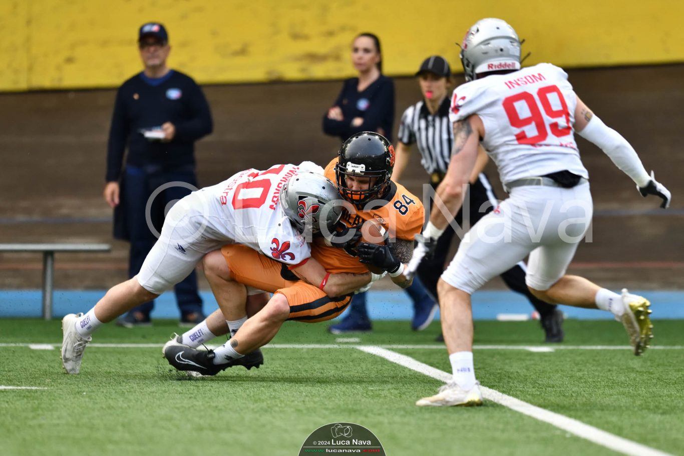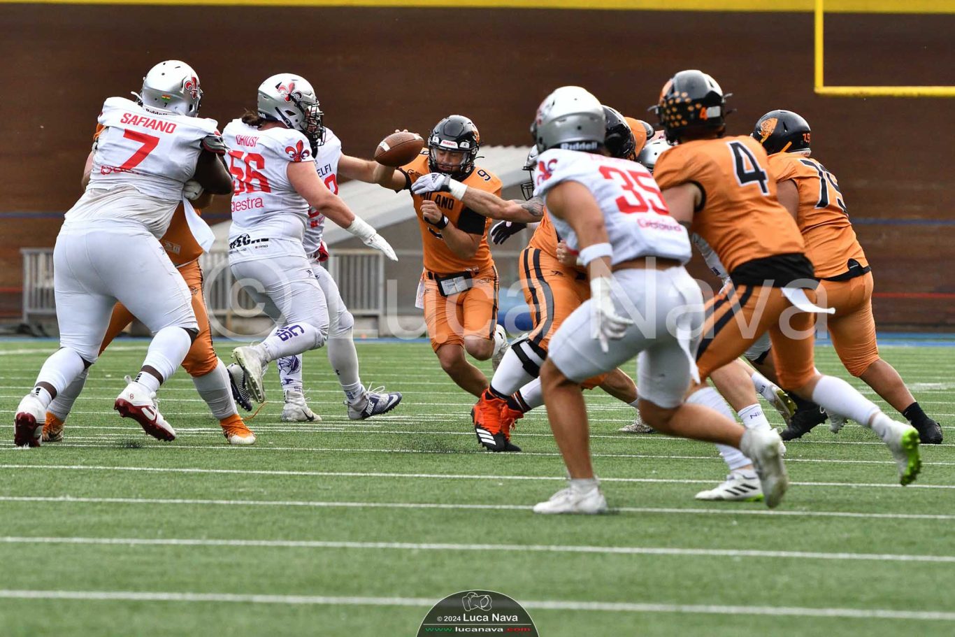 Le immagini raffigurate sono relative alla partita di Campionato Italiano di Football Americano FIDAF/IFL 1° Divisione 2024 "Rhinos Milano Vs. Guelfi Firenze" - realizzate in data 04 maggio 2024 c/o Velodromo Vigorelli - Via Arona, 19 - 20149 Milano (MI) Italy.