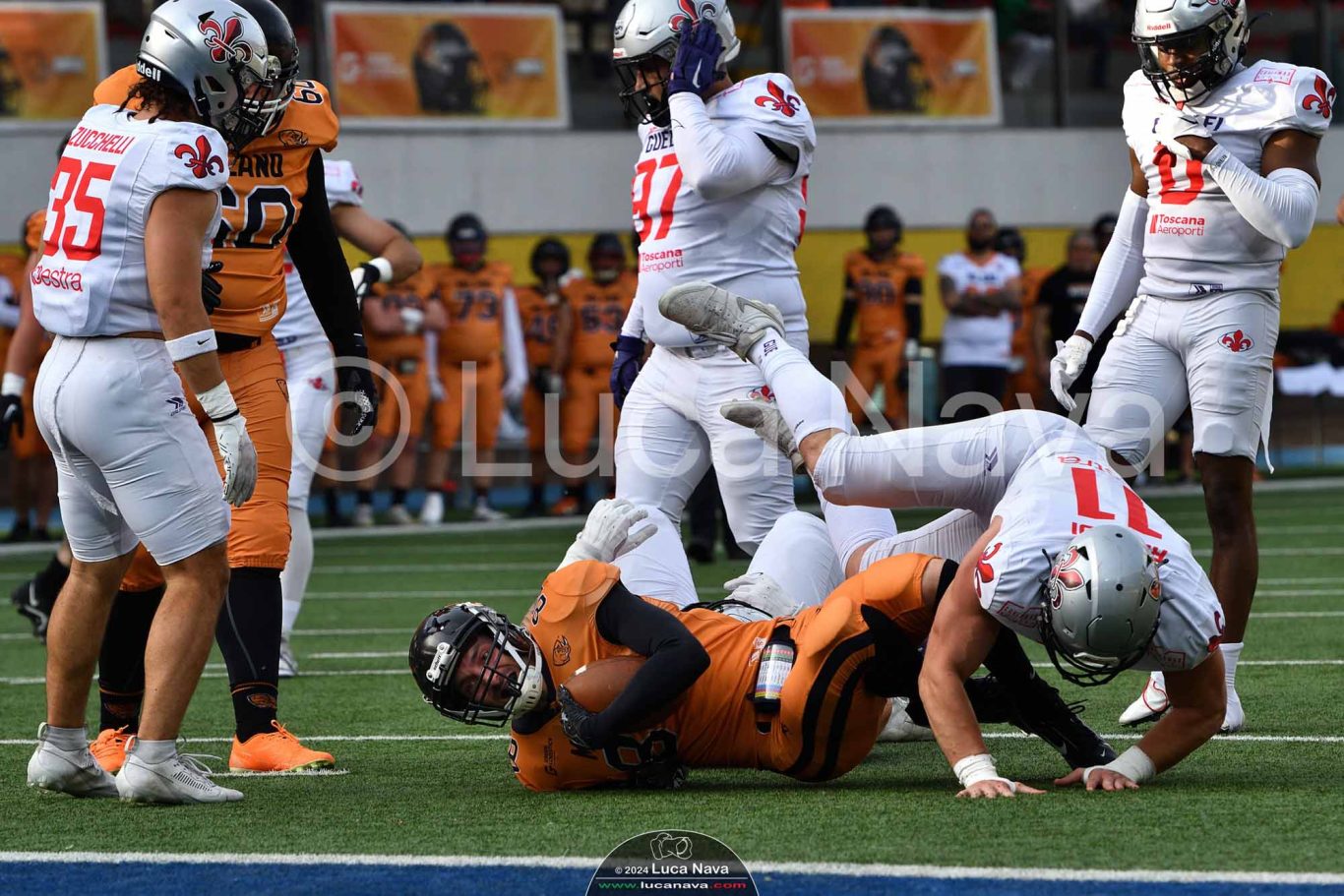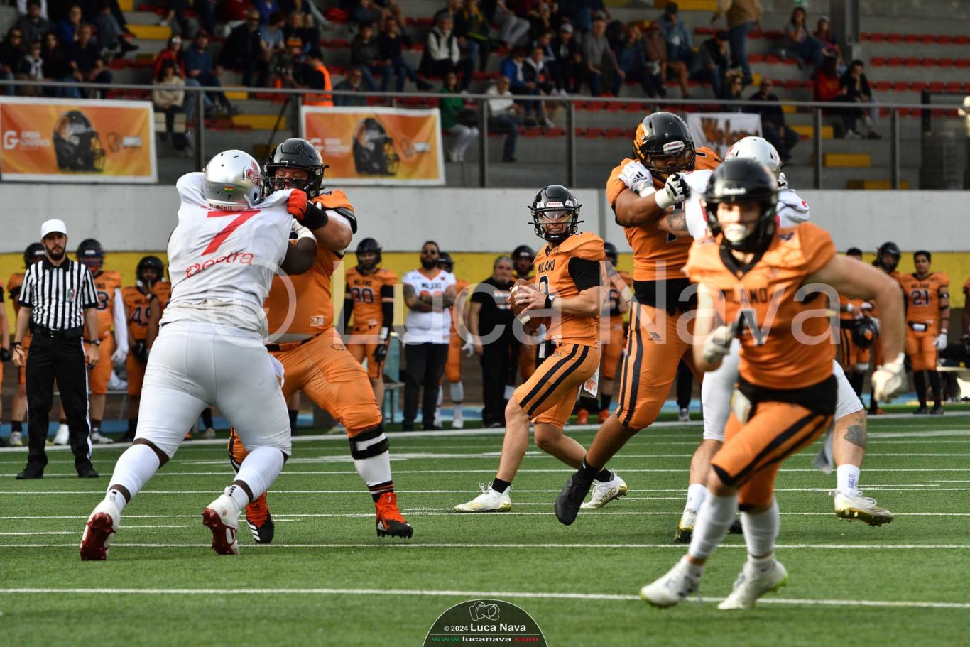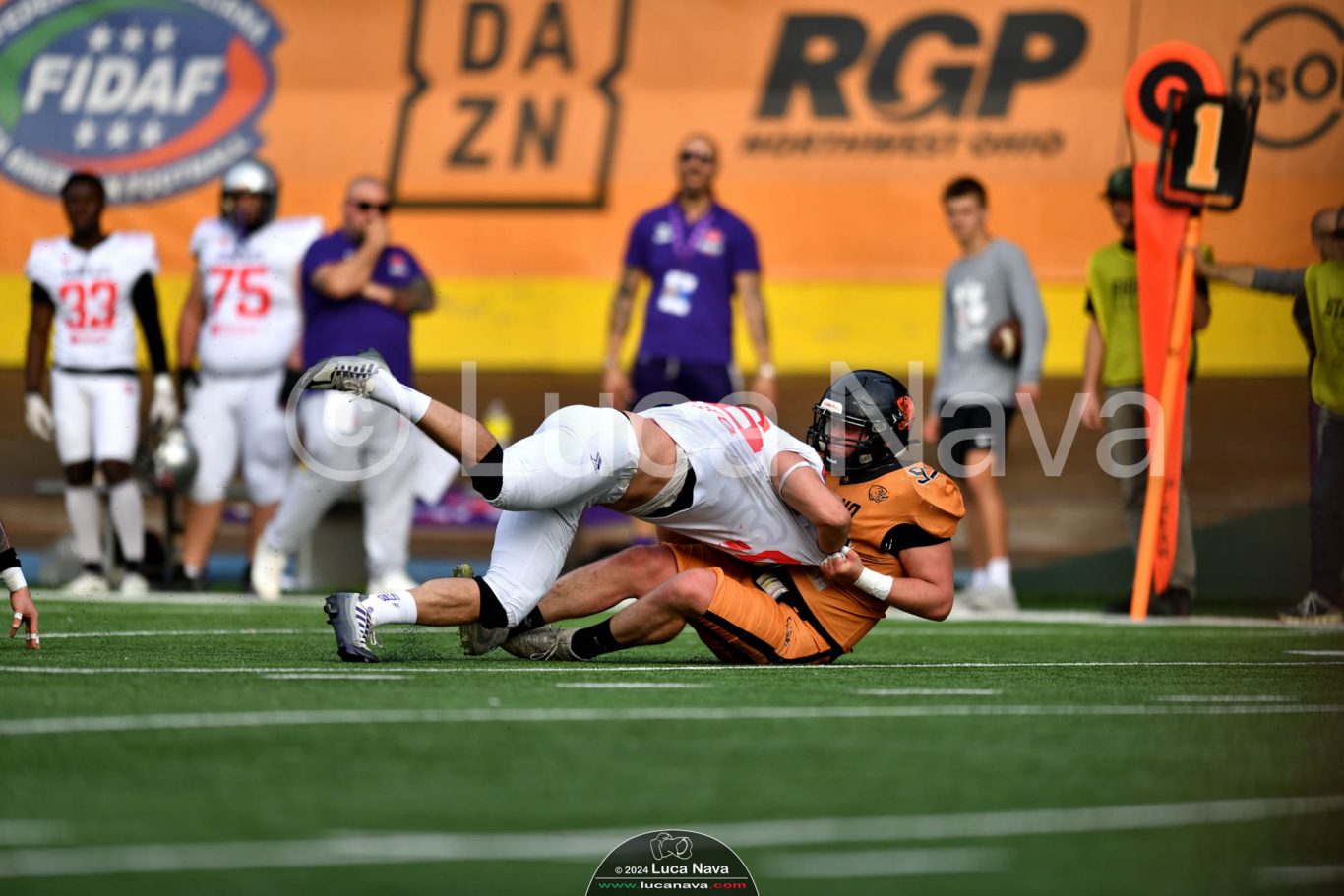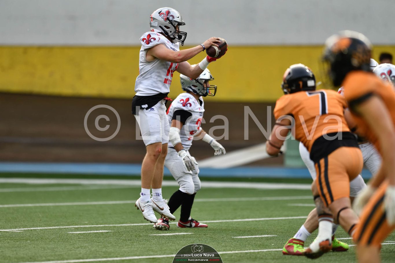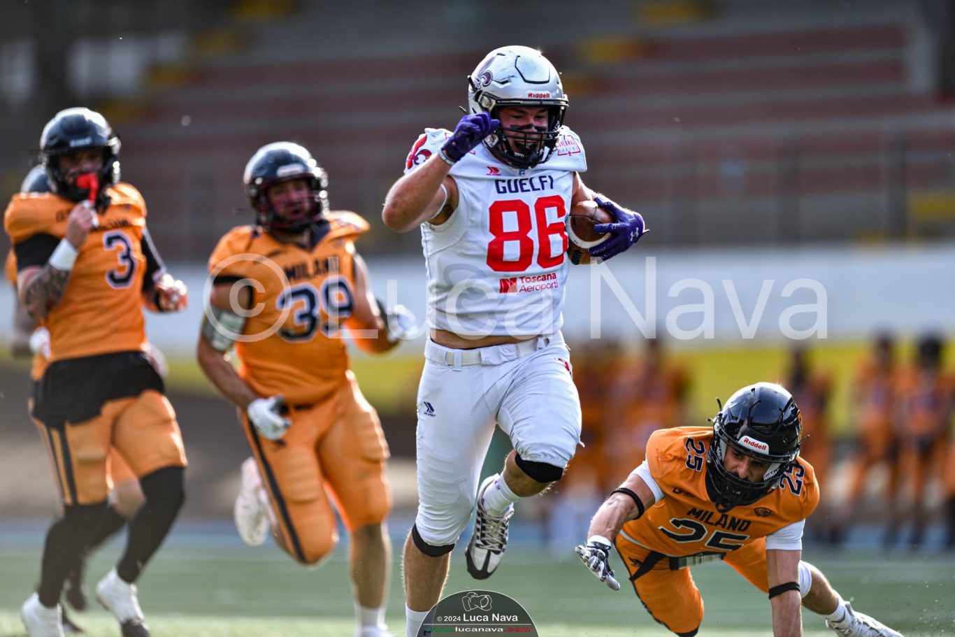 Le immagini raffigurate sono relative alla partita di Campionato Italiano di Football Americano FIDAF/IFL 1° Divisione 2024 "Rhinos Milano Vs. Guelfi Firenze" - realizzate in data 04 maggio 2024 c/o Velodromo Vigorelli - Via Arona, 19 - 20149 Milano (MI) Italy.