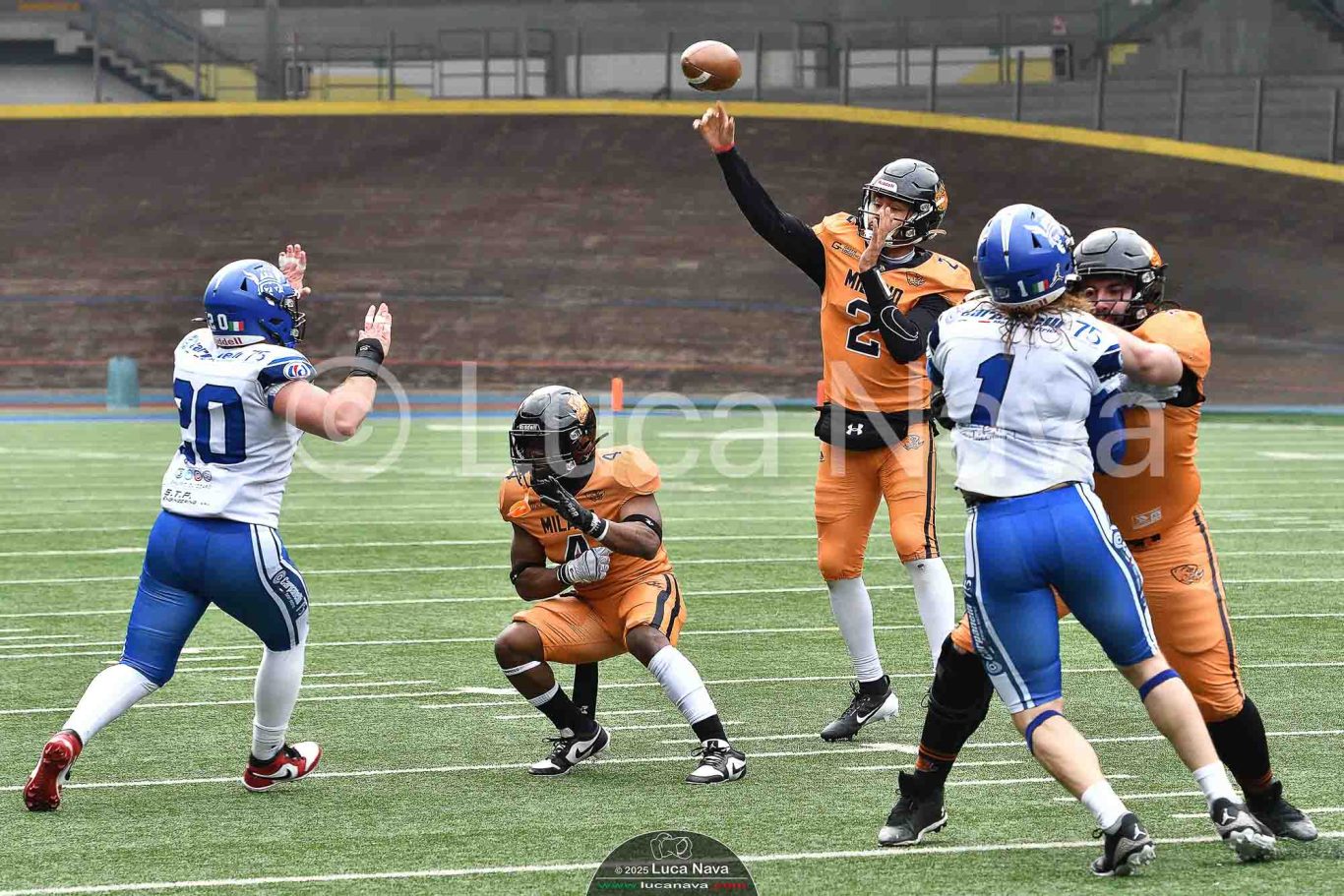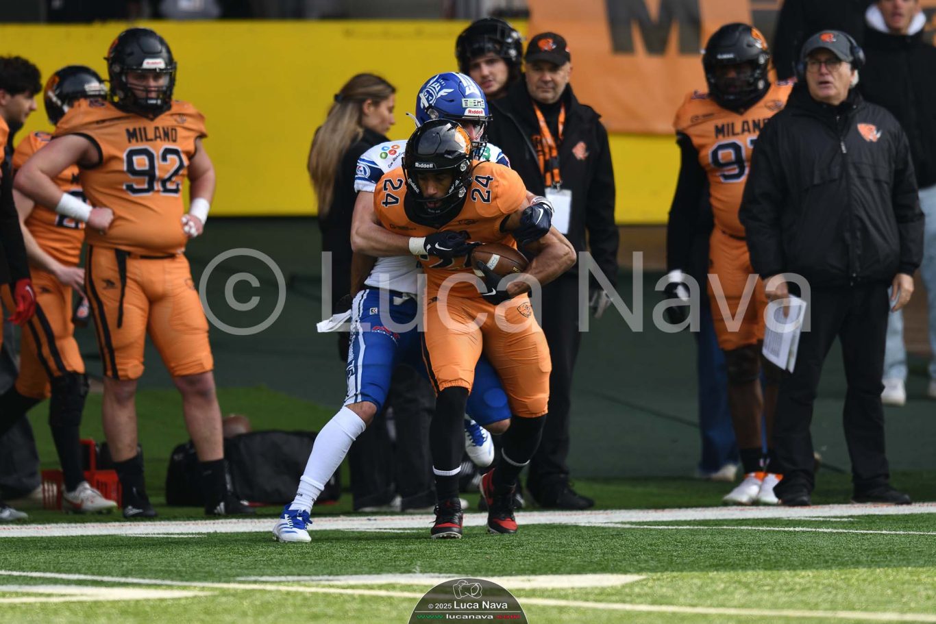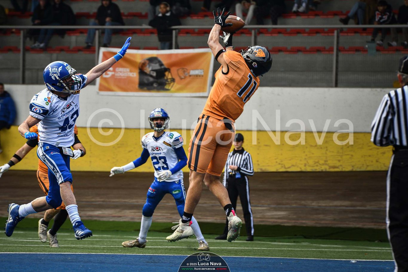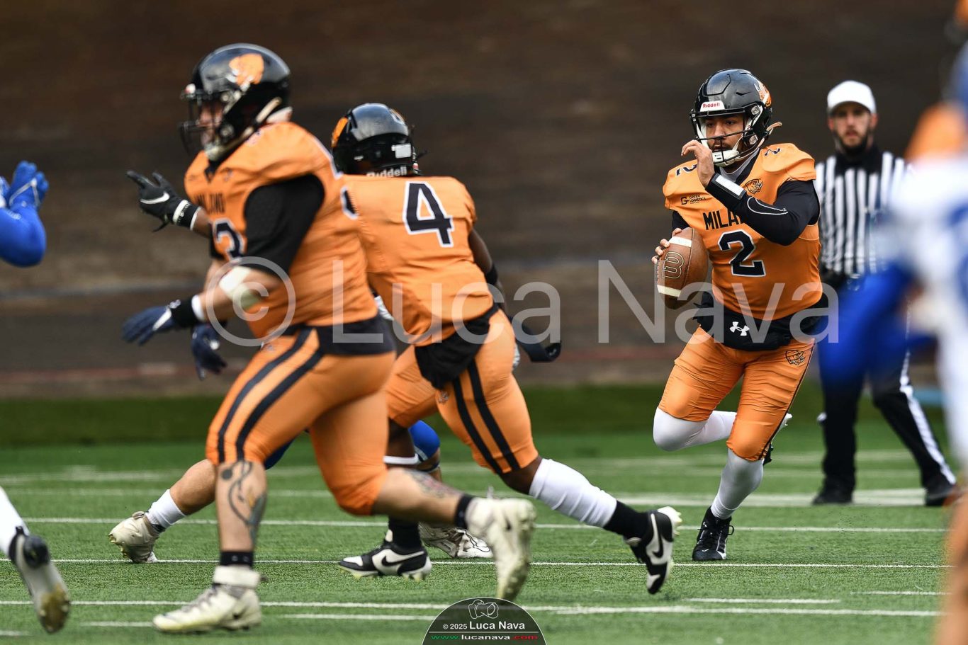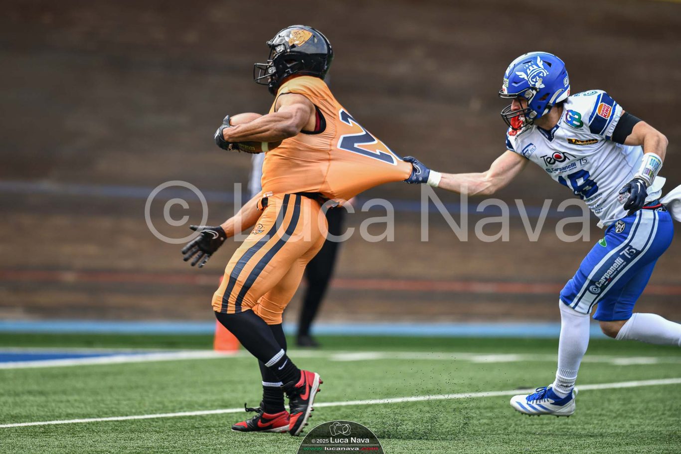 Le immagini raffigurate sono relative alla partita di Campionato Italiano di Football Americano FIDAF/IFL 1° Divisione 2025 "Rhinos Milano Vs. Warriors Bologna" - realizzate in data 16 febbraio 2025 c/o Velodromo Vigorelli - Via Arona, 19 - 20149 Milano (MI) Italy.