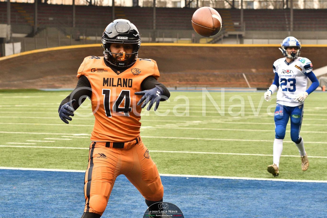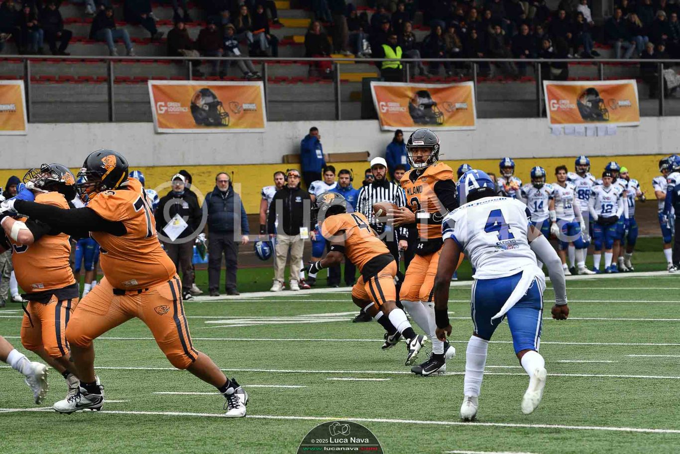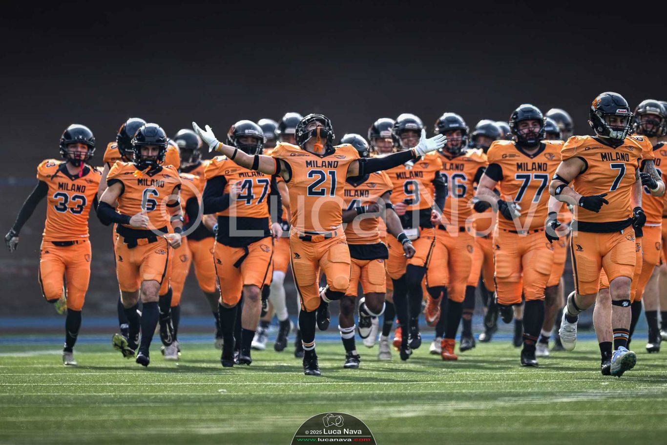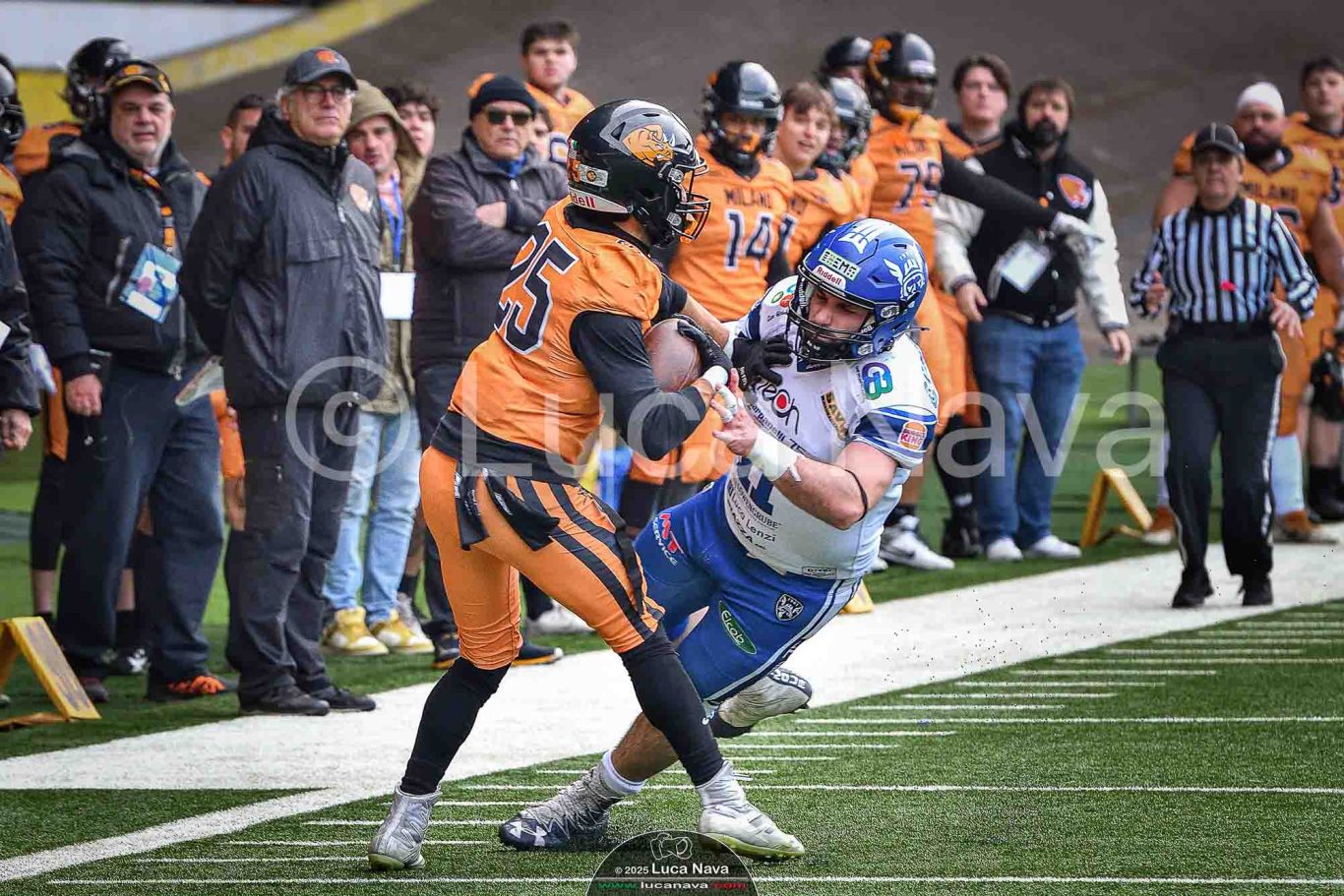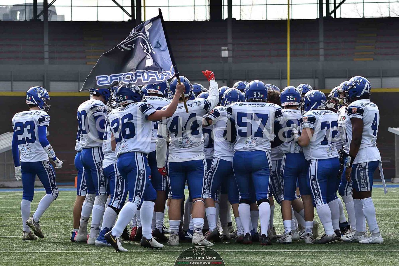 Le immagini raffigurate sono relative alla partita di Campionato Italiano di Football Americano FIDAF/IFL 1° Divisione 2025 "Rhinos Milano Vs. Warriors Bologna" - realizzate in data 16 febbraio 2025 c/o Velodromo Vigorelli - Via Arona, 19 - 20149 Milano (MI) Italy.