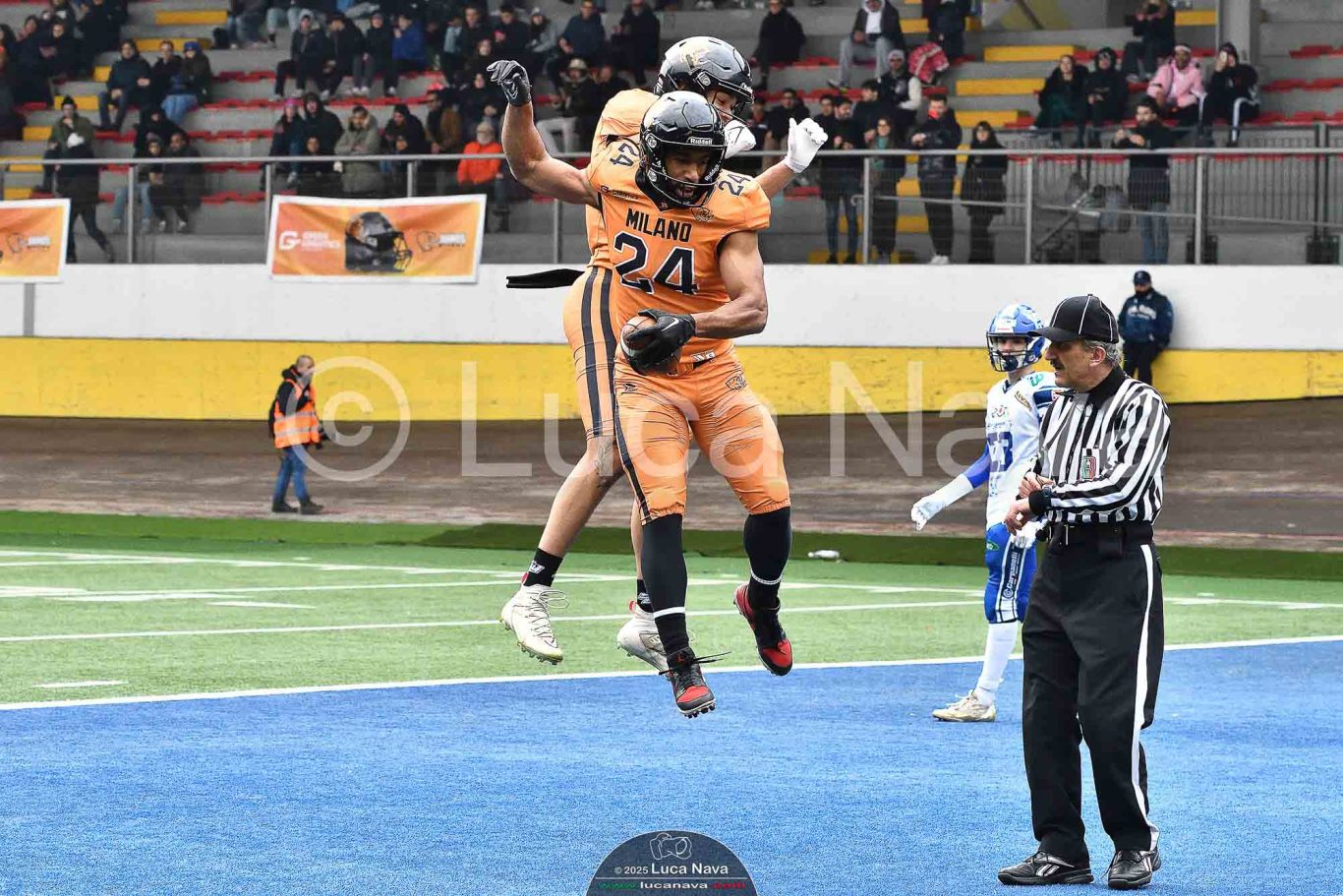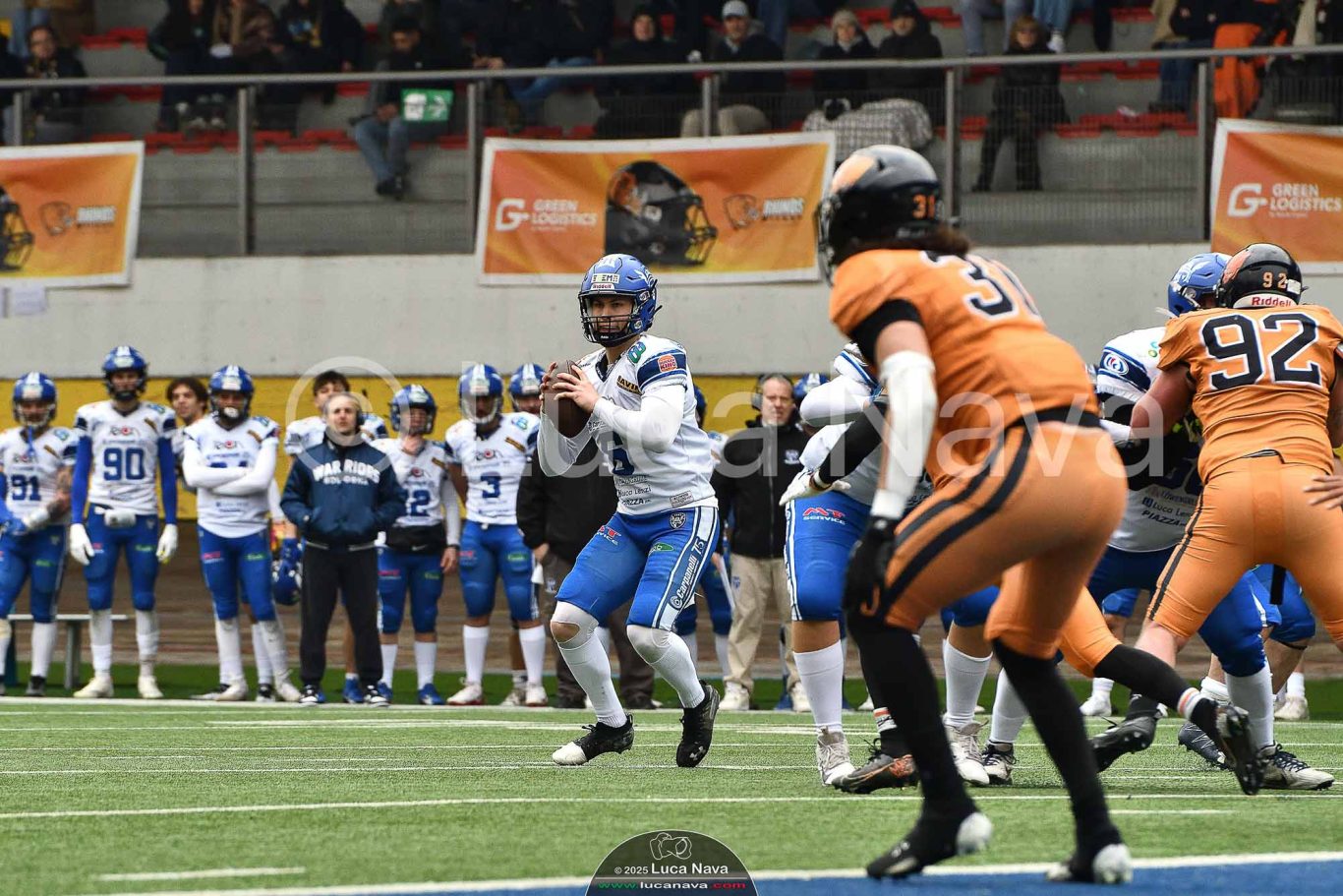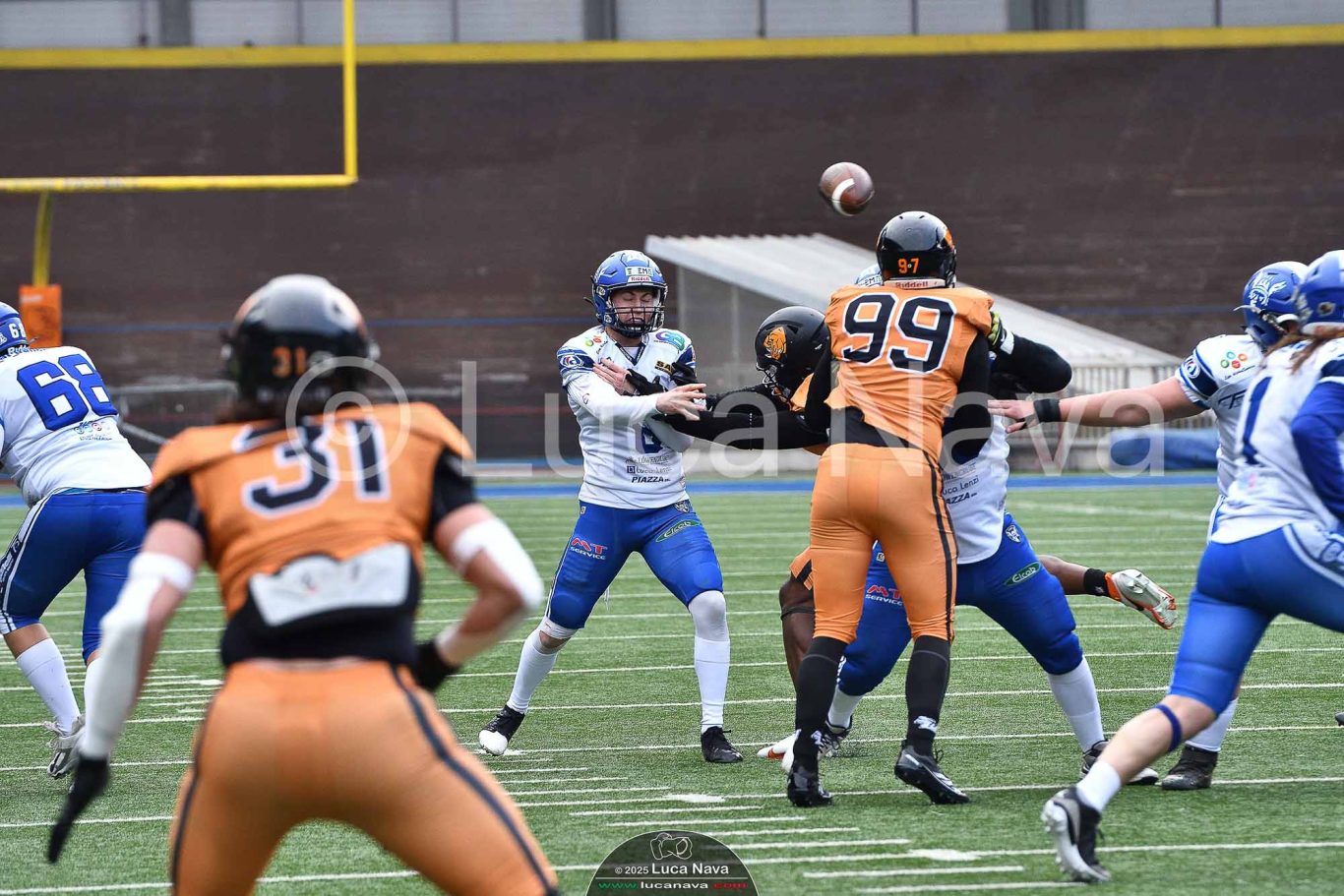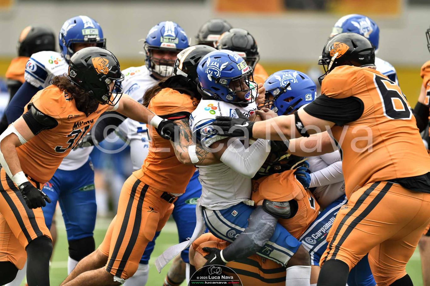 Le immagini raffigurate sono relative alla partita di Campionato Italiano di Football Americano FIDAF/IFL 1° Divisione 2025 "Rhinos Milano Vs. Warriors Bologna" - realizzate in data 16 febbraio 2025 c/o Velodromo Vigorelli - Via Arona, 19 - 20149 Milano (MI) Italy.