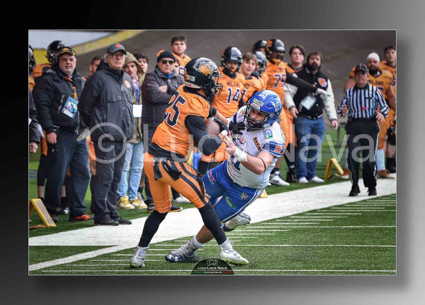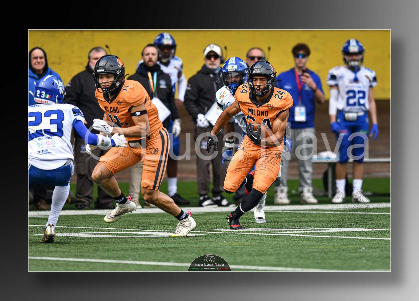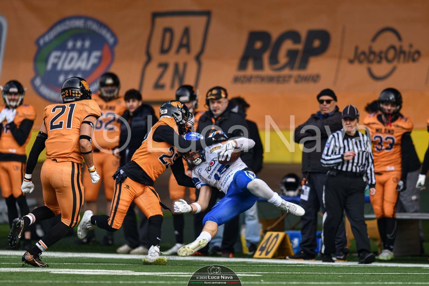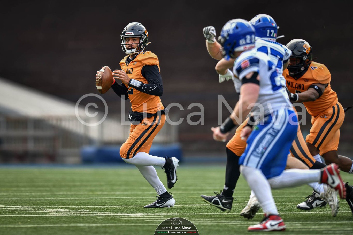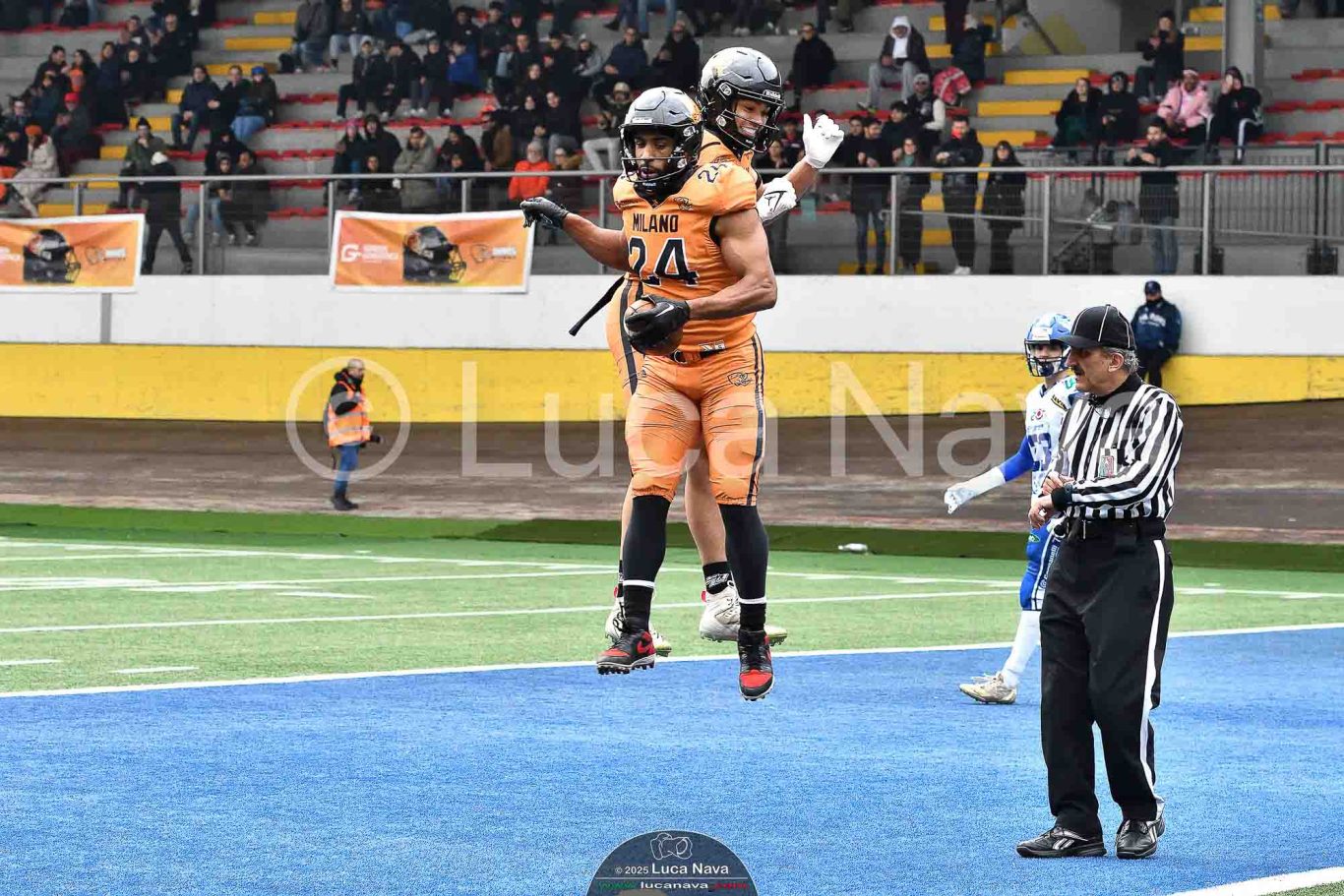 Le immagini raffigurate sono relative alla partita di Campionato Italiano di Football Americano FIDAF/IFL 1° Divisione 2025 "Rhinos Milano Vs. Warriors Bologna" - realizzate in data 16 febbraio 2025 c/o Velodromo Vigorelli - Via Arona, 19 - 20149 Milano (MI) Italy.