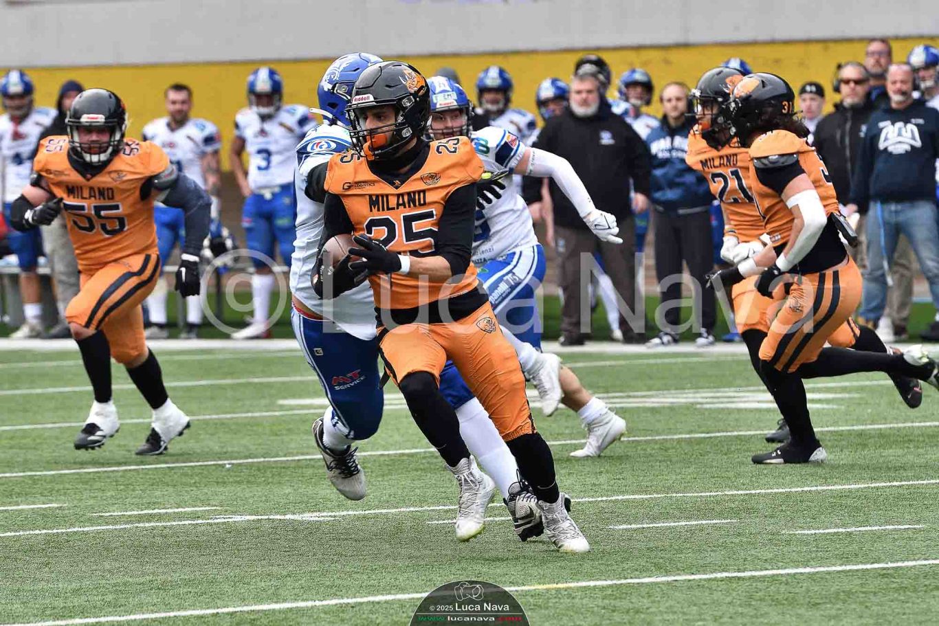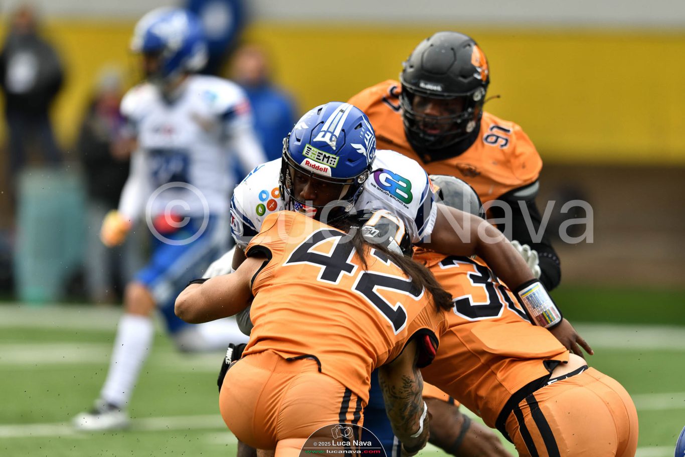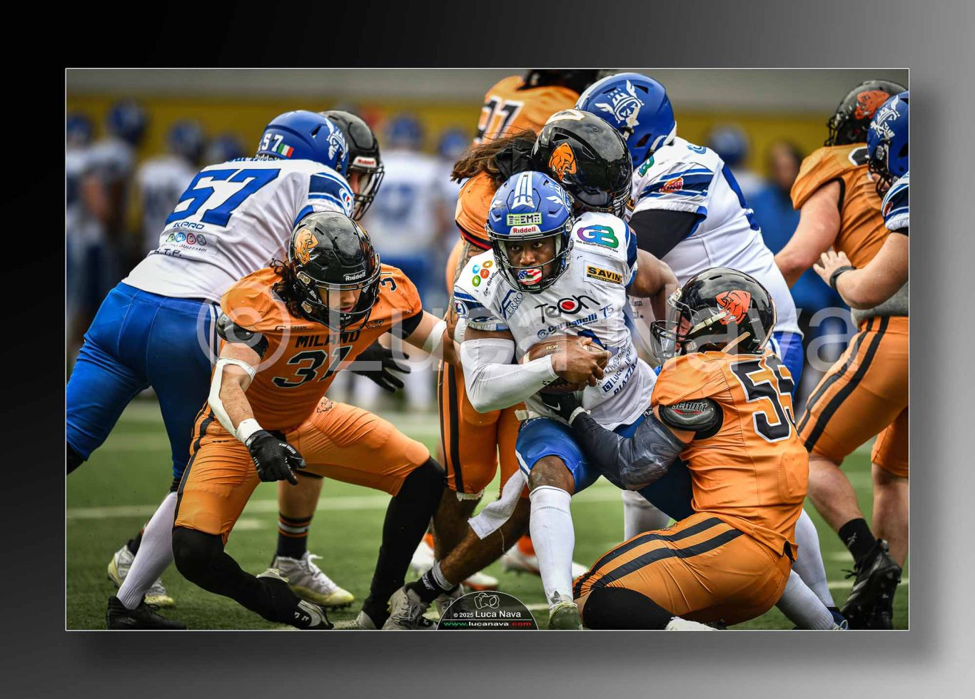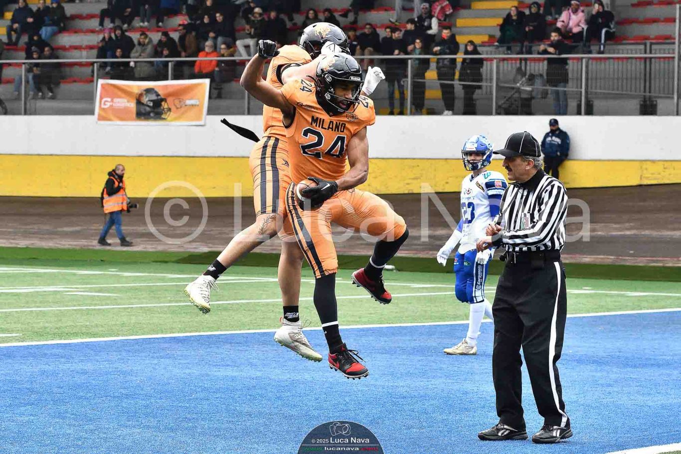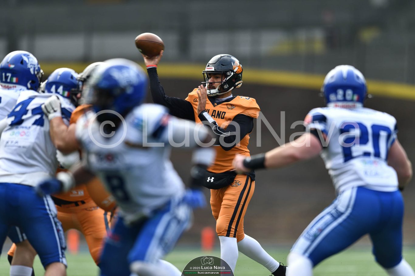 Le immagini raffigurate sono relative alla partita di Campionato Italiano di Football Americano FIDAF/IFL 1° Divisione 2025 "Rhinos Milano Vs. Warriors Bologna" - realizzate in data 16 febbraio 2025 c/o Velodromo Vigorelli - Via Arona, 19 - 20149 Milano (MI) Italy.