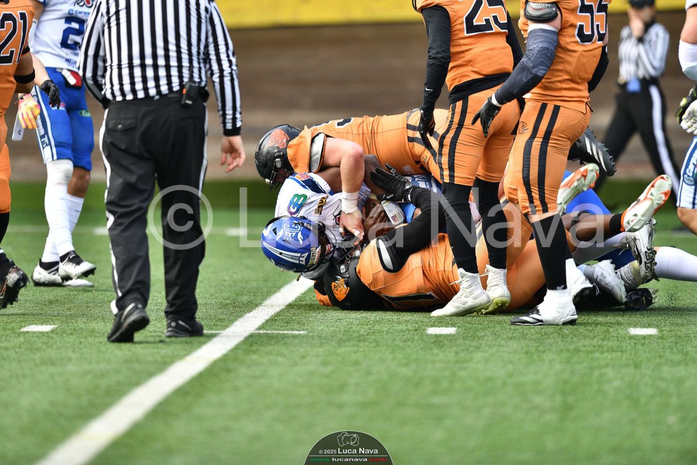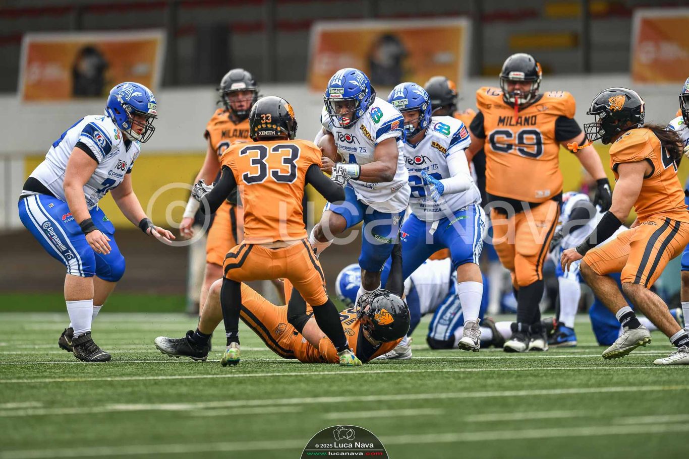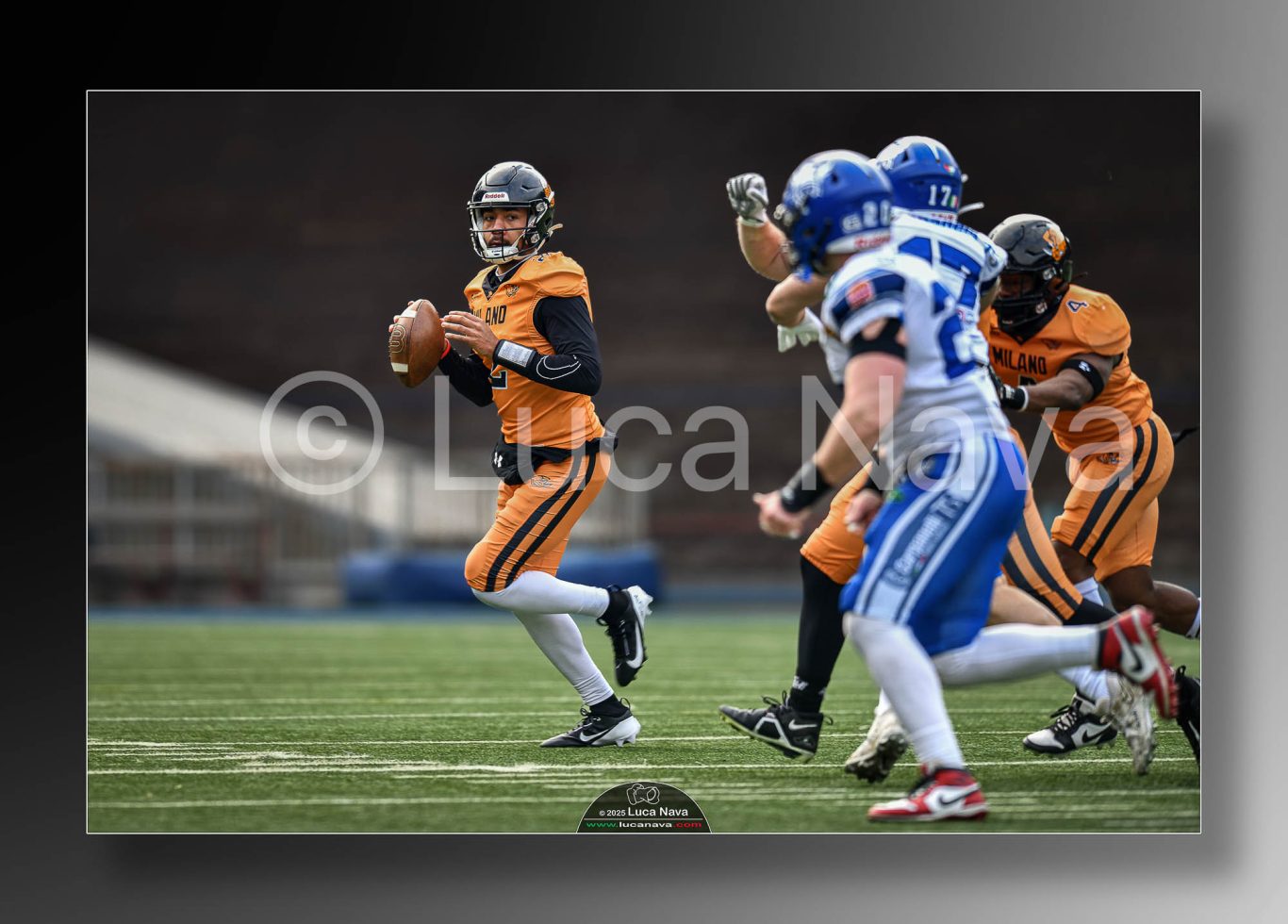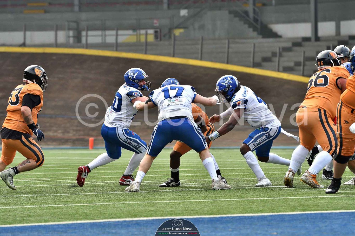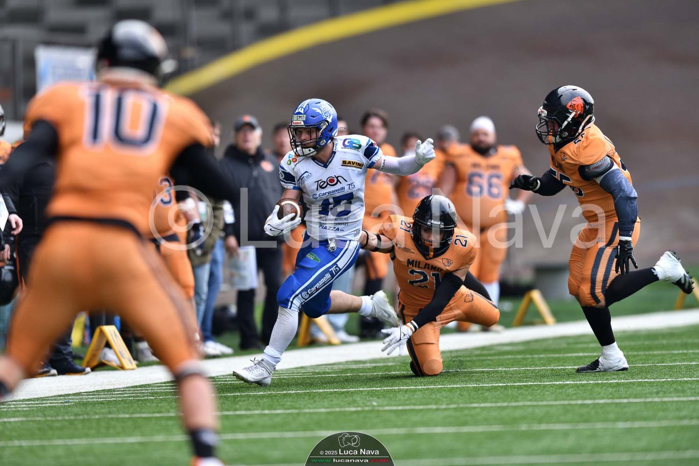 Le immagini raffigurate sono relative alla partita di Campionato Italiano di Football Americano FIDAF/IFL 1° Divisione 2025 "Rhinos Milano Vs. Warriors Bologna" - realizzate in data 16 febbraio 2025 c/o Velodromo Vigorelli - Via Arona, 19 - 20149 Milano (MI) Italy.