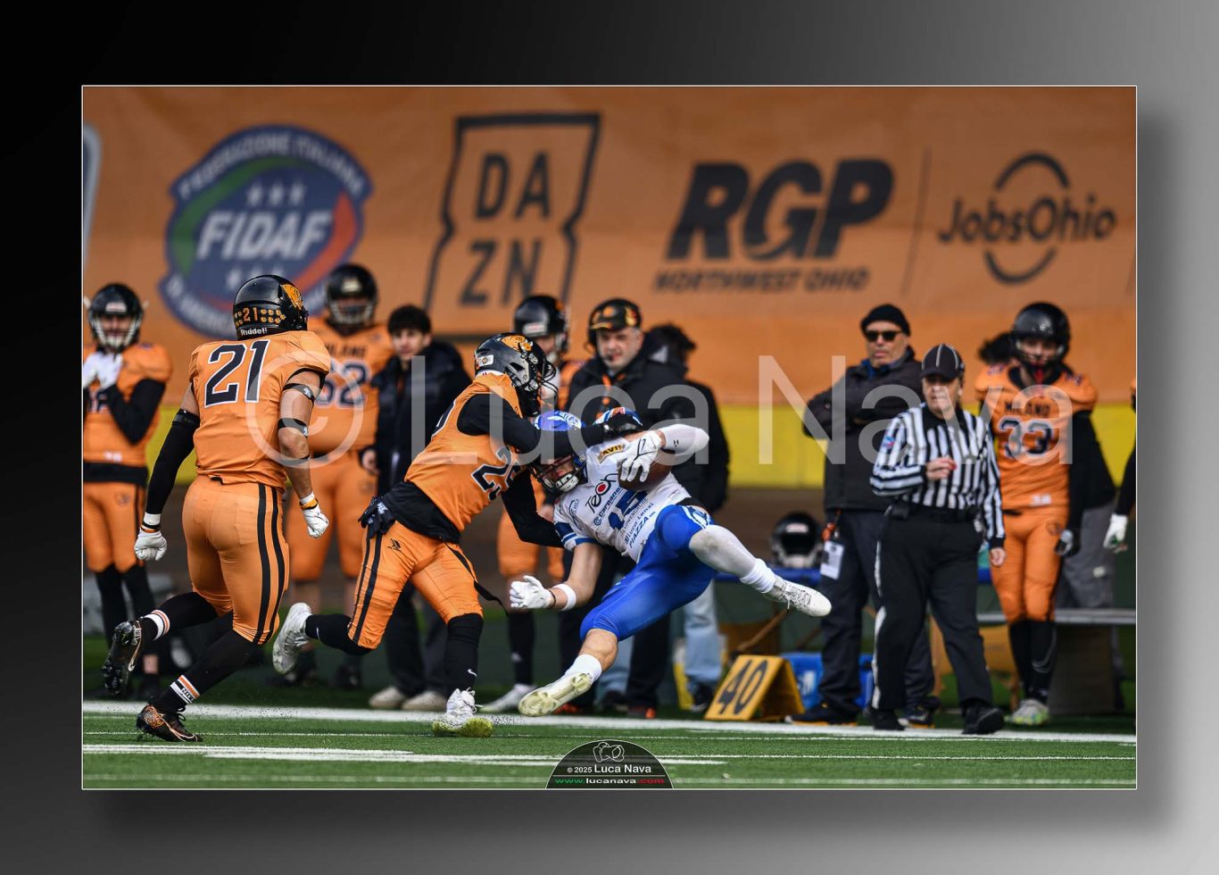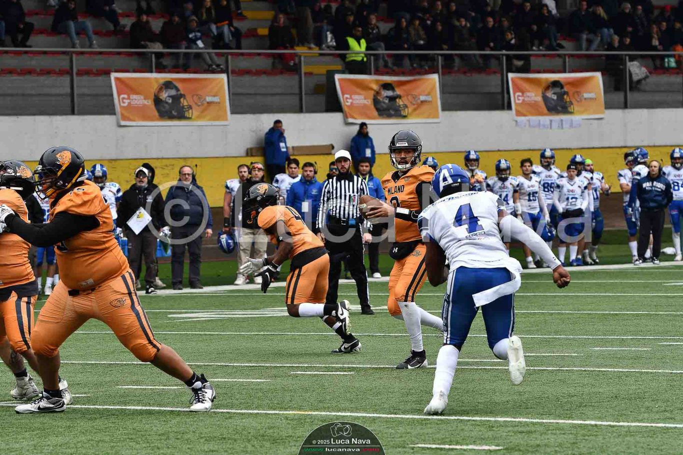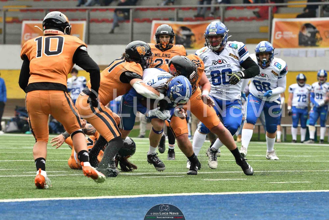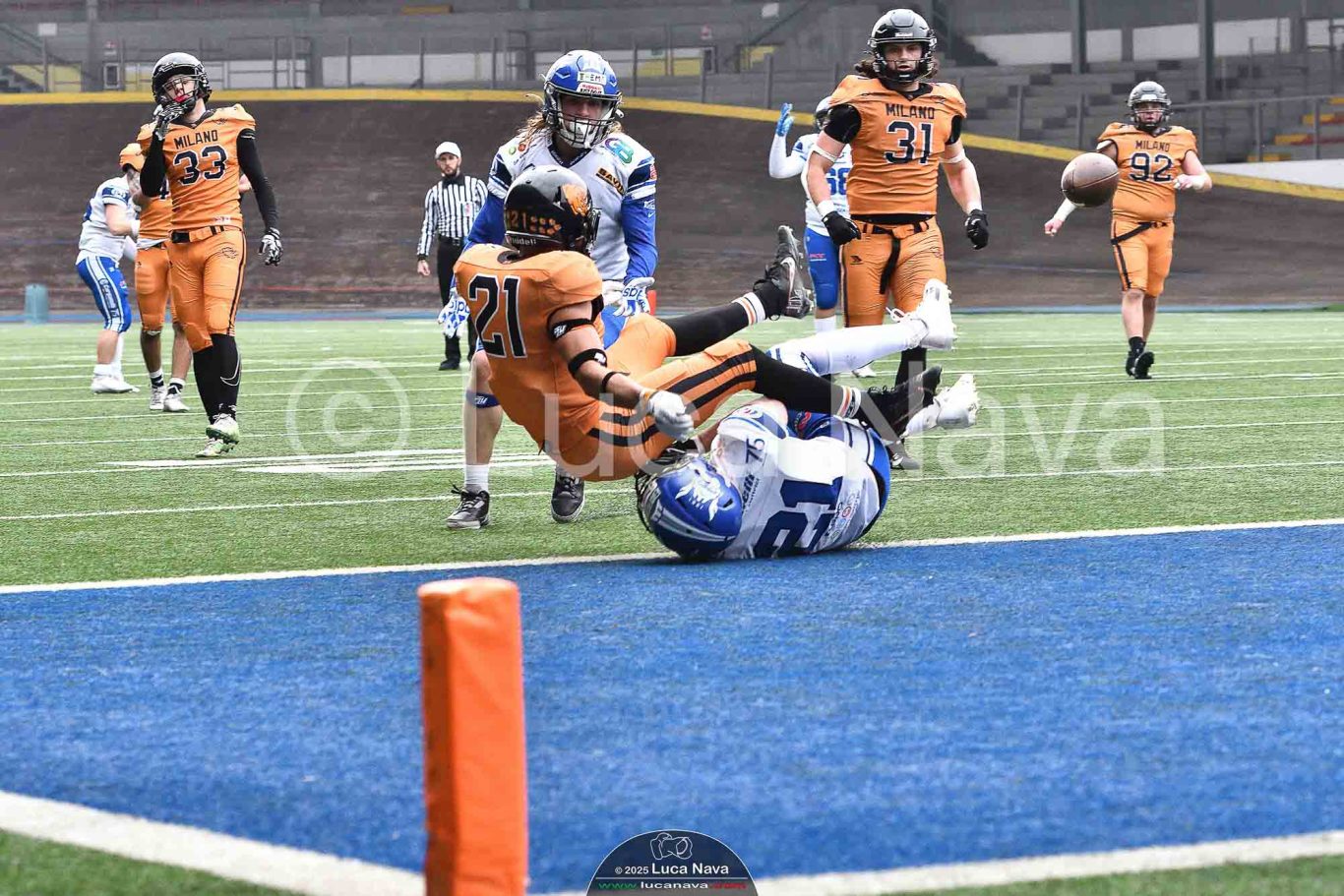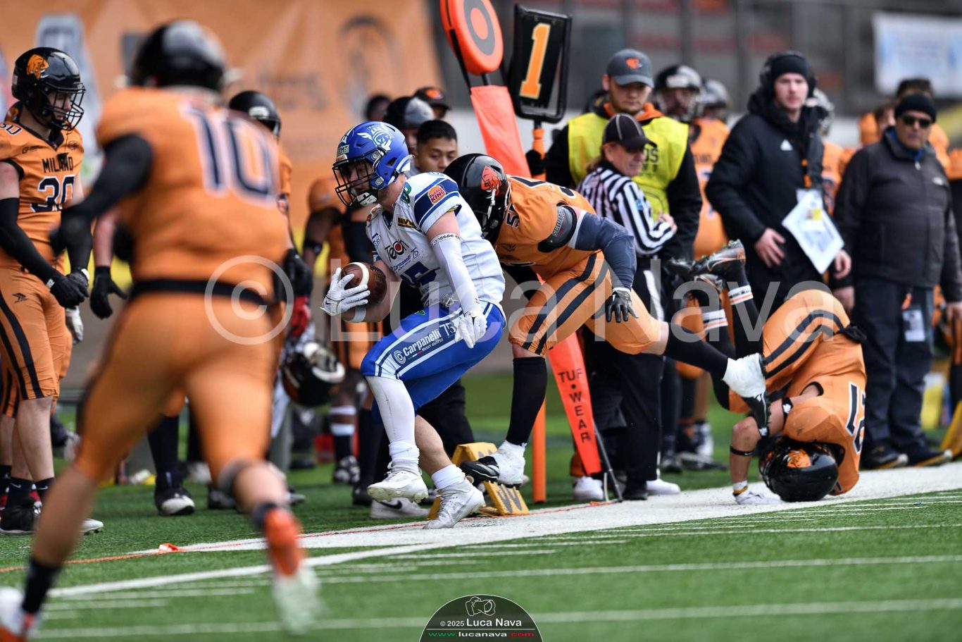 Le immagini raffigurate sono relative alla partita di Campionato Italiano di Football Americano FIDAF/IFL 1° Divisione 2025 "Rhinos Milano Vs. Warriors Bologna" - realizzate in data 16 febbraio 2025 c/o Velodromo Vigorelli - Via Arona, 19 - 20149 Milano (MI) Italy.