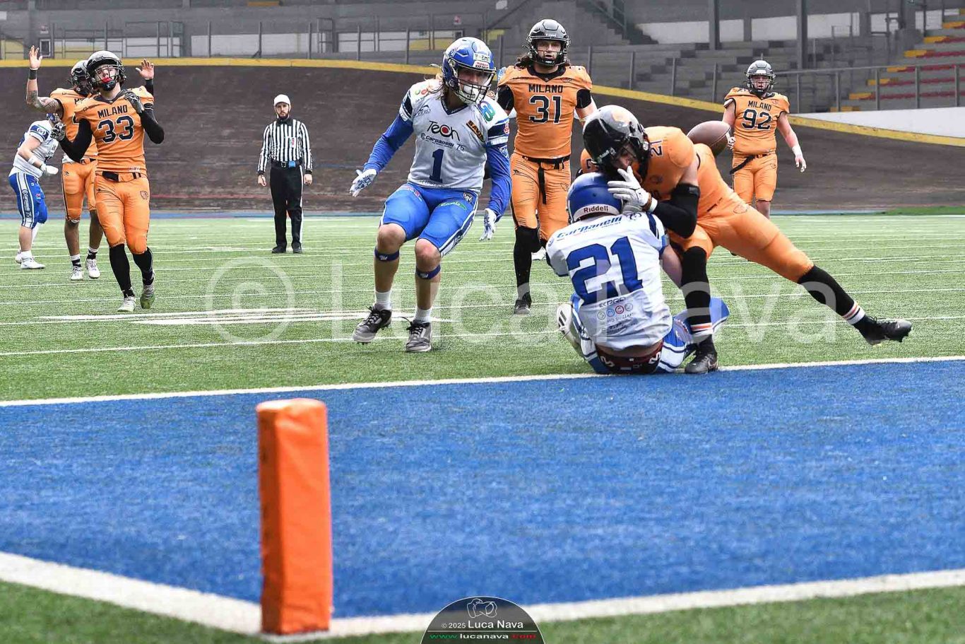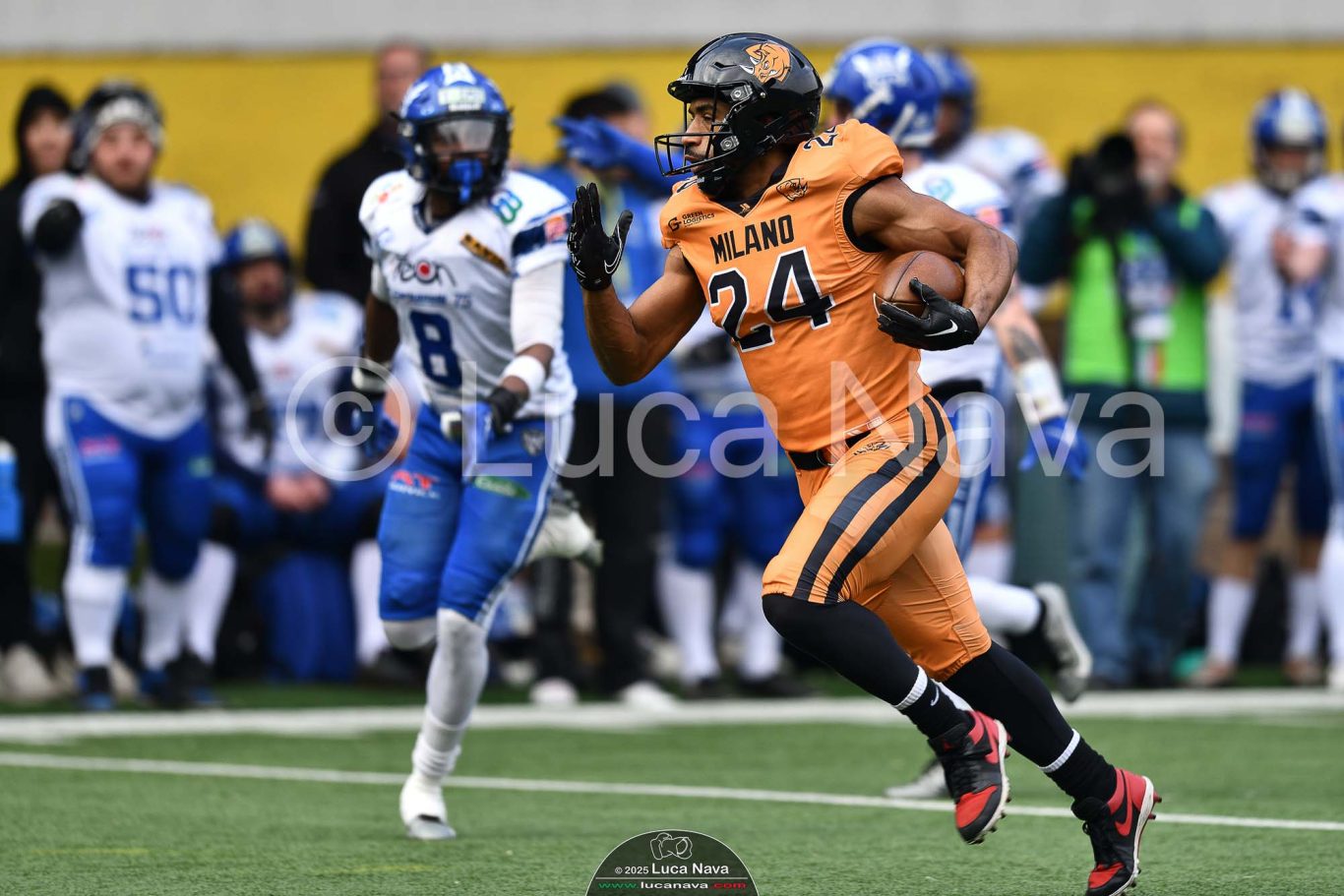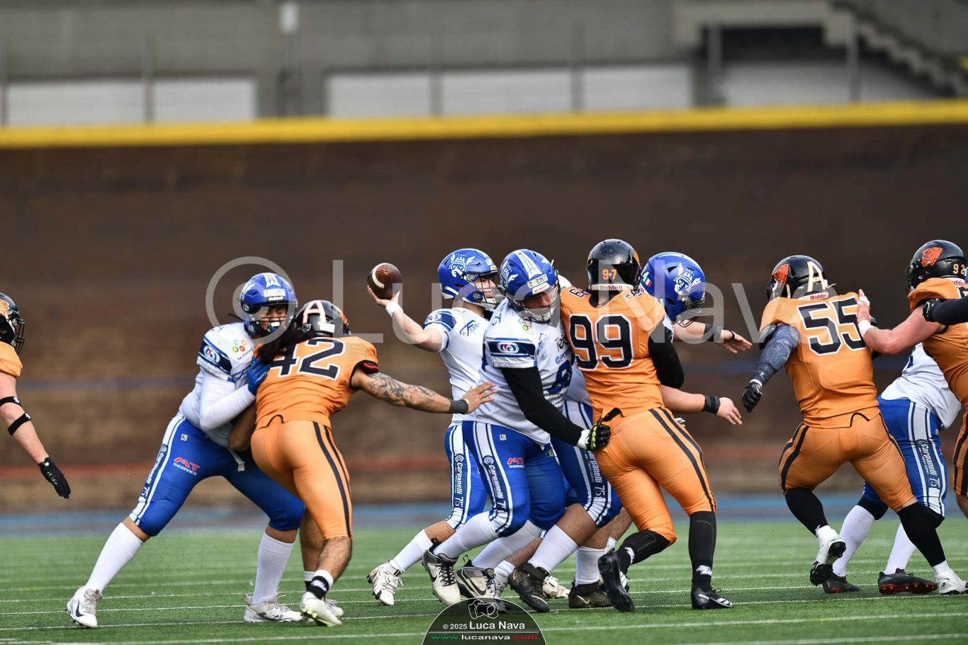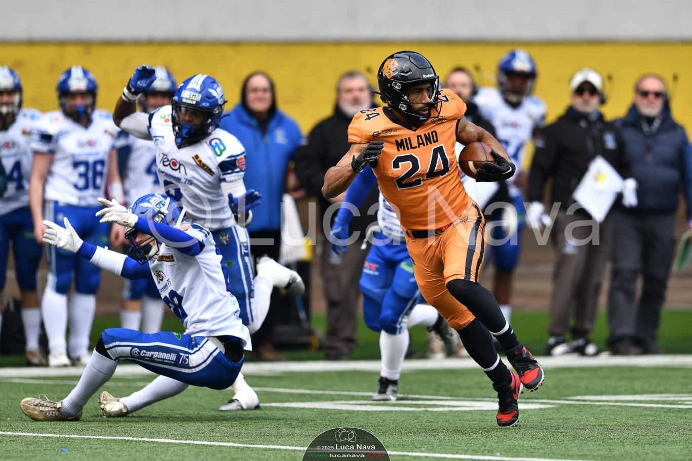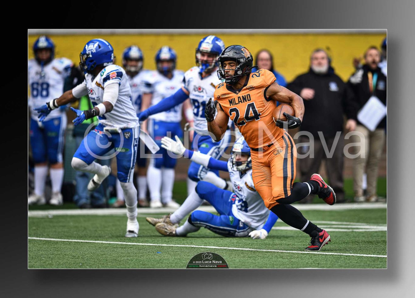 Le immagini raffigurate sono relative alla partita di Campionato Italiano di Football Americano FIDAF/IFL 1° Divisione 2025 "Rhinos Milano Vs. Warriors Bologna" - realizzate in data 16 febbraio 2025 c/o Velodromo Vigorelli - Via Arona, 19 - 20149 Milano (MI) Italy.