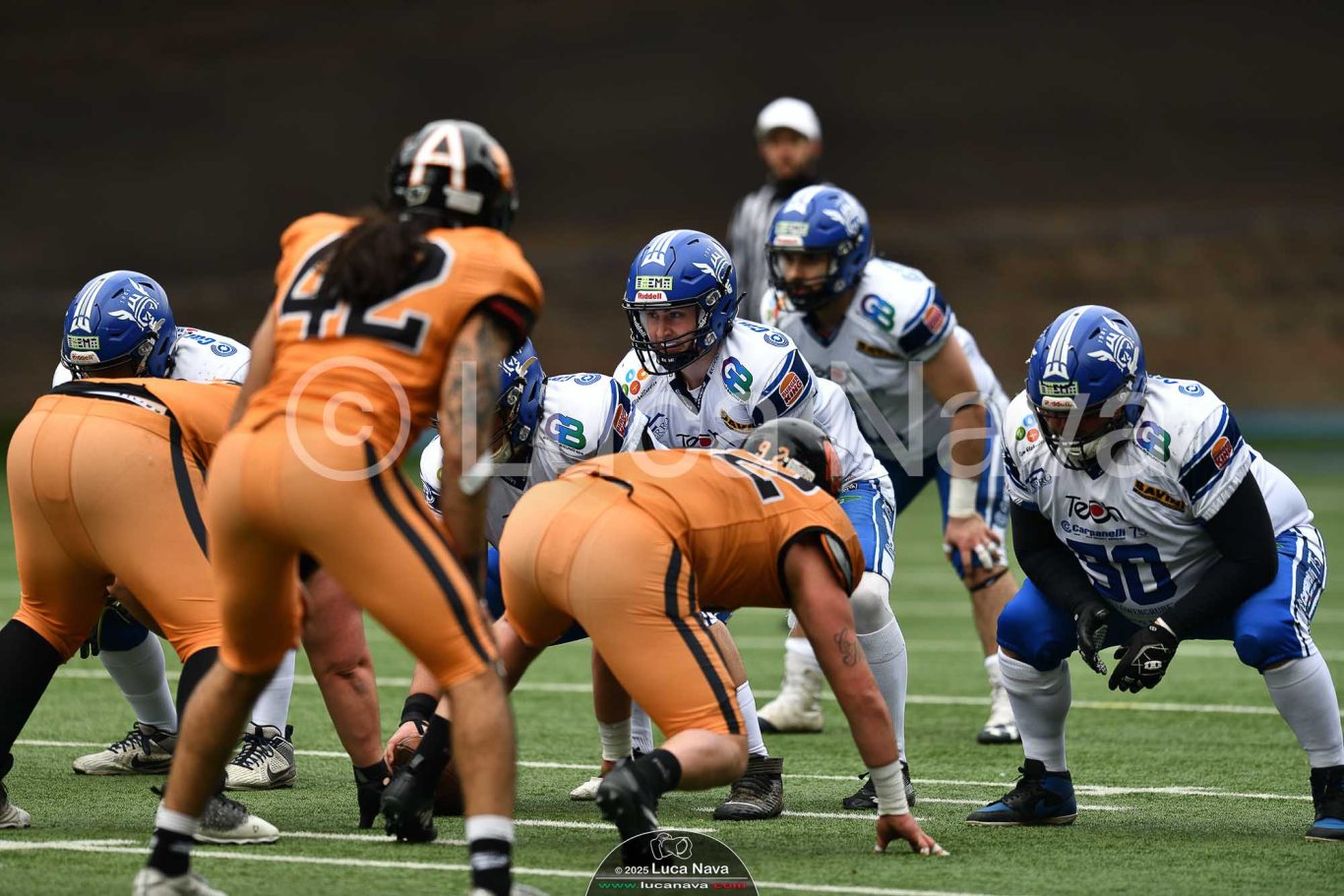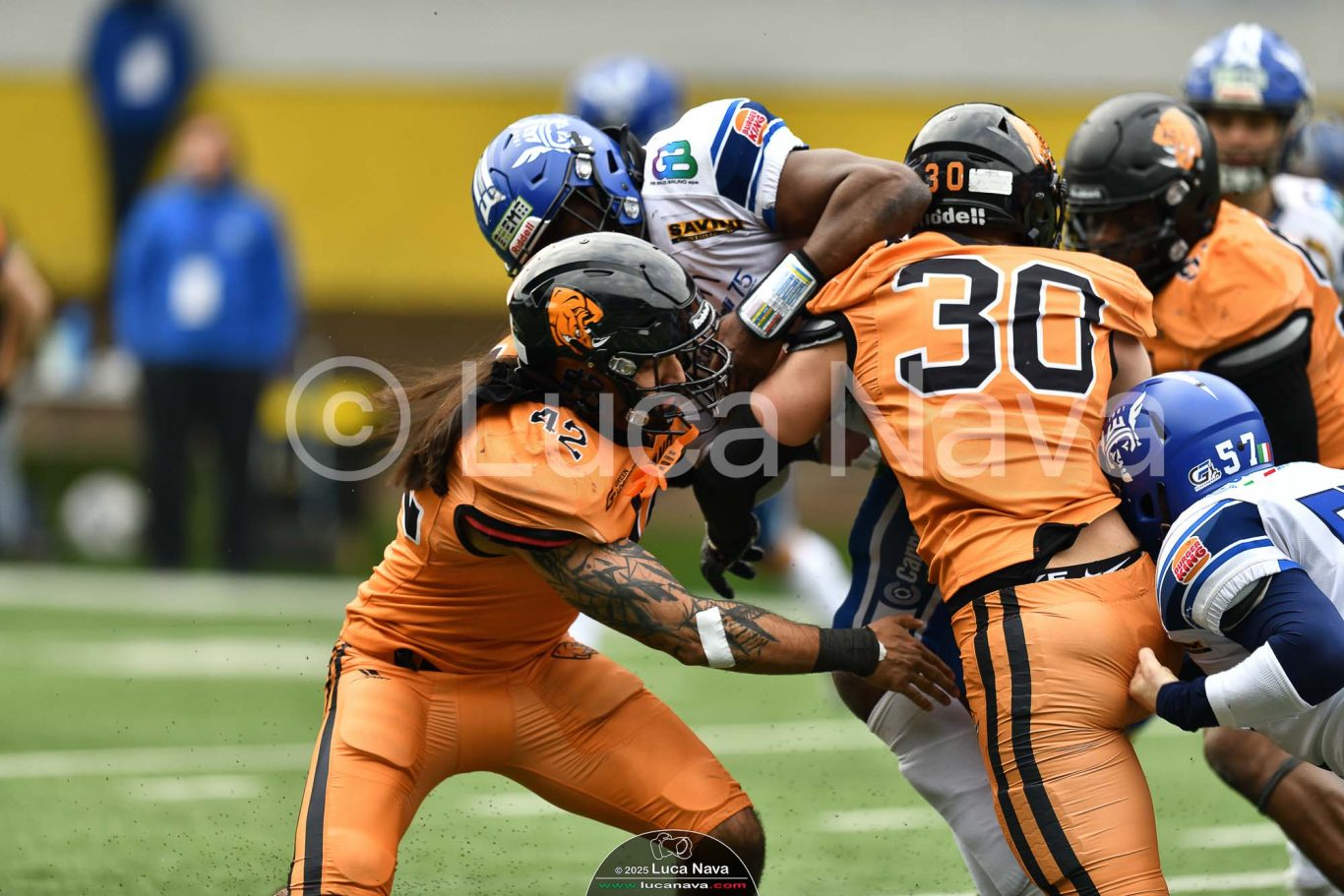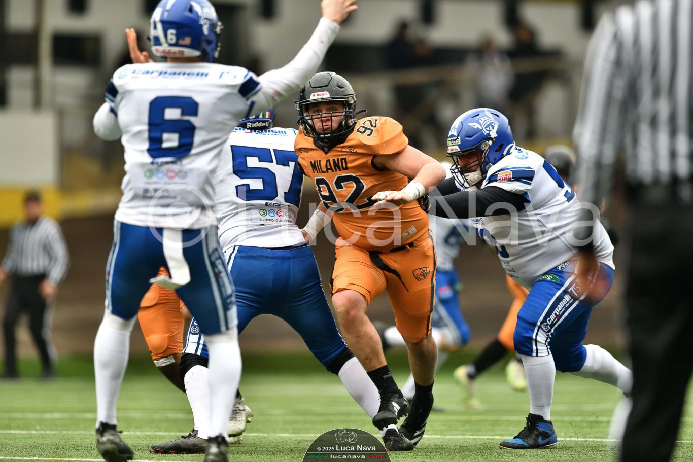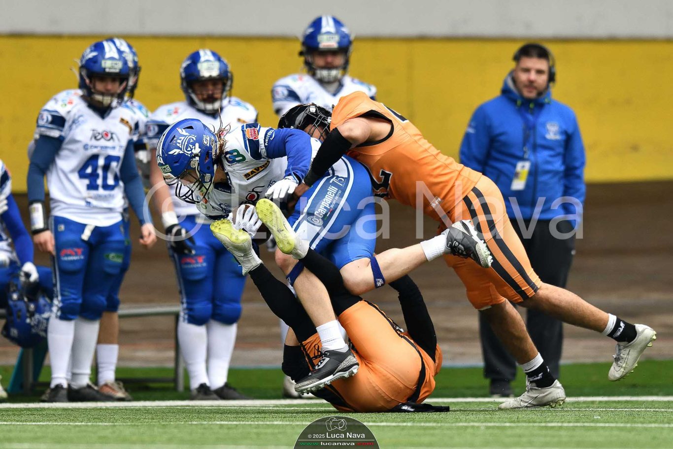 Le immagini raffigurate sono relative alla partita di Campionato Italiano di Football Americano FIDAF/IFL 1° Divisione 2025 "Rhinos Milano Vs. Warriors Bologna" - realizzate in data 16 febbraio 2025 c/o Velodromo Vigorelli - Via Arona, 19 - 20149 Milano (MI) Italy.