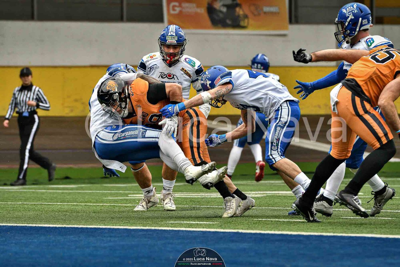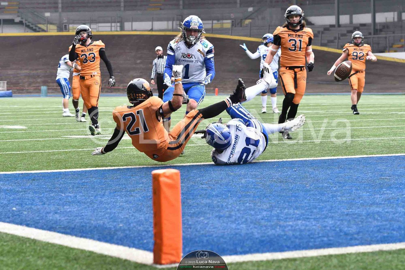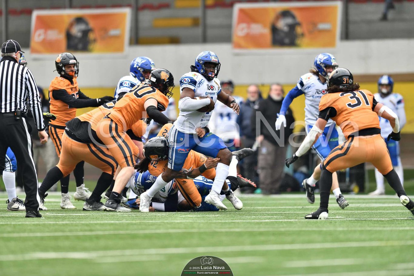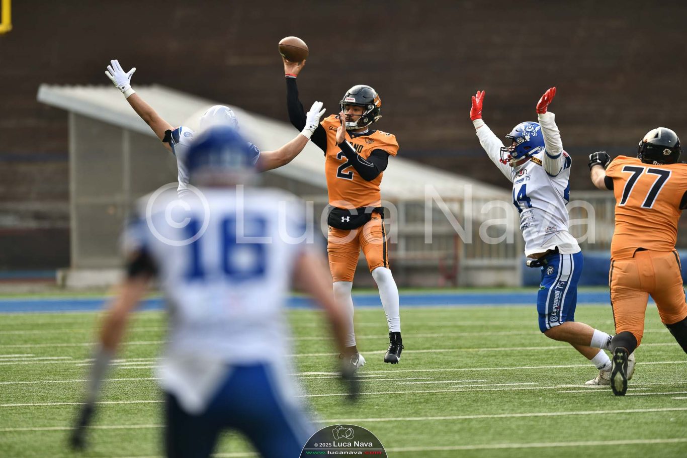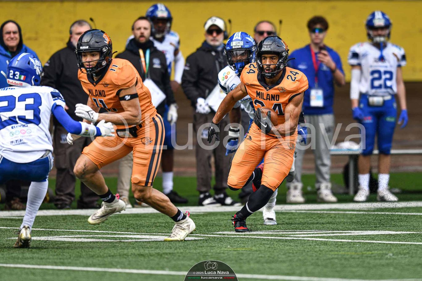 Le immagini raffigurate sono relative alla partita di Campionato Italiano di Football Americano FIDAF/IFL 1° Divisione 2025 "Rhinos Milano Vs. Warriors Bologna" - realizzate in data 16 febbraio 2025 c/o Velodromo Vigorelli - Via Arona, 19 - 20149 Milano (MI) Italy.