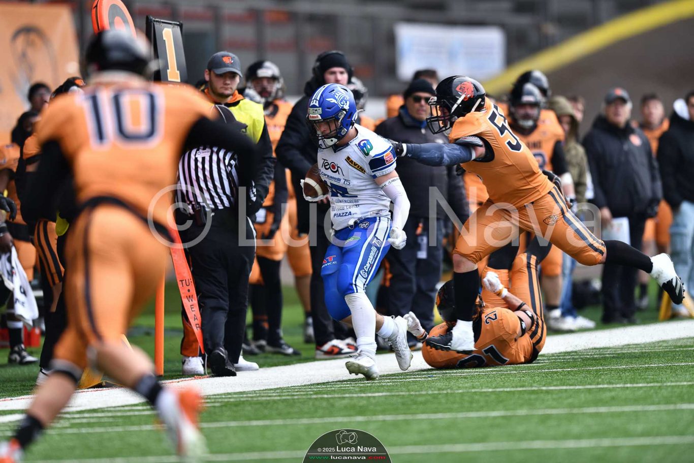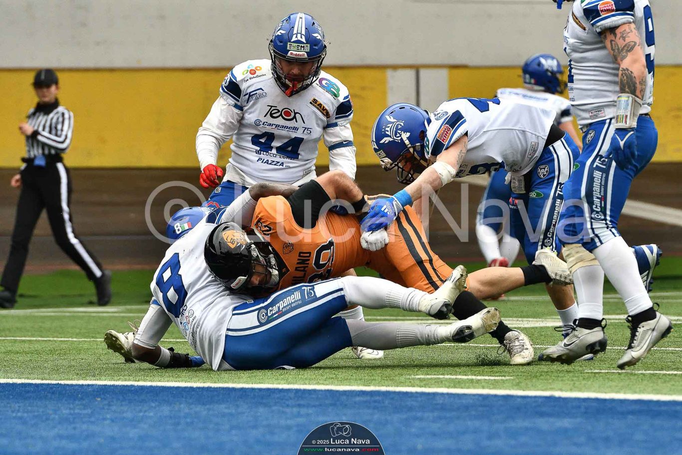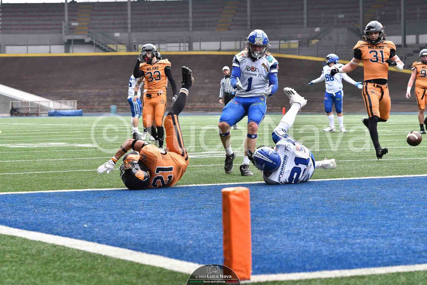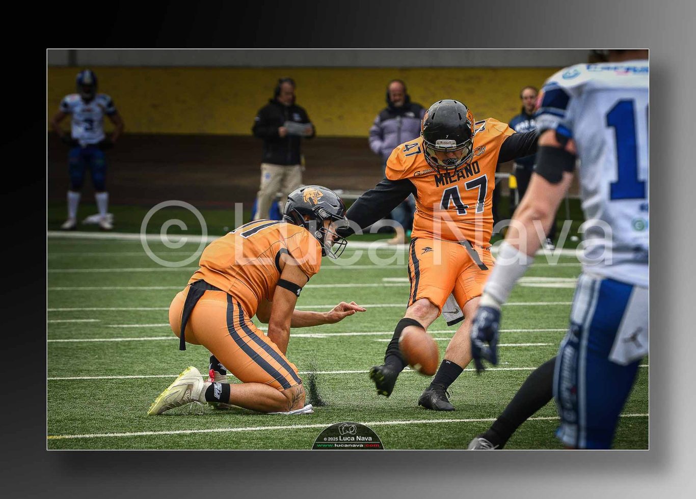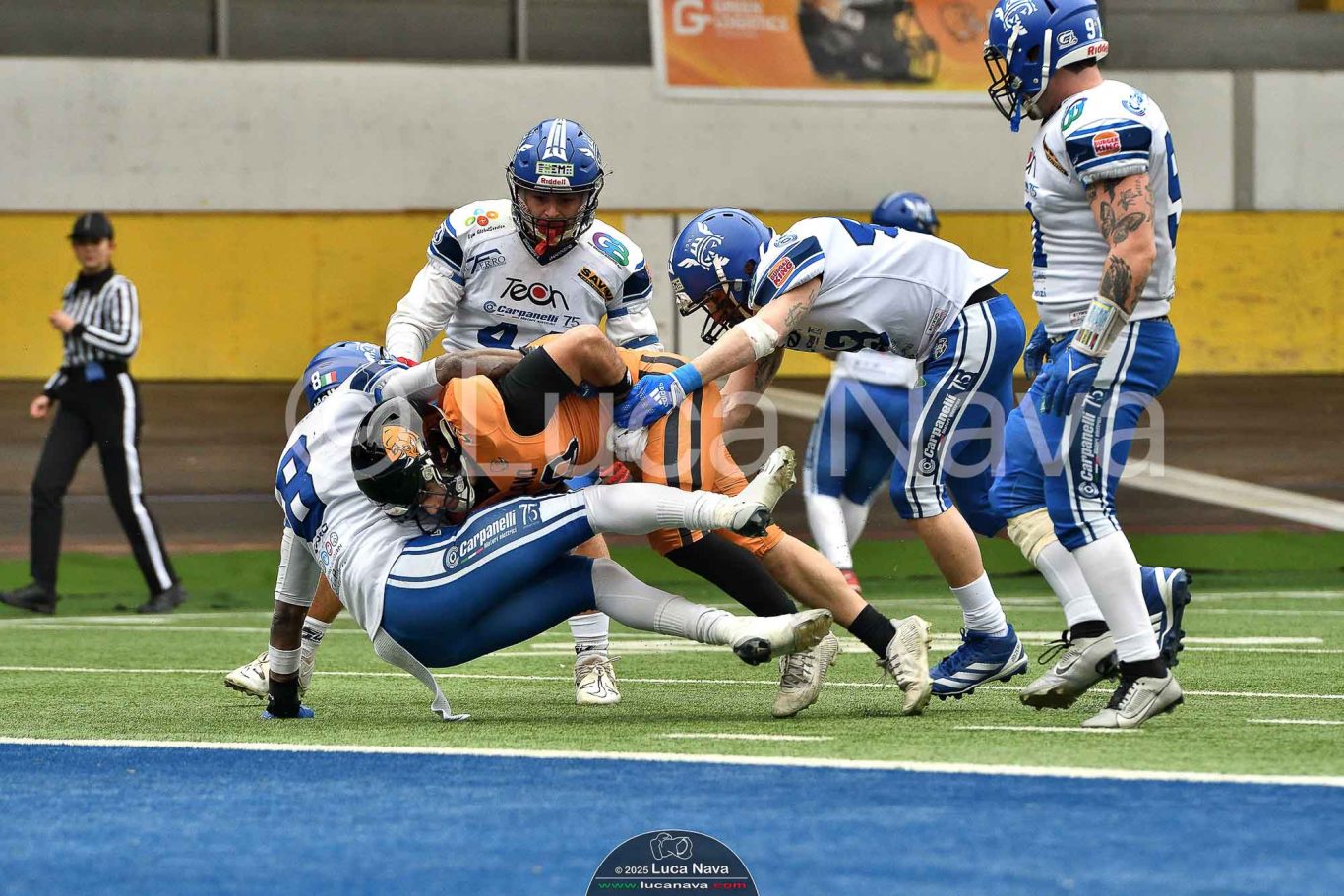 Le immagini raffigurate sono relative alla partita di Campionato Italiano di Football Americano FIDAF/IFL 1° Divisione 2025 "Rhinos Milano Vs. Warriors Bologna" - realizzate in data 16 febbraio 2025 c/o Velodromo Vigorelli - Via Arona, 19 - 20149 Milano (MI) Italy.