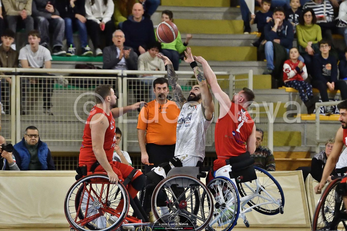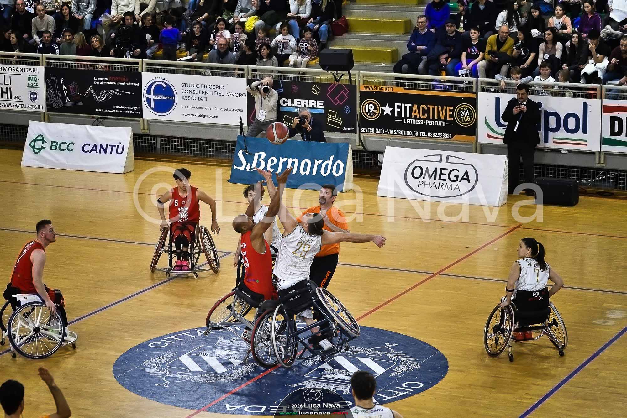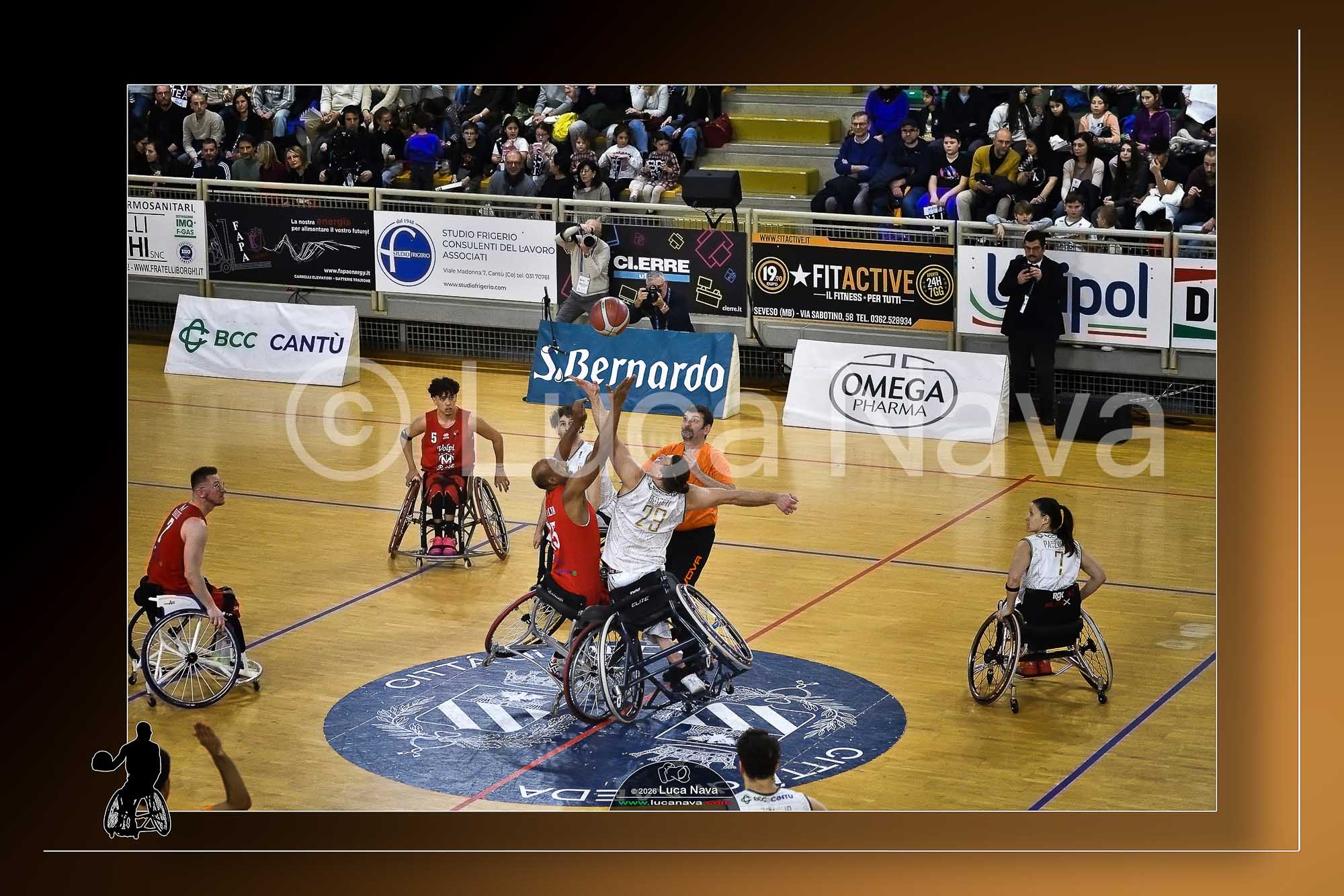 Le immagini raffigurate sono relative alla Partita di Basket in Carrozzina Serie A 2025/2026 FIPIC "Unipol Briantea84 Cantù Vs. Menarini Volpi Rosse Firenze" del 24 gennaio 2026, c/o Pala Meda - Via Udine 1/A - 20821 Meda (MB) Italy.