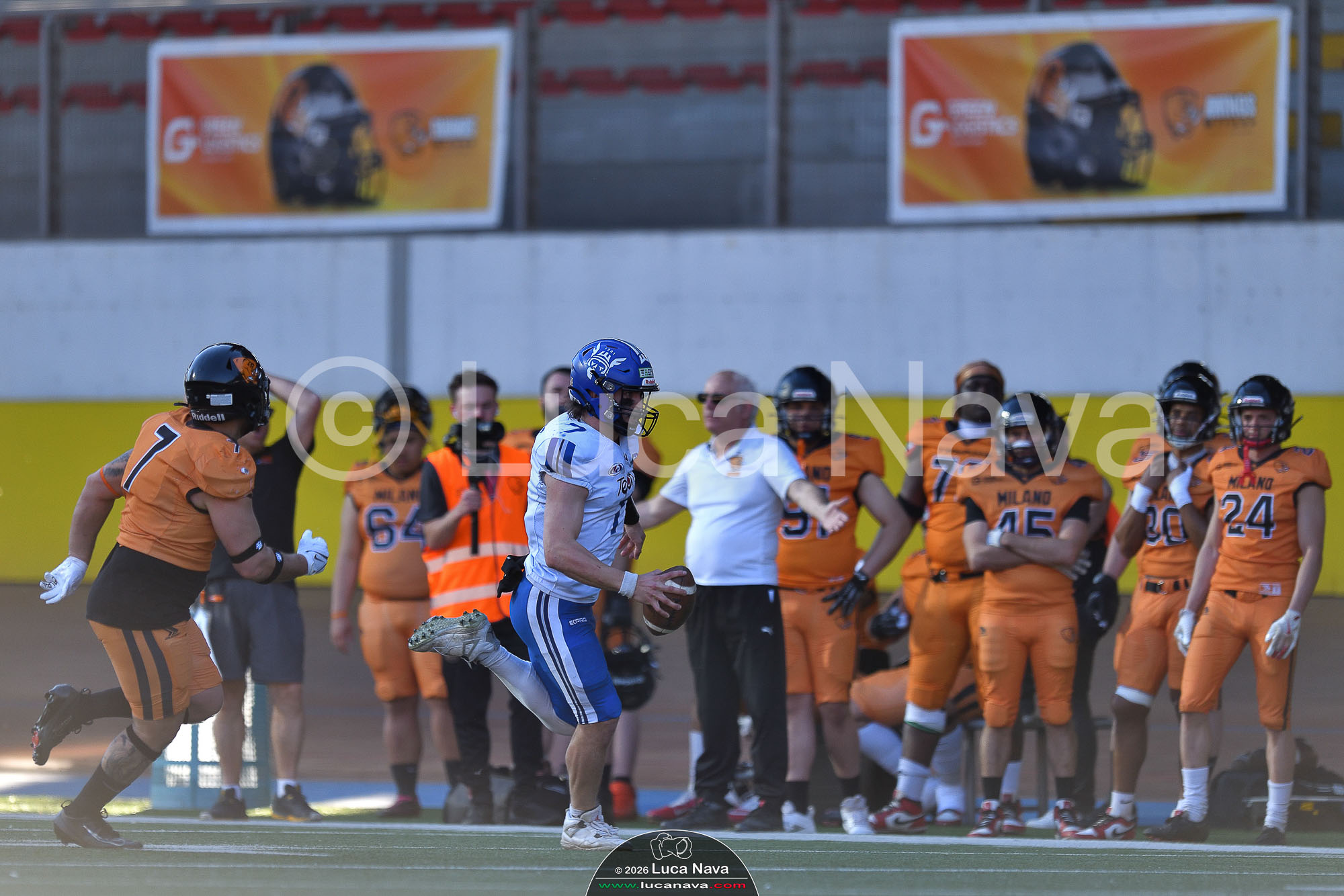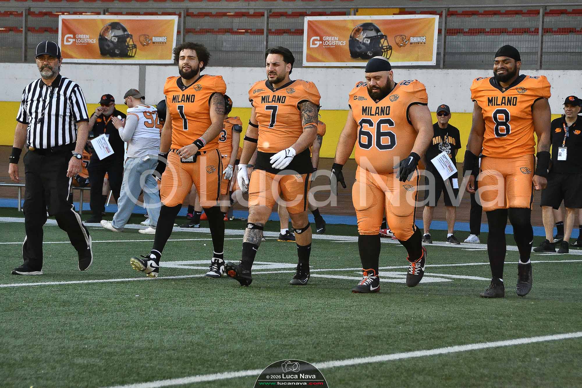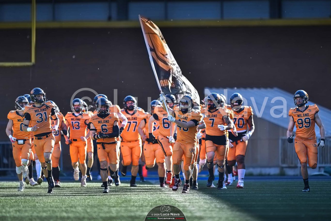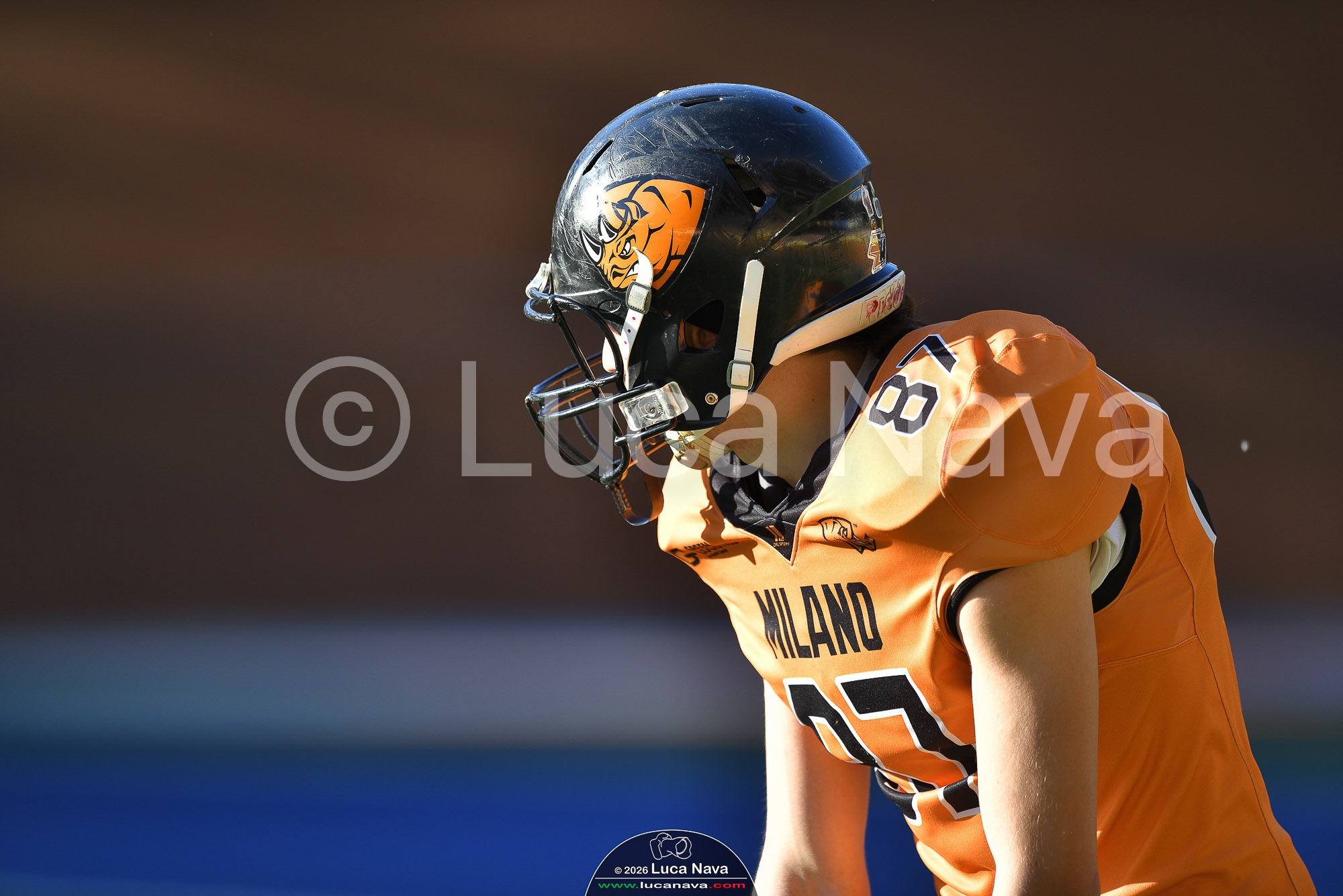 Le immagini raffigurate sono relative alla partita di Campionato Italiano di Football Americano FIDAF/IFL 1° Divisione 2026 "Rhinos Milano Vs. Warriors Bologna" - realizzate in data 25 aprile 2026 c/o Velodromo Vigorelli - Via Arona, 19 - 20149 Milano (MI) Italy.