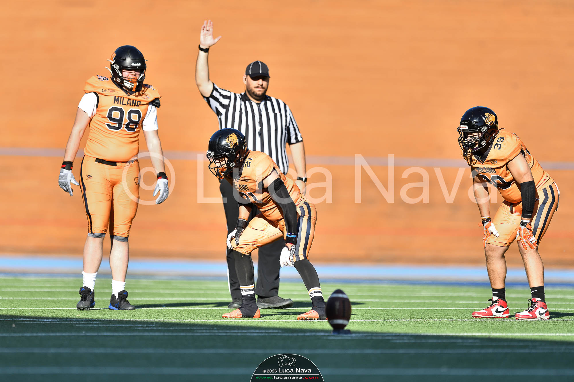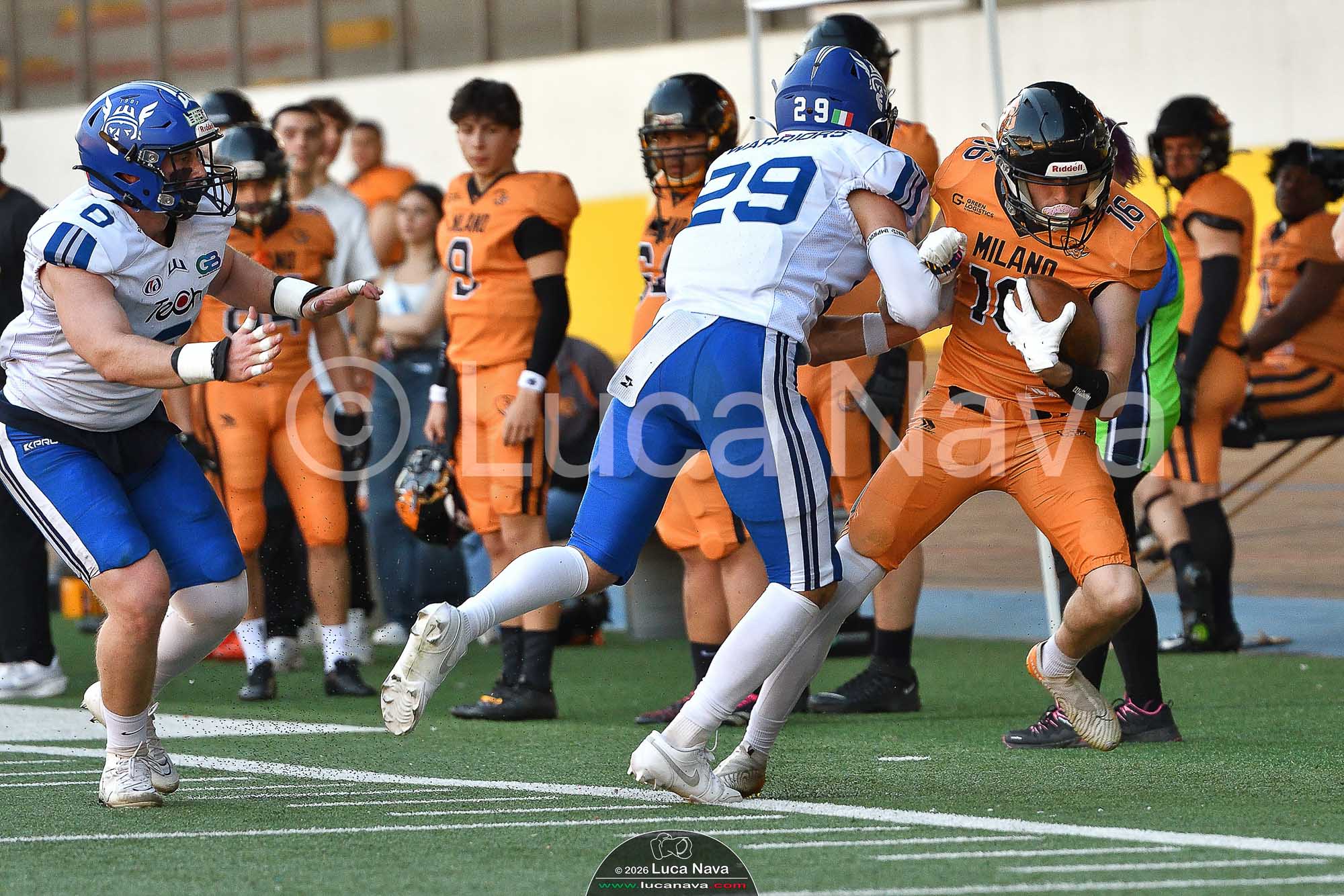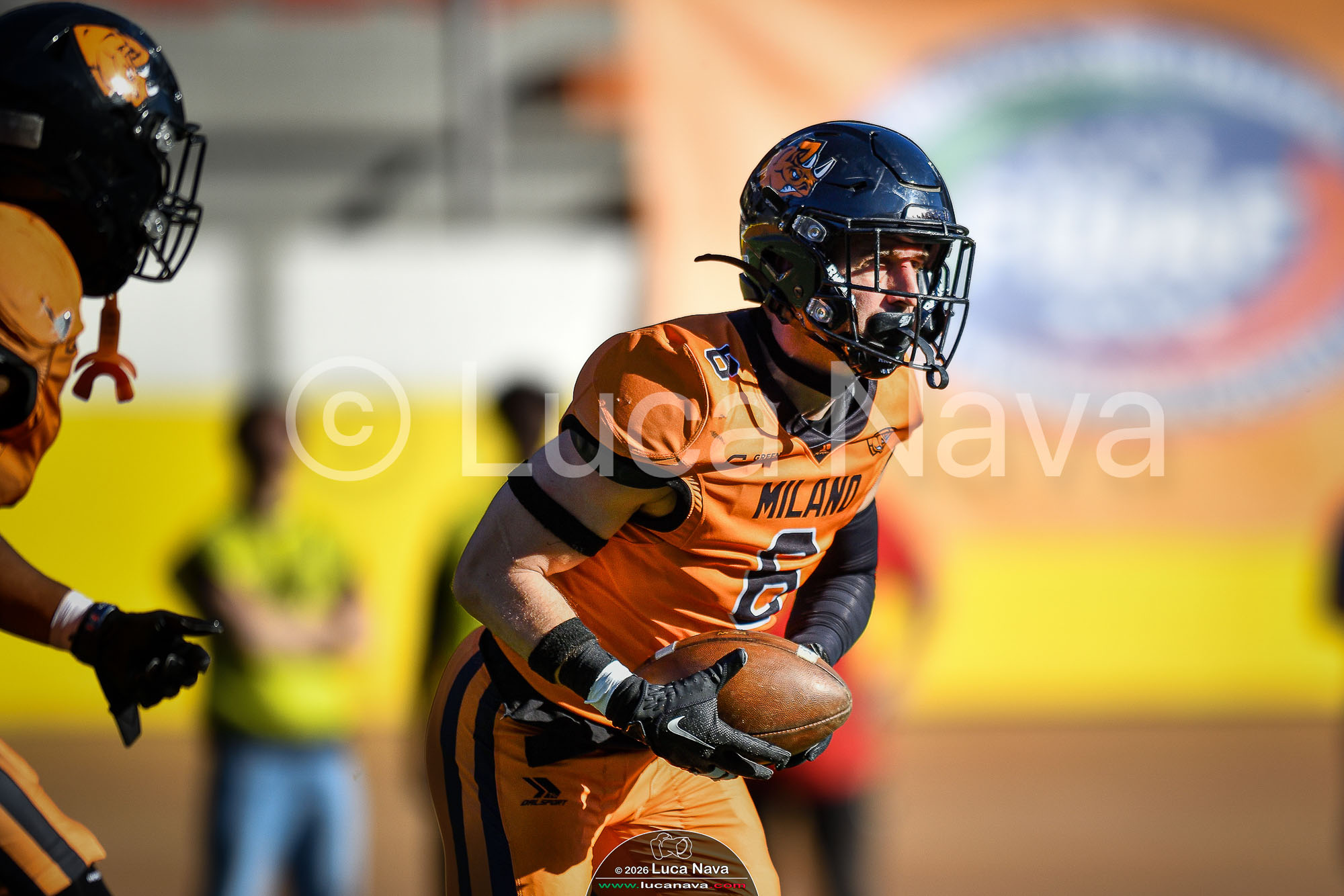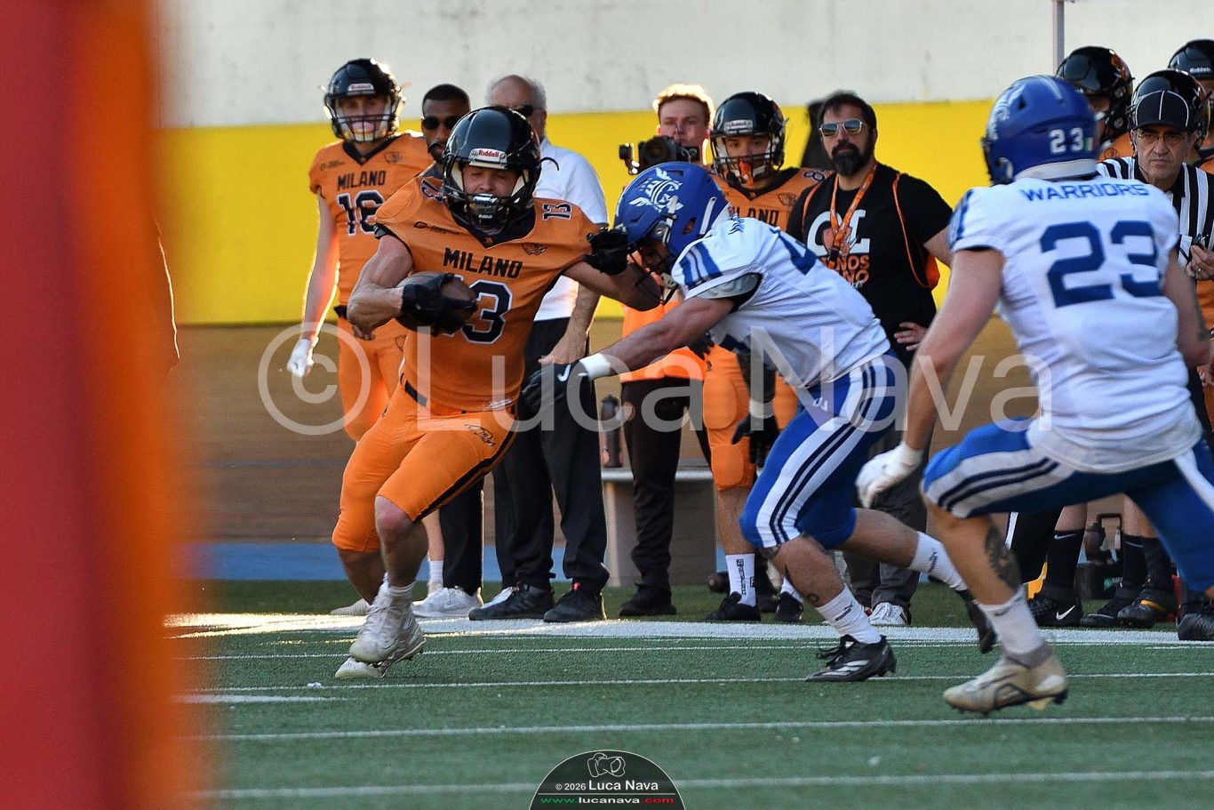Le immagini raffigurate sono relative alla partita di Campionato Italiano di Football Americano FIDAF/IFL 1° Divisione 2026 "Rhinos Milano Vs. Warriors Bologna" - realizzate in data 25 aprile 2026 c/o Velodromo Vigorelli - Via Arona, 19 - 20149 Milano (MI) Italy.