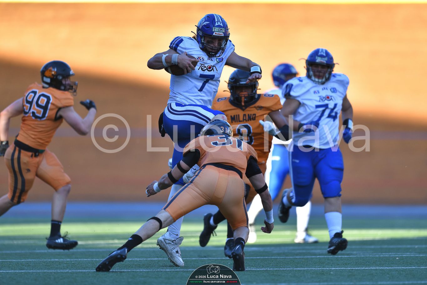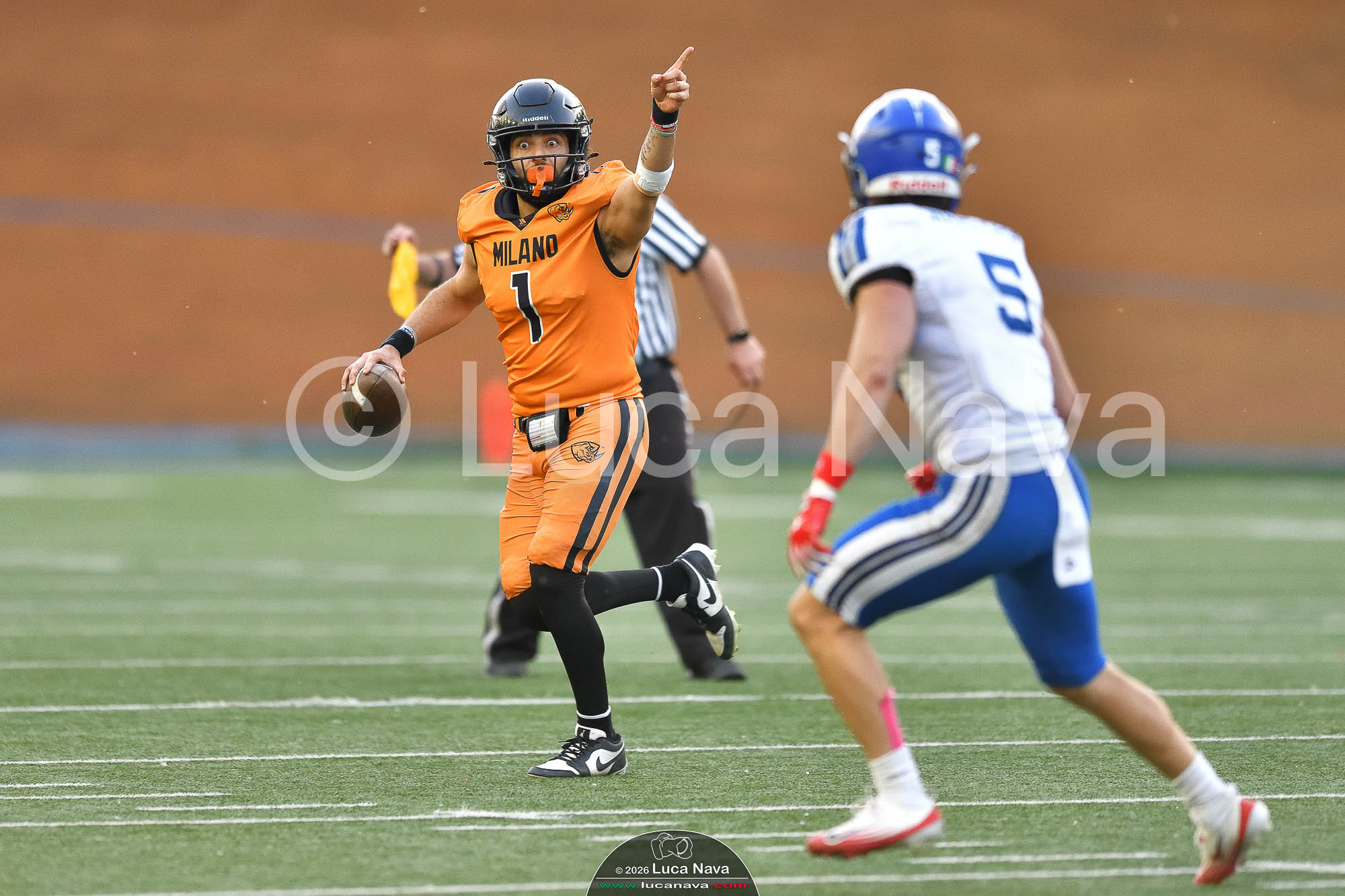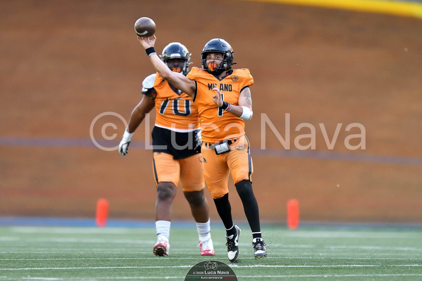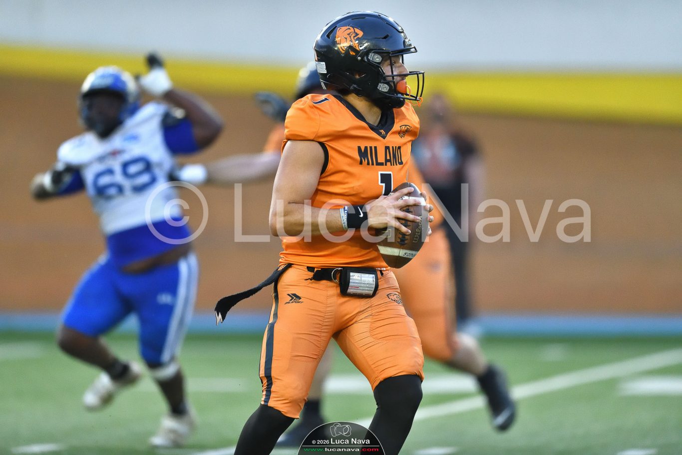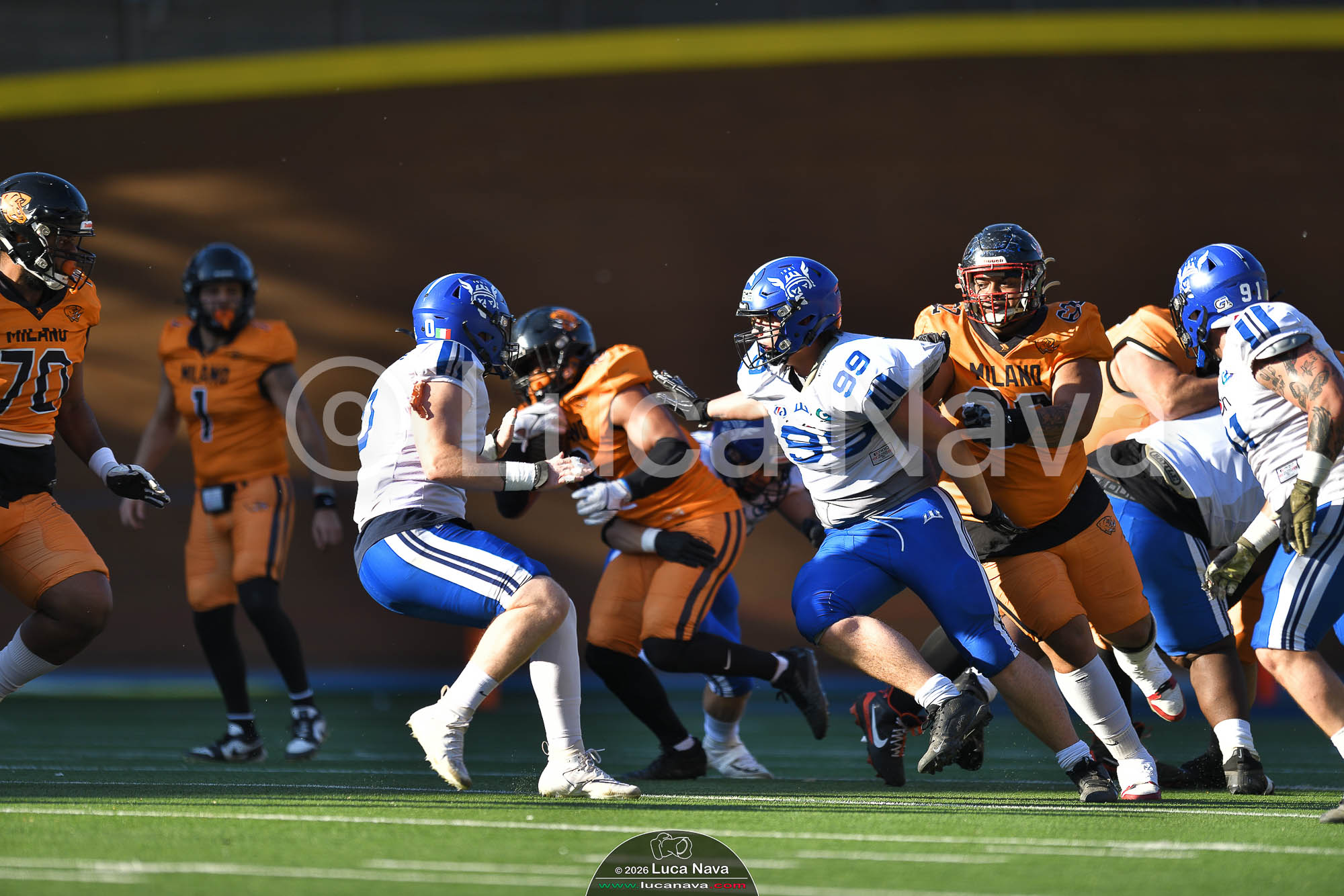 Le immagini raffigurate sono relative alla partita di Campionato Italiano di Football Americano FIDAF/IFL 1° Divisione 2026 "Rhinos Milano Vs. Warriors Bologna" - realizzate in data 25 aprile 2026 c/o Velodromo Vigorelli - Via Arona, 19 - 20149 Milano (MI) Italy.