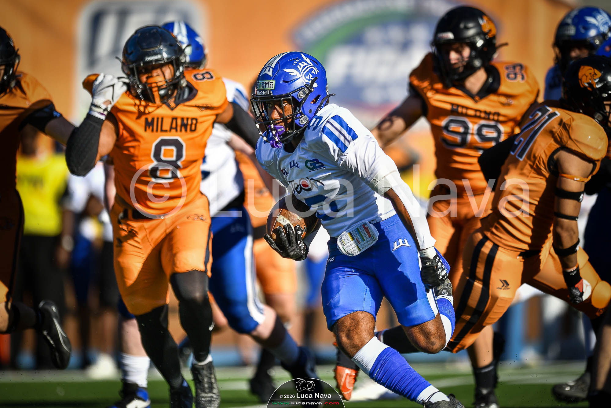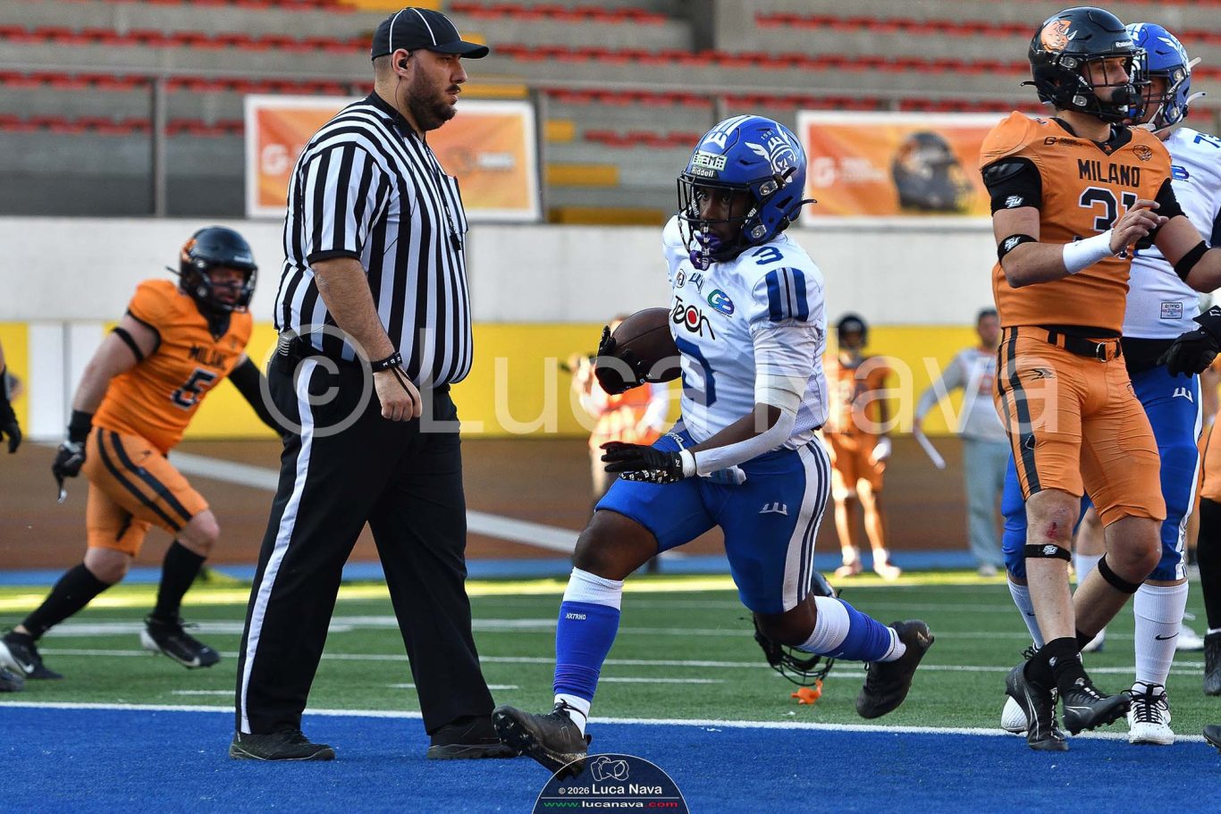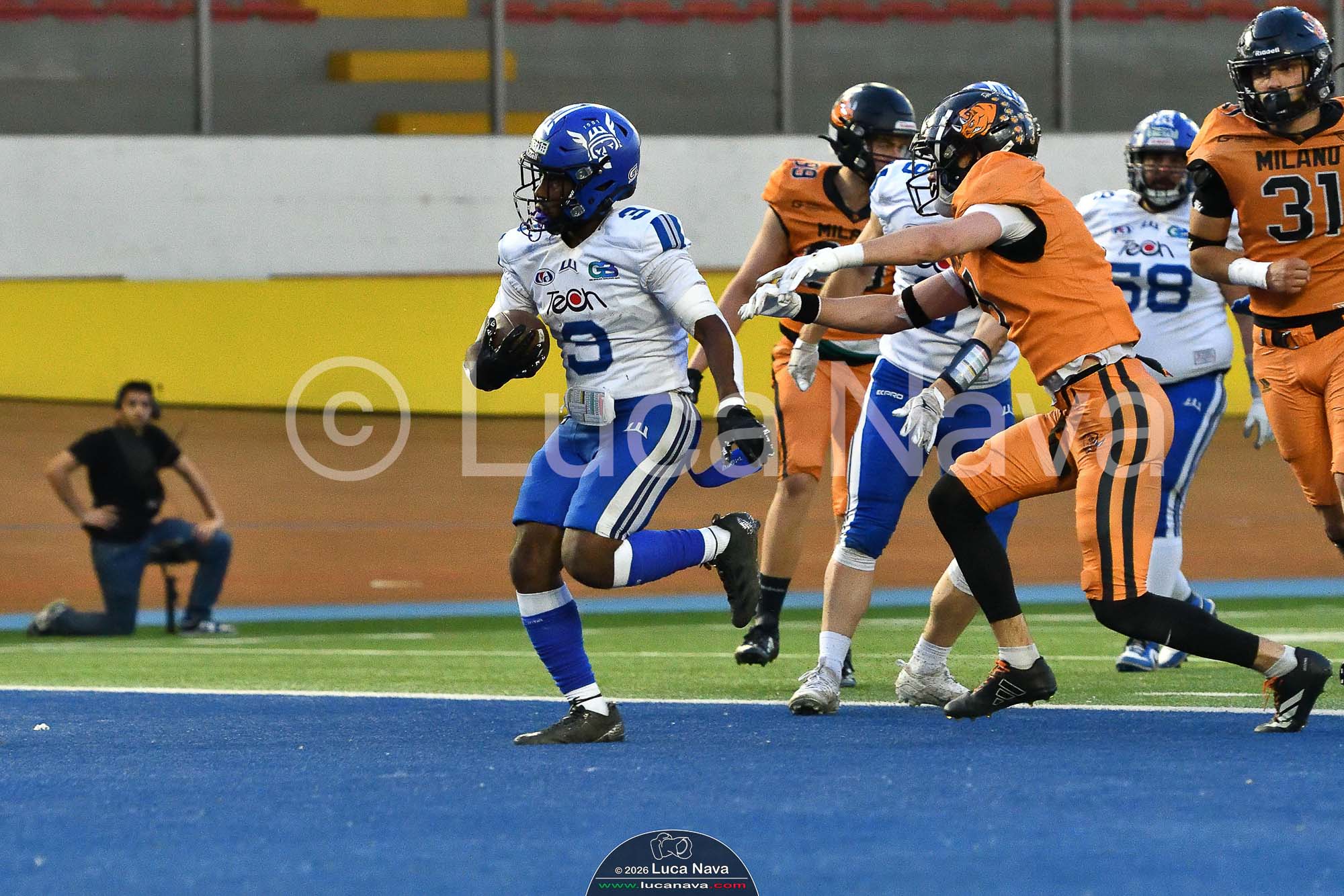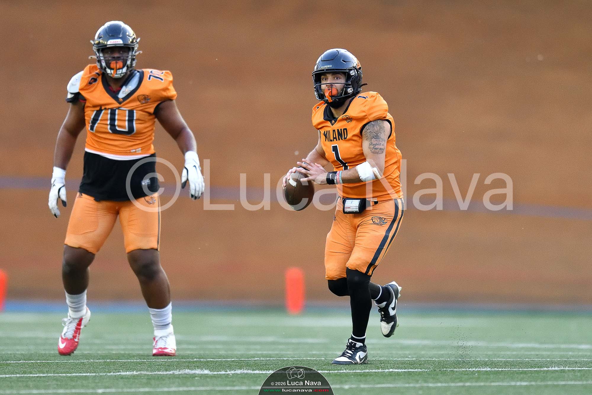 Le immagini raffigurate sono relative alla partita di Campionato Italiano di Football Americano FIDAF/IFL 1° Divisione 2026 "Rhinos Milano Vs. Warriors Bologna" - realizzate in data 25 aprile 2026 c/o Velodromo Vigorelli - Via Arona, 19 - 20149 Milano (MI) Italy.