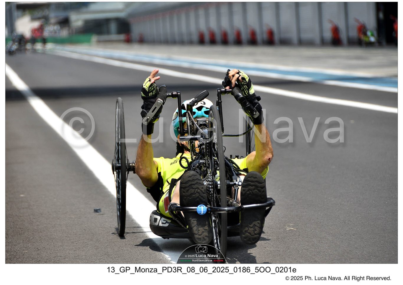 Le immagini raffigurate sono relative alla gara di Handbike "13° Handcycling GP Monza by PD3R" valevole per la "Coppa Italia" di Ciclismo Paralimpico, realizzate in data 08 maggio 2025 c/o Autodromo Nazionale Monza (MB) Italy.
